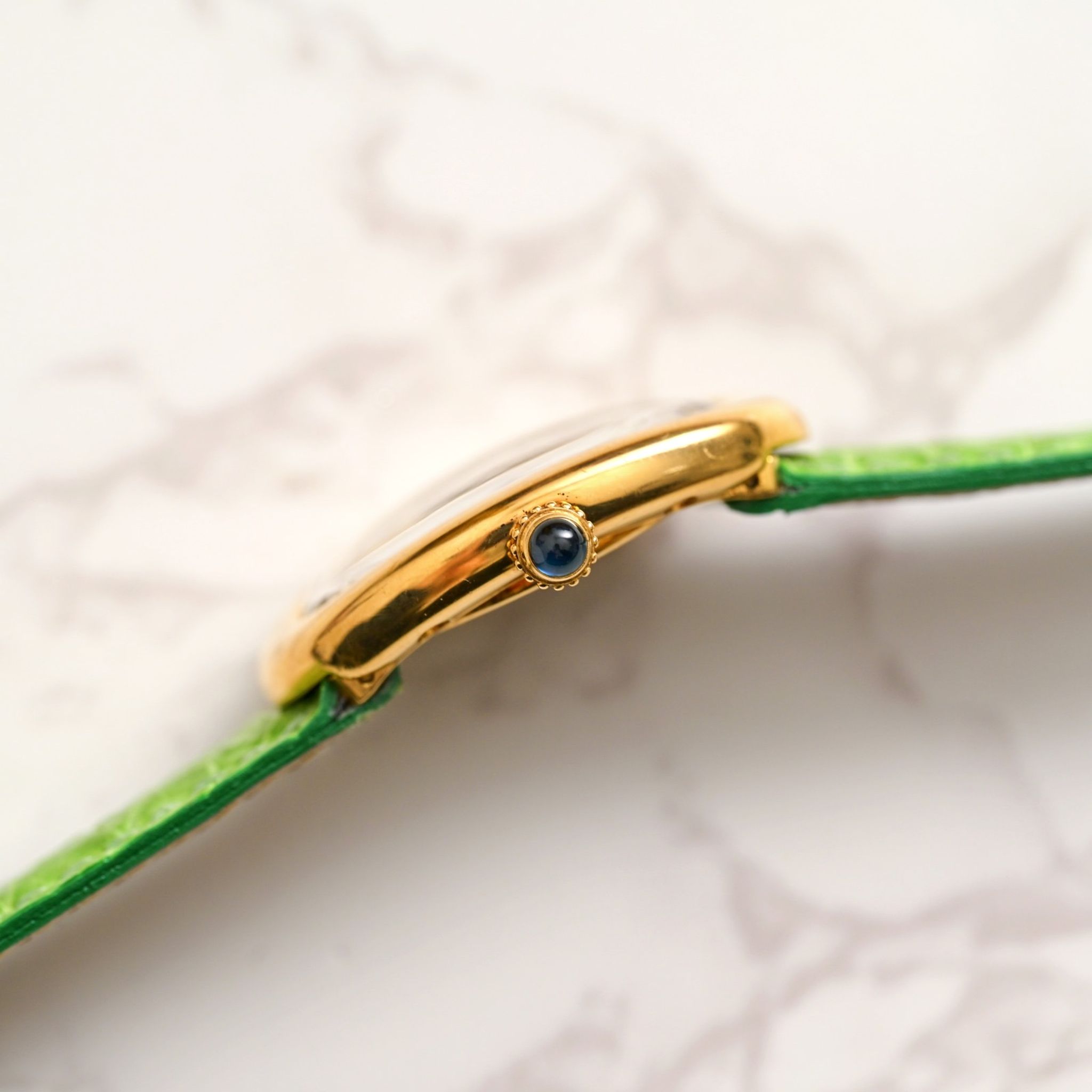 Case: Show sign of wear with the 18K Yellow Gold Case in size 30 x 23mm without crown; Cartier serial numbers engraved on the case back