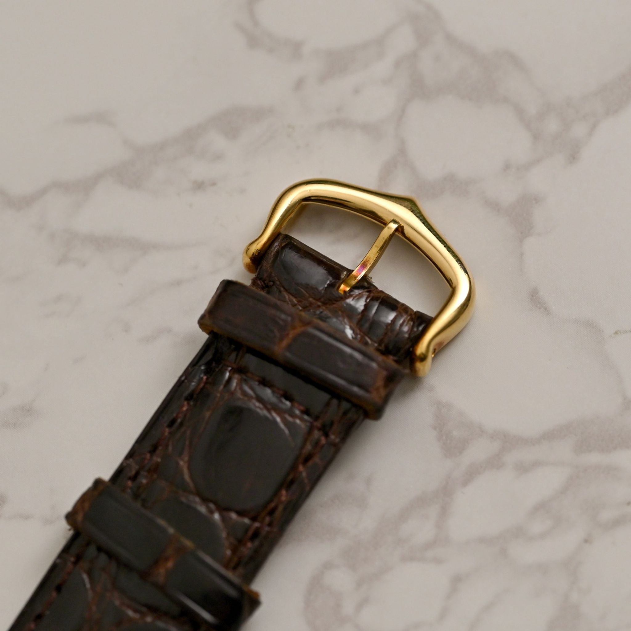 Bracelet: Original Cartier Leather Strap with Yellow Gold pin Buckle