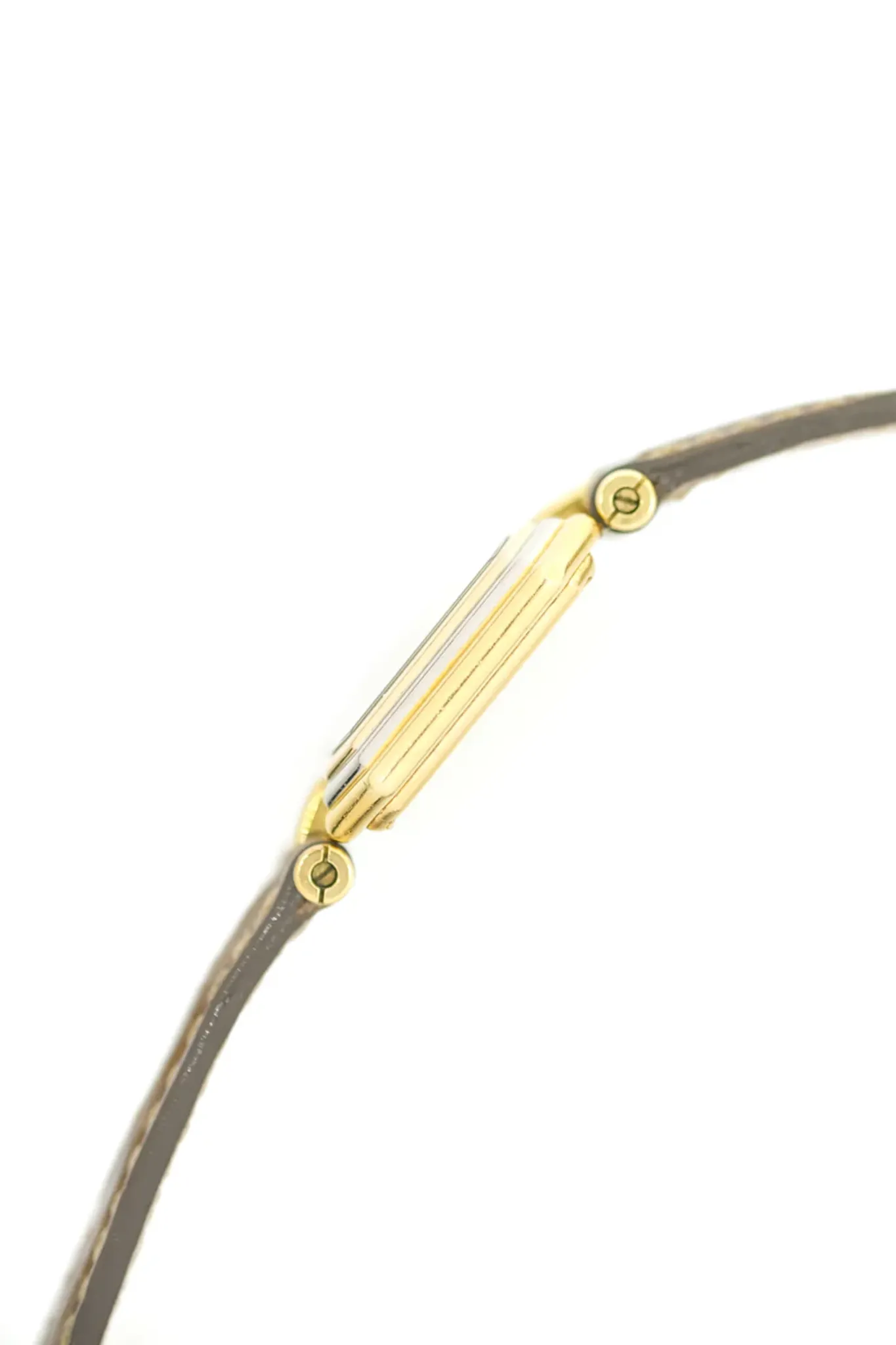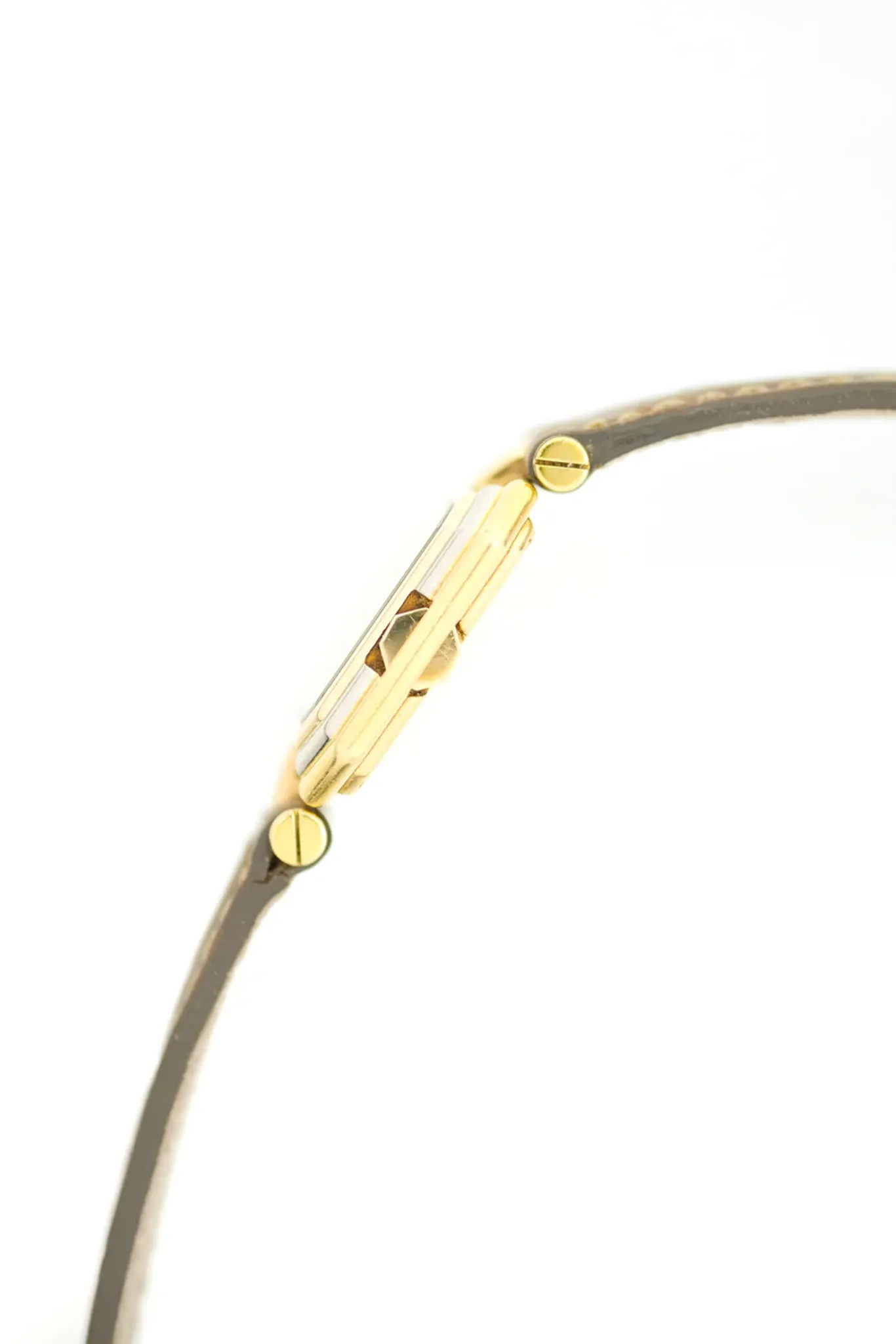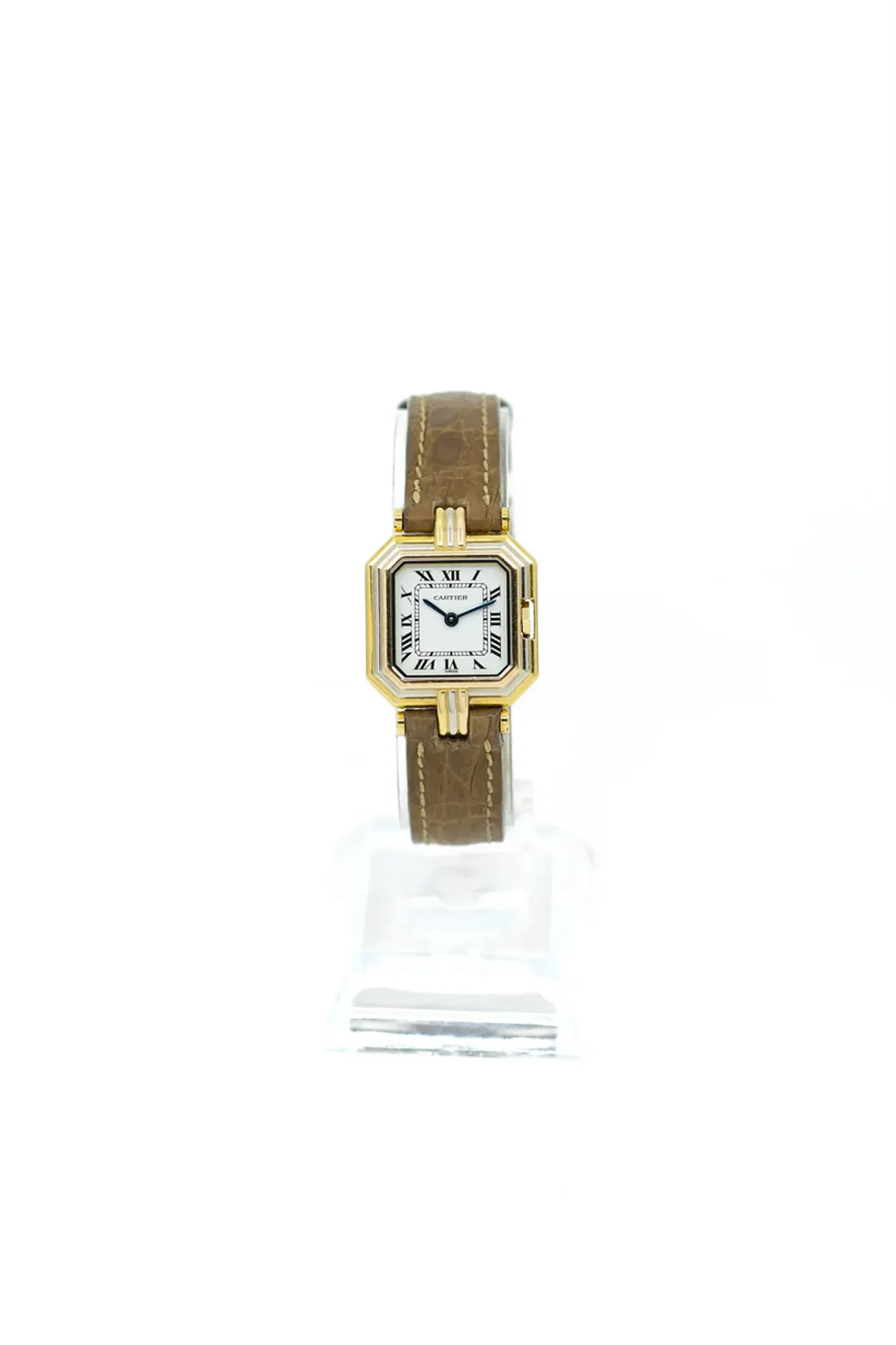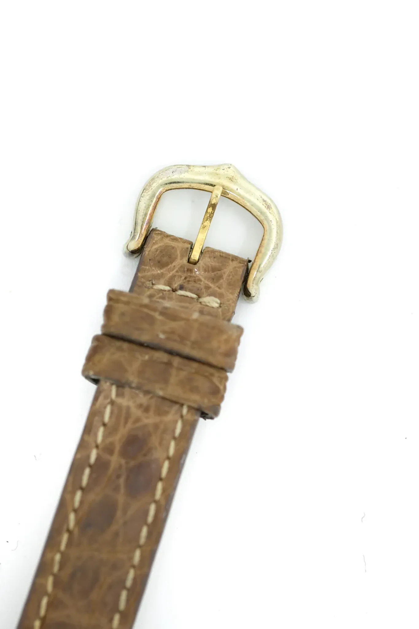 18K yellow, pink and white gold case. Cartier brown alligator leather strap. Cartier gold-plated pin buckle (worn on the reverse).