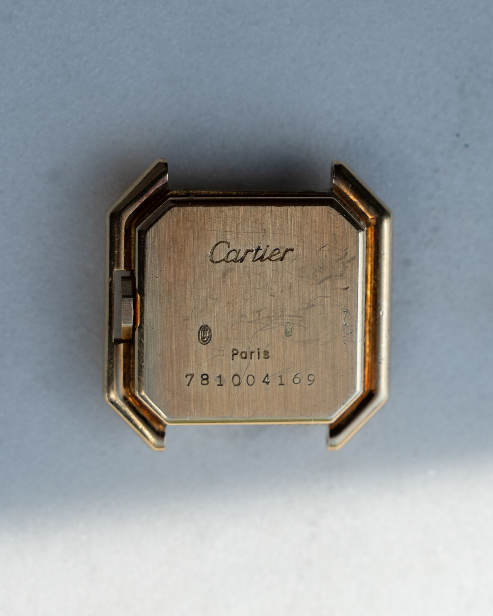 This Cartier Ceinture SM size in yellow gold is in overall excellent vintage condition. The octagonal case is strong and its unique double stepped bezel is sharp. The case has just very light scratches throughout but has most likely never been polished before. For a Cartier from this era, the case is in excellent condition. The dial is the original Paris signed white lacquered dial which is very rare given most dials get replaced by Cartier during servicing to a "Swiss made" dial. As with the vast majority of Cartier white lacquered dials produced in the 70's, the dial has formed some minor cracks that can be observed under a loupe. The original black painted numerals is in beautiful condition. The caliber 78-1 movement service history is unknown but it has been checked by our watchmaker and is running well. It is currently running at +14.6 seconds per day. Included is the original Cartier deployant clasp in solid 18k yellow gold, complete with crisp hallmarks and its own serial number—which is collectible and valuable in itself. The watch is paired with a generic black Epsom calf leather strap and also comes with a Cartier box.