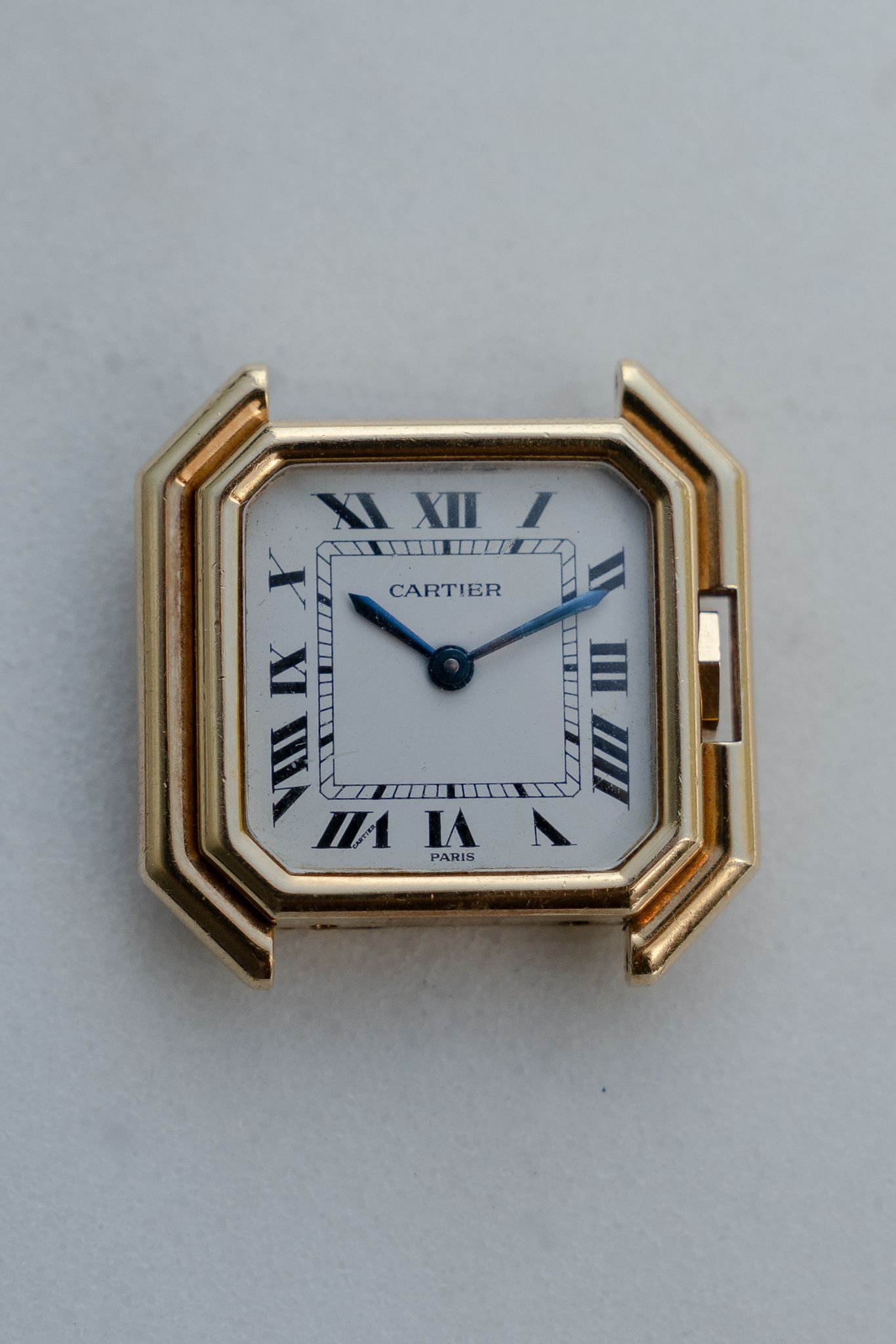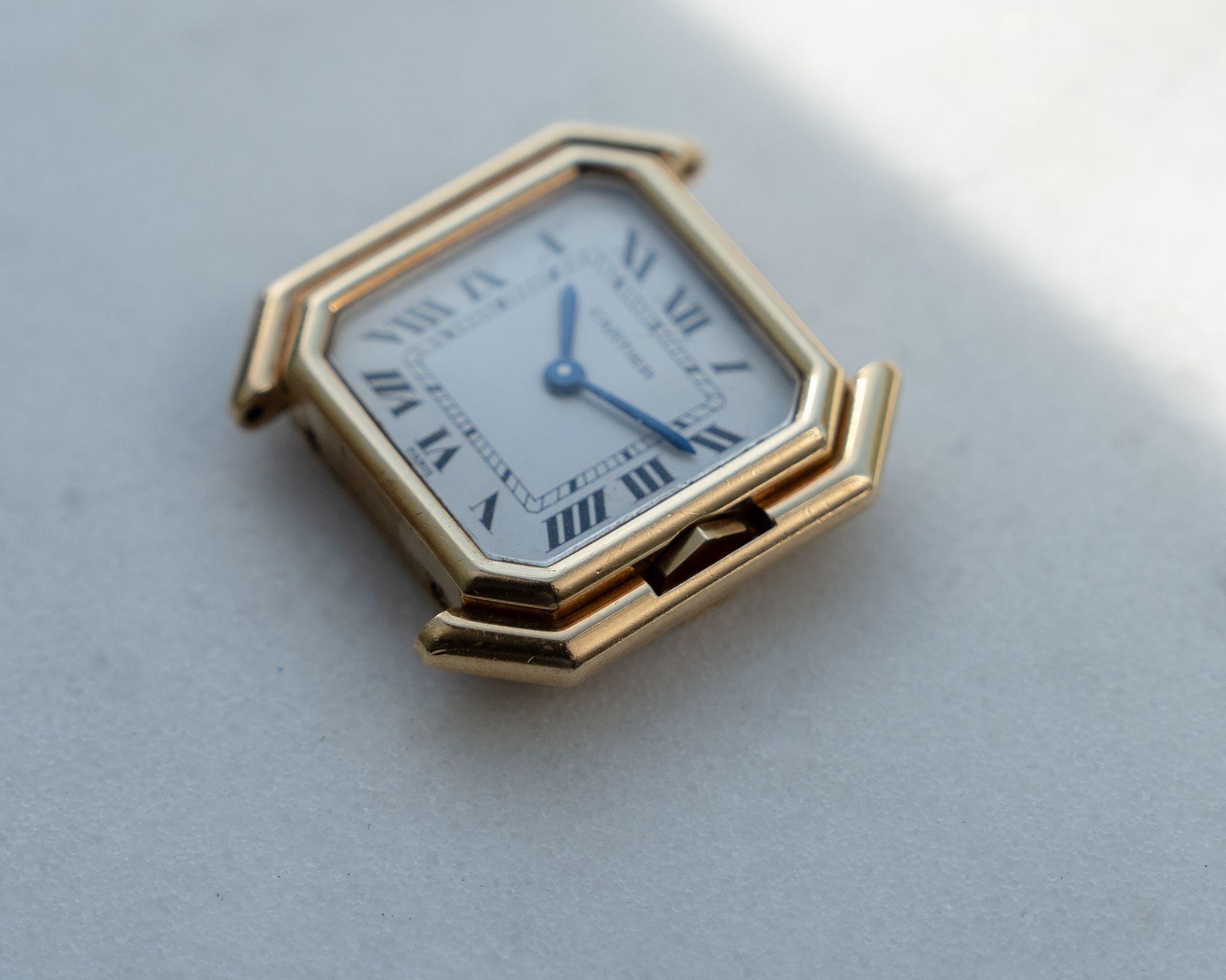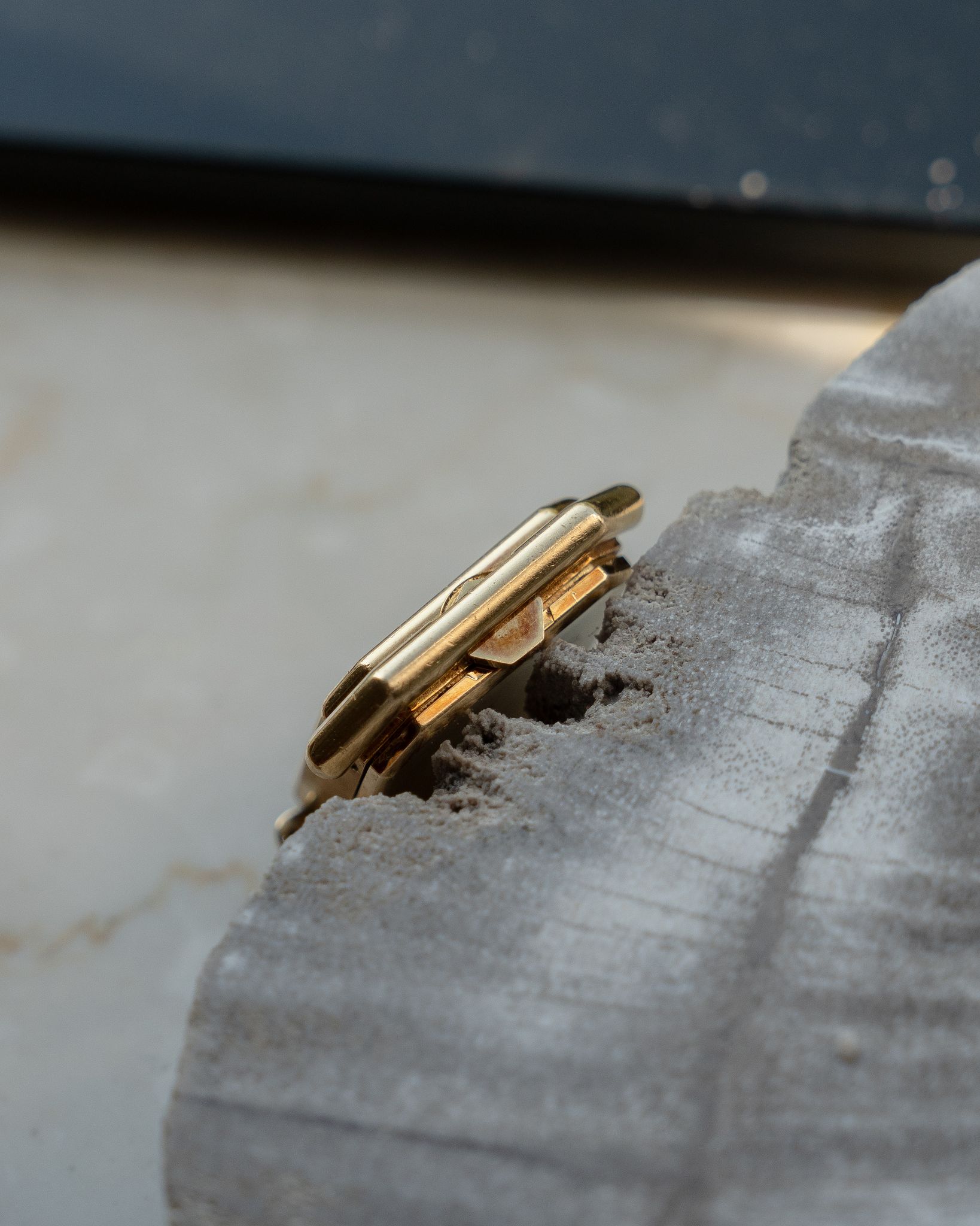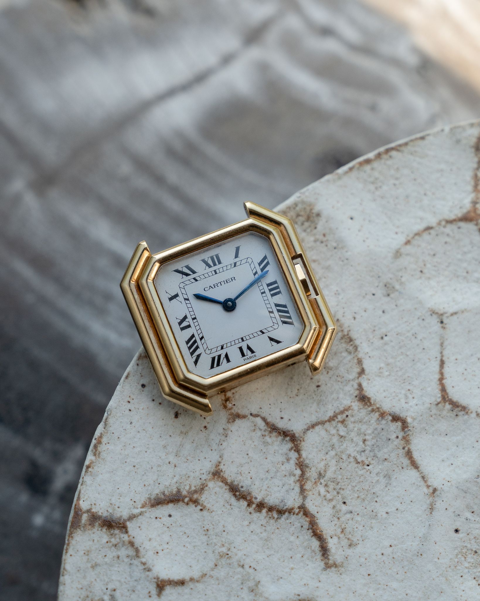 The Ceinture was originally introduced by Cartier in 1927. Over 50 years later, during the early 1970's, Cartier reintroduced the Ceinture as one of 12 special "shaped" watches that formed part of the “Louis Cartier Collection”. This 12 shape collection included familiar models such as the Ellipse, Cristallor, Gondollo, and Stepped Tank. The word Ceinture in French translates to "belt", and the watch was named as such given its resemblance to the buckle of a belt. The Ceinture in this era was produced either in white gold, yellow gold, or a combination of white gold and yellow gold. The octagonal case has a beautiful double stepped bezel and the manual wind 78-1 caliber can be wound by a flat octagonal crown. The present example here is the Ceinture in the SM size which was produced for women's. At 24.5mm x 25mm and 6.6mm thick, the case on this Ceinture is made of yellow gold. The Ceinture stands as a perfect example of why Cartier is often referred to as the "master of shapes". The maison's astonishing talent lies in crafting refreshingly unique designs that defy the traditional norms of their era, leaving us truly amazed.