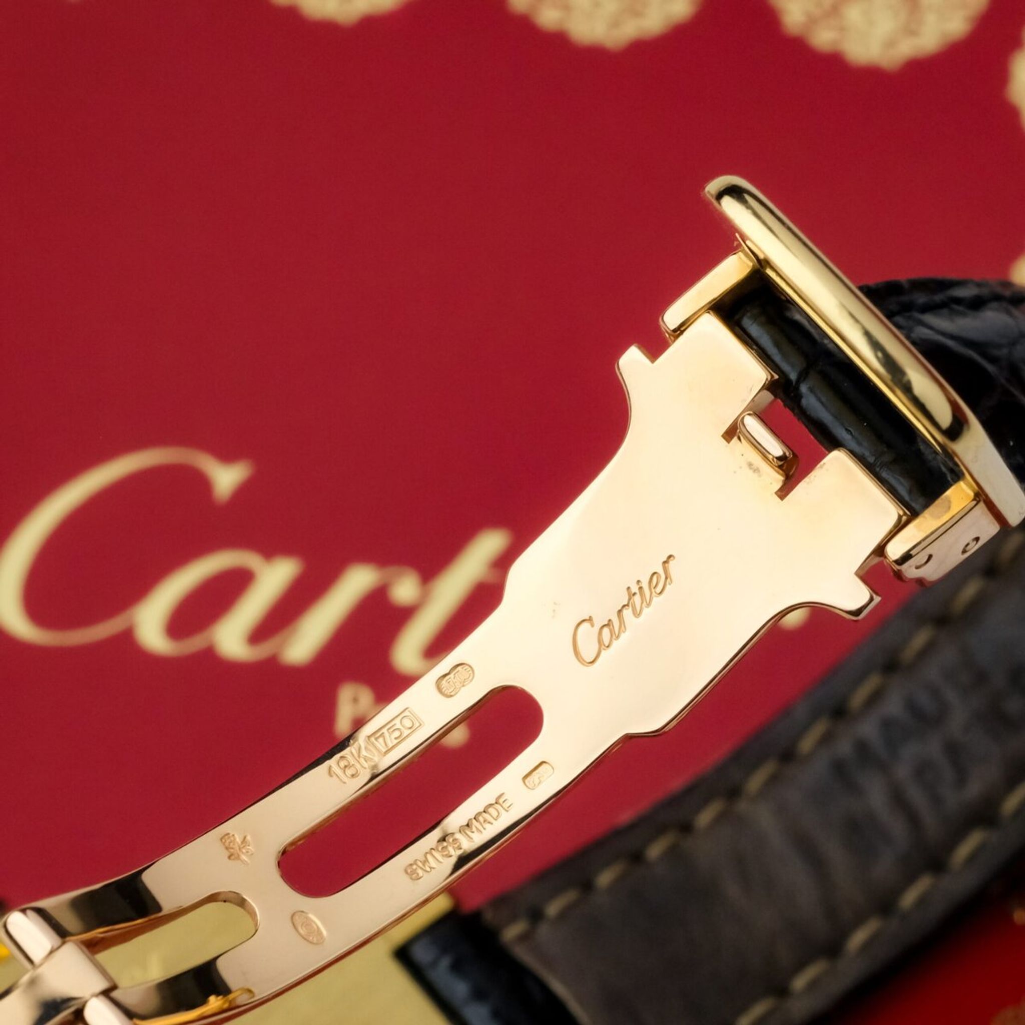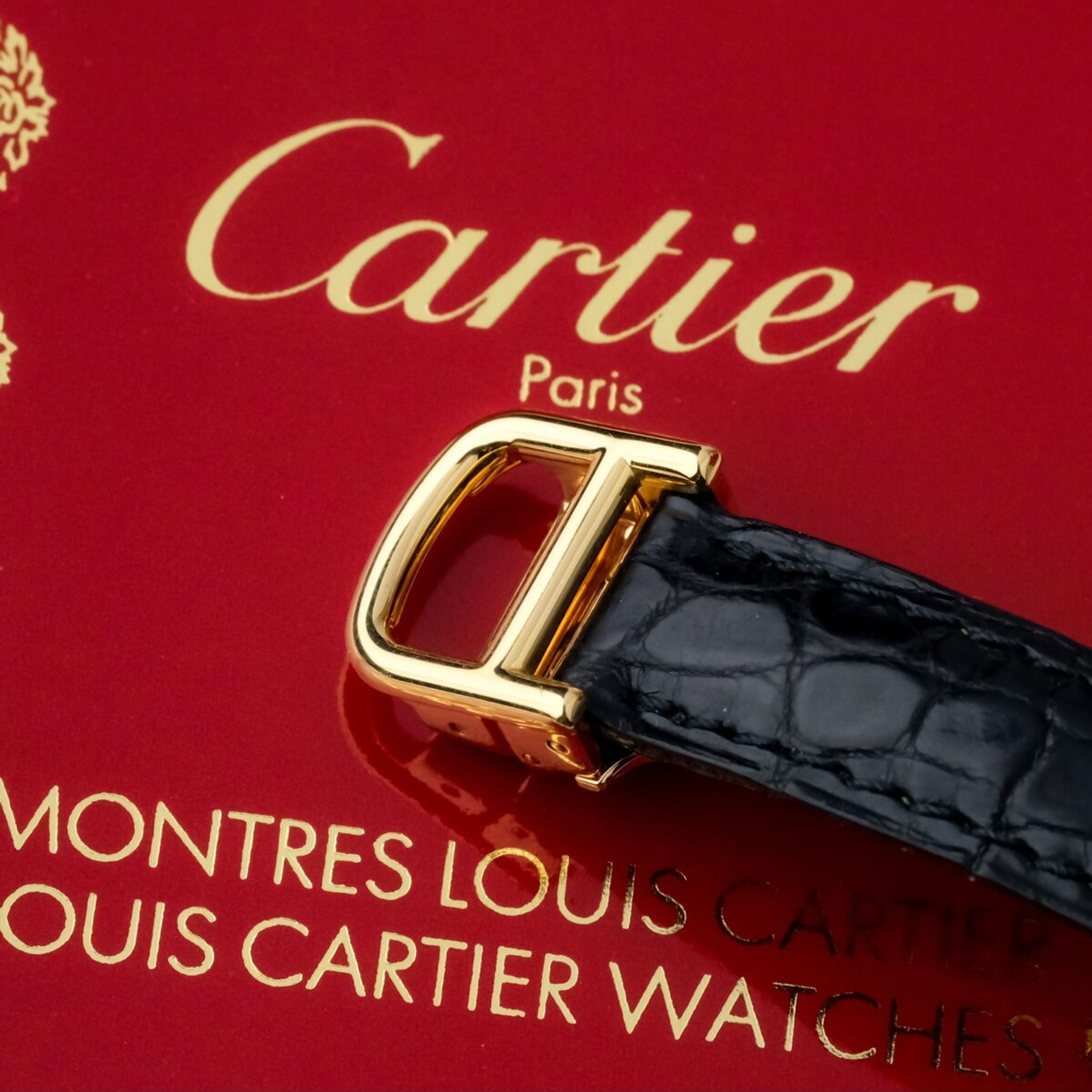 The Paris signed dial highlights its early production and rarity, featuring Cartier’s signature Roman numerals and blued steel hands in an elegant and balanced layout. Powered by a hand wound movement, the watch retains its original Cartier folding clasp and showcases the maison’s dedication to both mechanical excellence and artistic form.