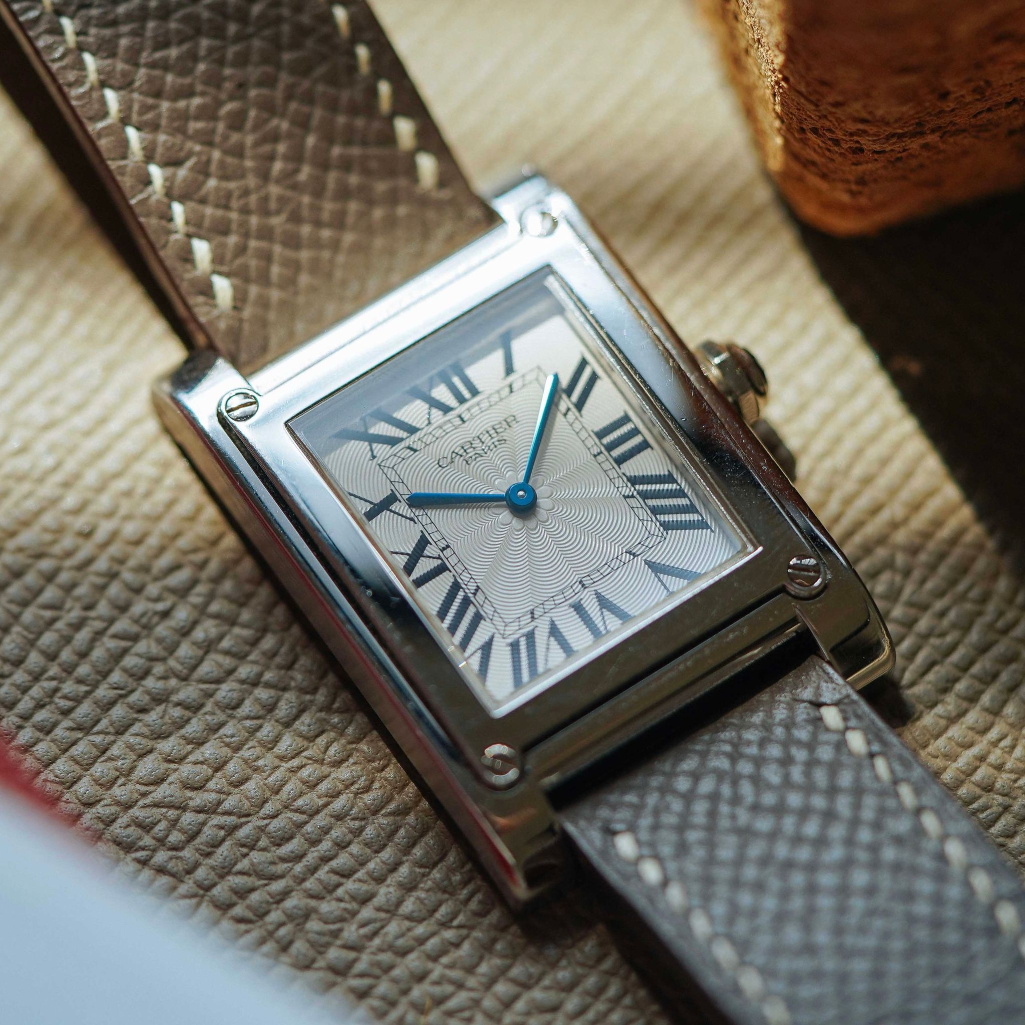 With its arched bezel with four platinum screws that hermetically seal the case, the Cartier Tank à Vis 2485 CPCP is one of the most refined examples from the range - classic, rare, time only and in platinum.