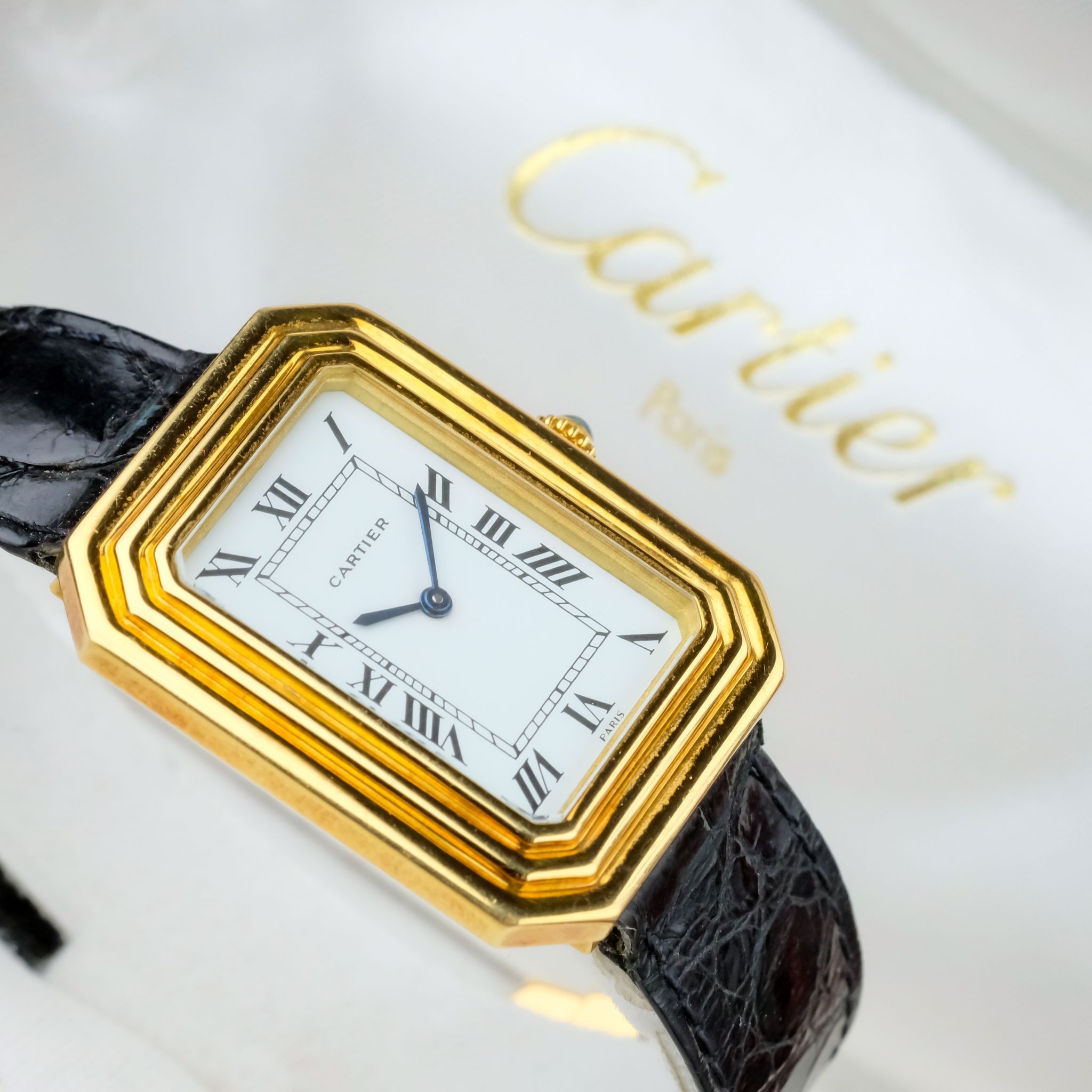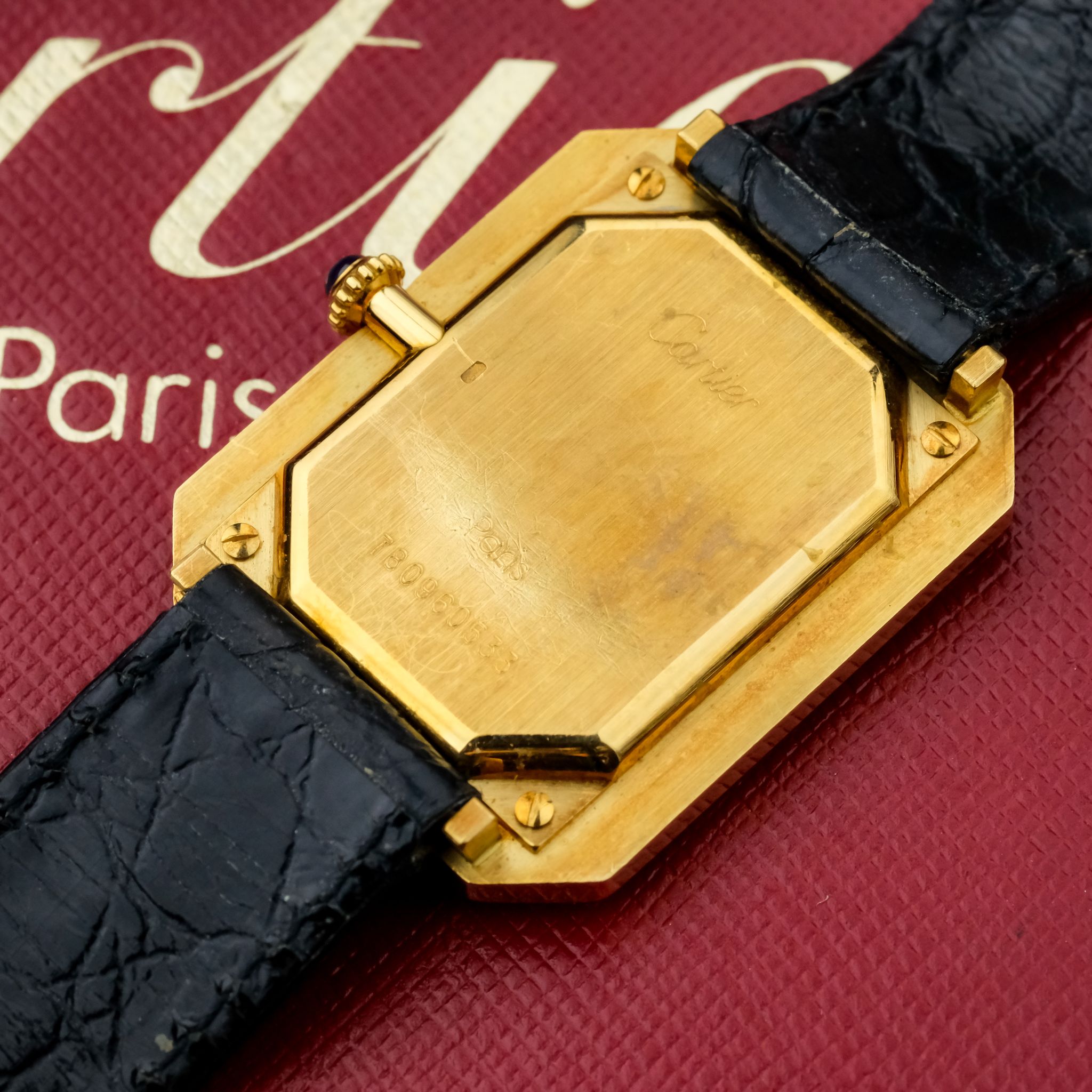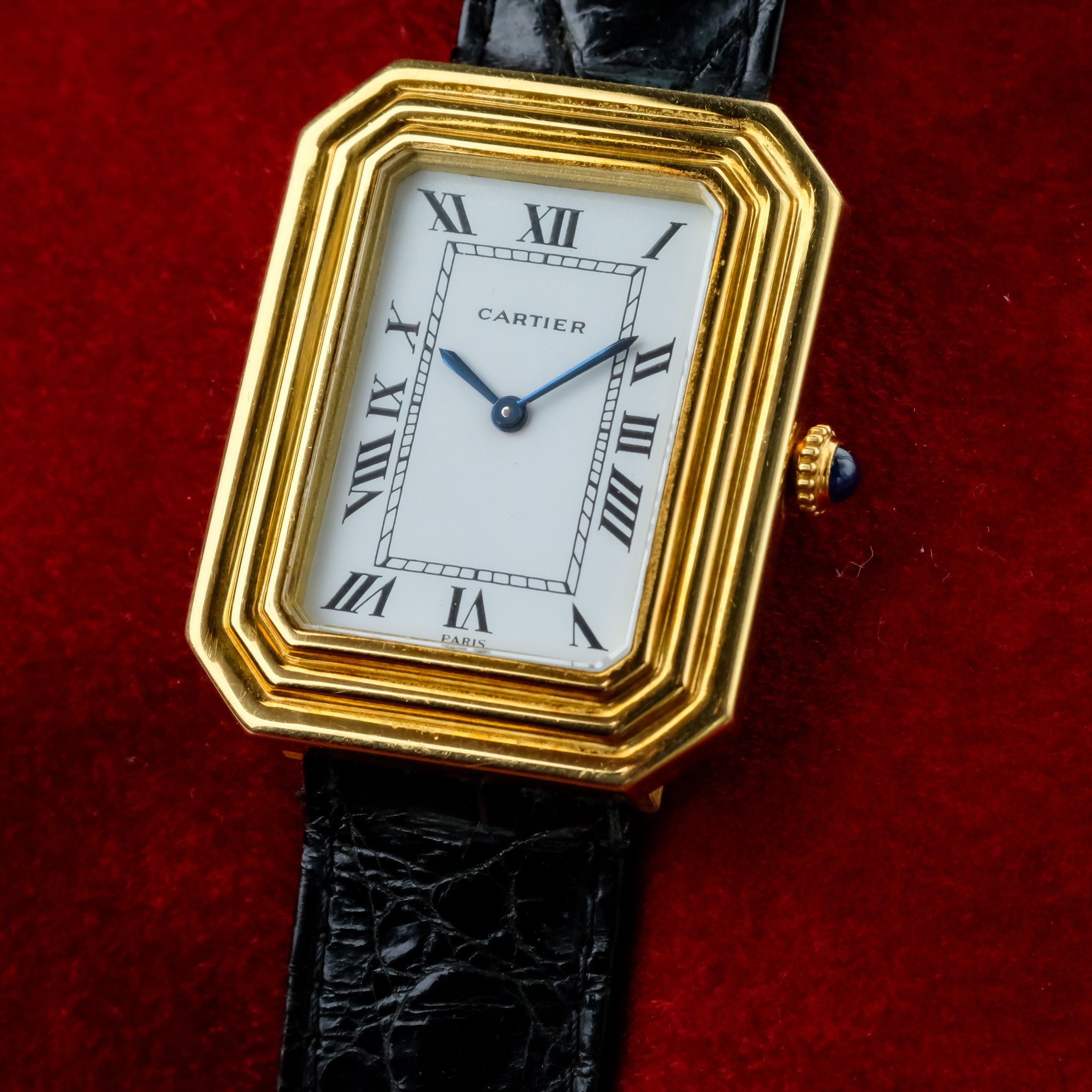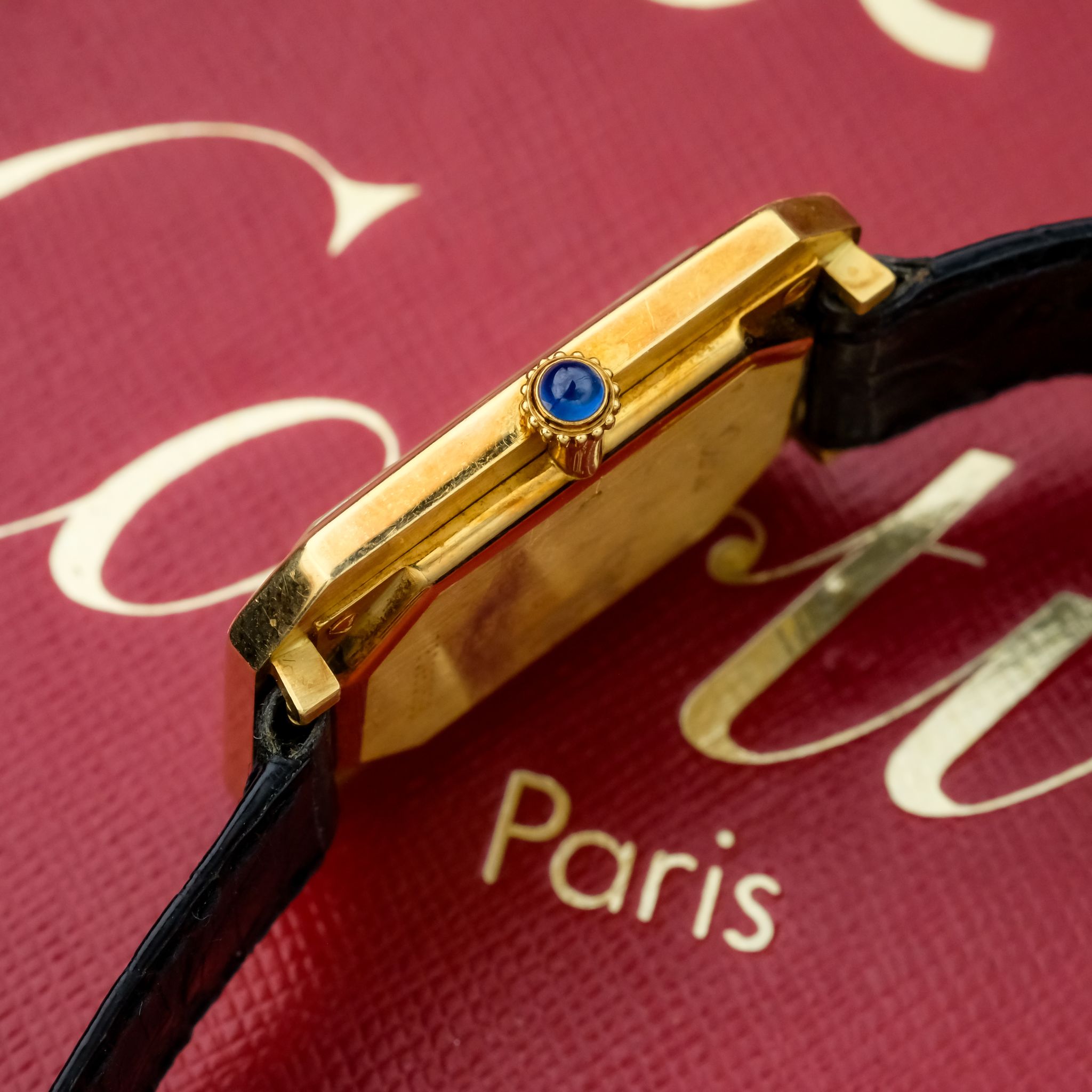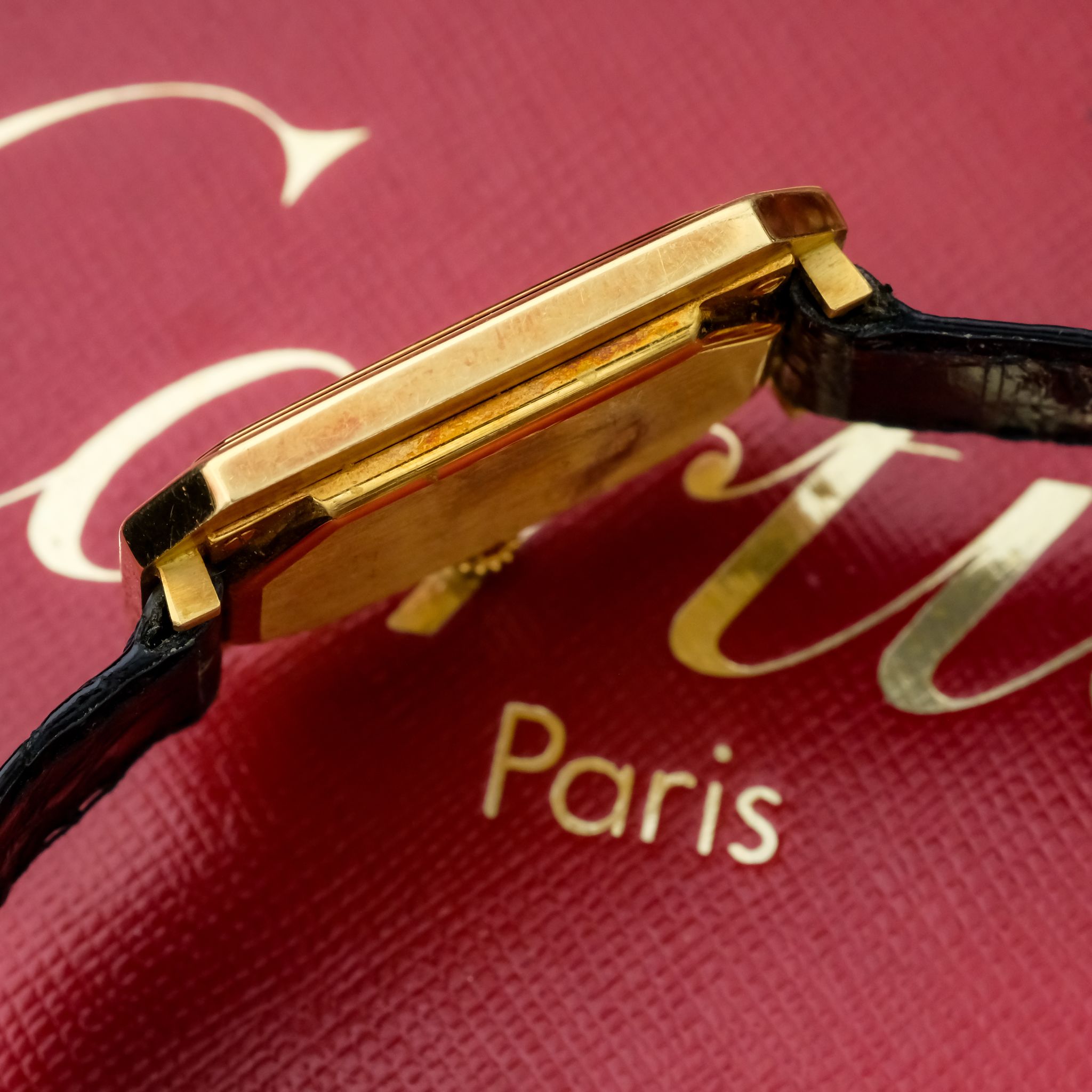 Impressive and increasingly rare to get Cartier Cristallor "jumbo" ref. 78096 in only very rarely worn condition, original "Paris dial without any hairlines. It appears like after only very few wears it was placed in a drawer (*head upwards hence the clasps marks on the caseback) because of the incredible condition and the original strap lightly worn still mounted.