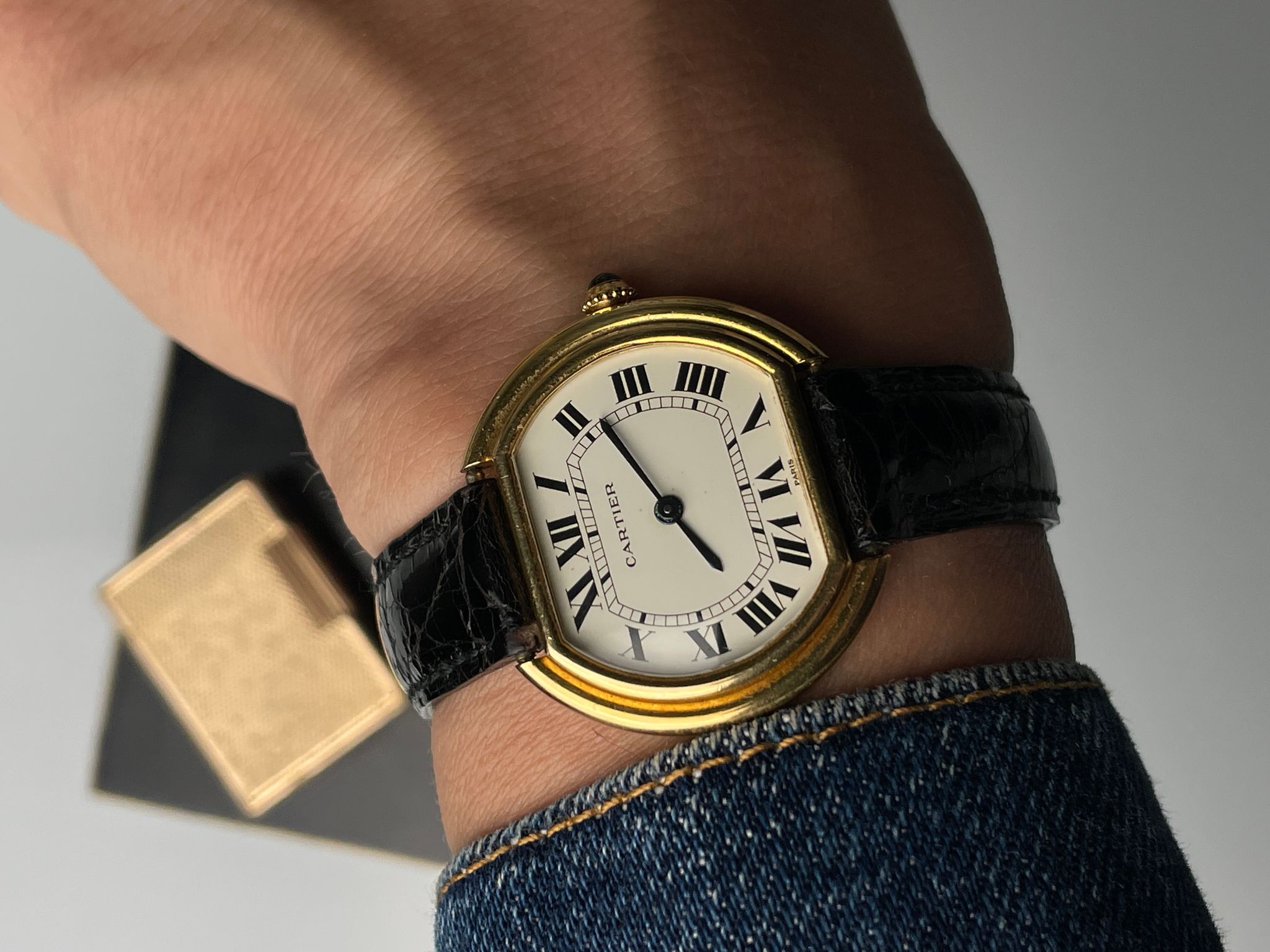 This watch is THE incarnation of the Cartier’s « elegance intemporelle ». The large case makes it the perfect androgynous wristwatch, elegant for for both women and men.
