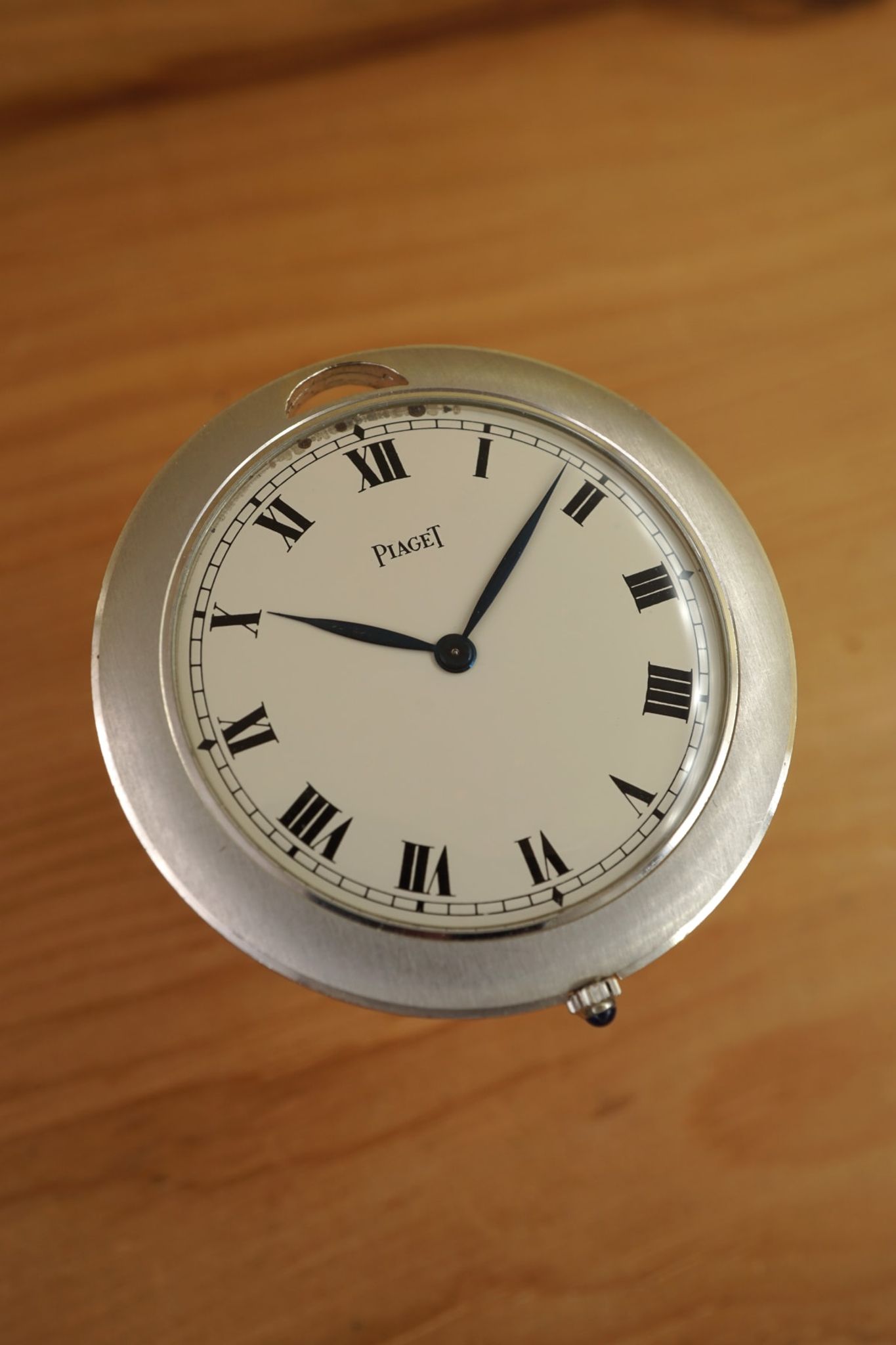 Rare & well preserved whitegold example of a 1960s Piaget Pocketwatch with the classic Cartier-esque dial (white with black roman numerals and a minute-track).