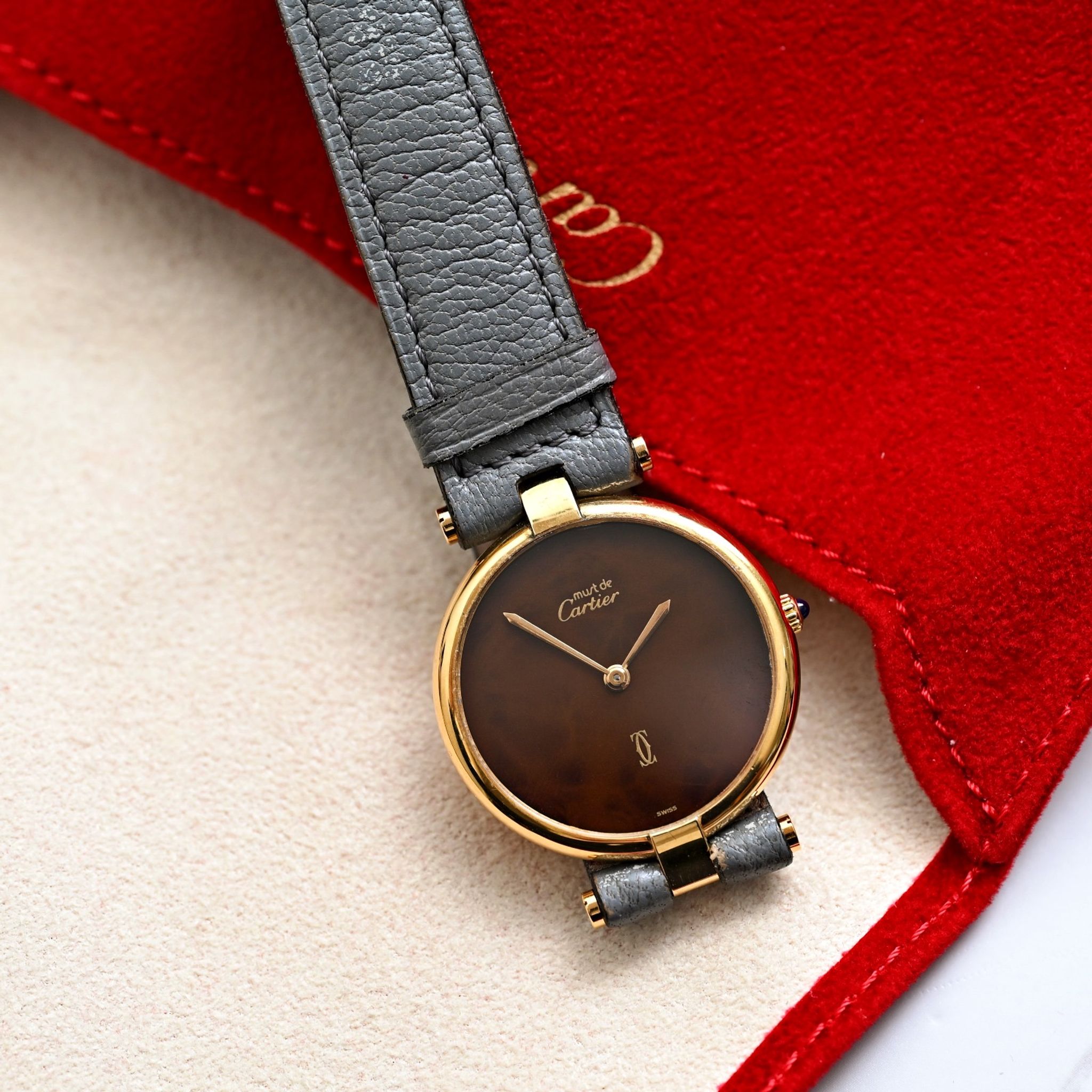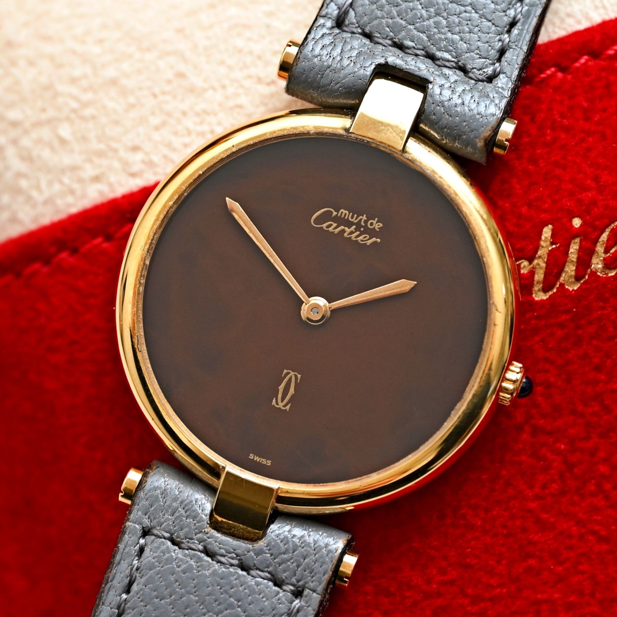 Cartier - Cartier Gold Plated Must de Vermeil Brown Dial Quartz w/Service Paper