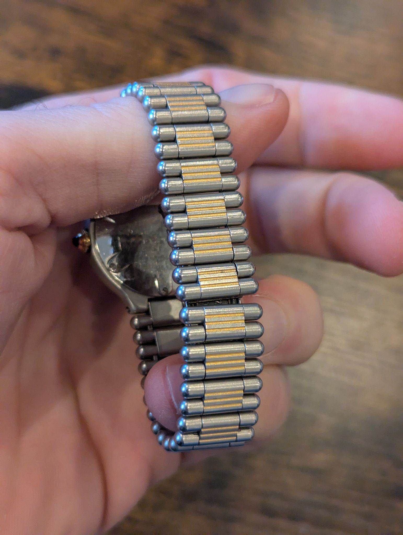 The Cartier Must 21 is an iconic model introduced in the 1980s as part of the brand's effort to create a more accessible line of luxury watches. This collection combines Cartier’s signature elegance with a sporty and modern design. The Must 21 features a distinctive round case with Roman numerals engraved on the bezel, giving it a classic yet bold look. Its smooth, streamlined design is enhanced by the use of stainless steel, paired with gold accents, offering a sleek, two-tone aesthetic.