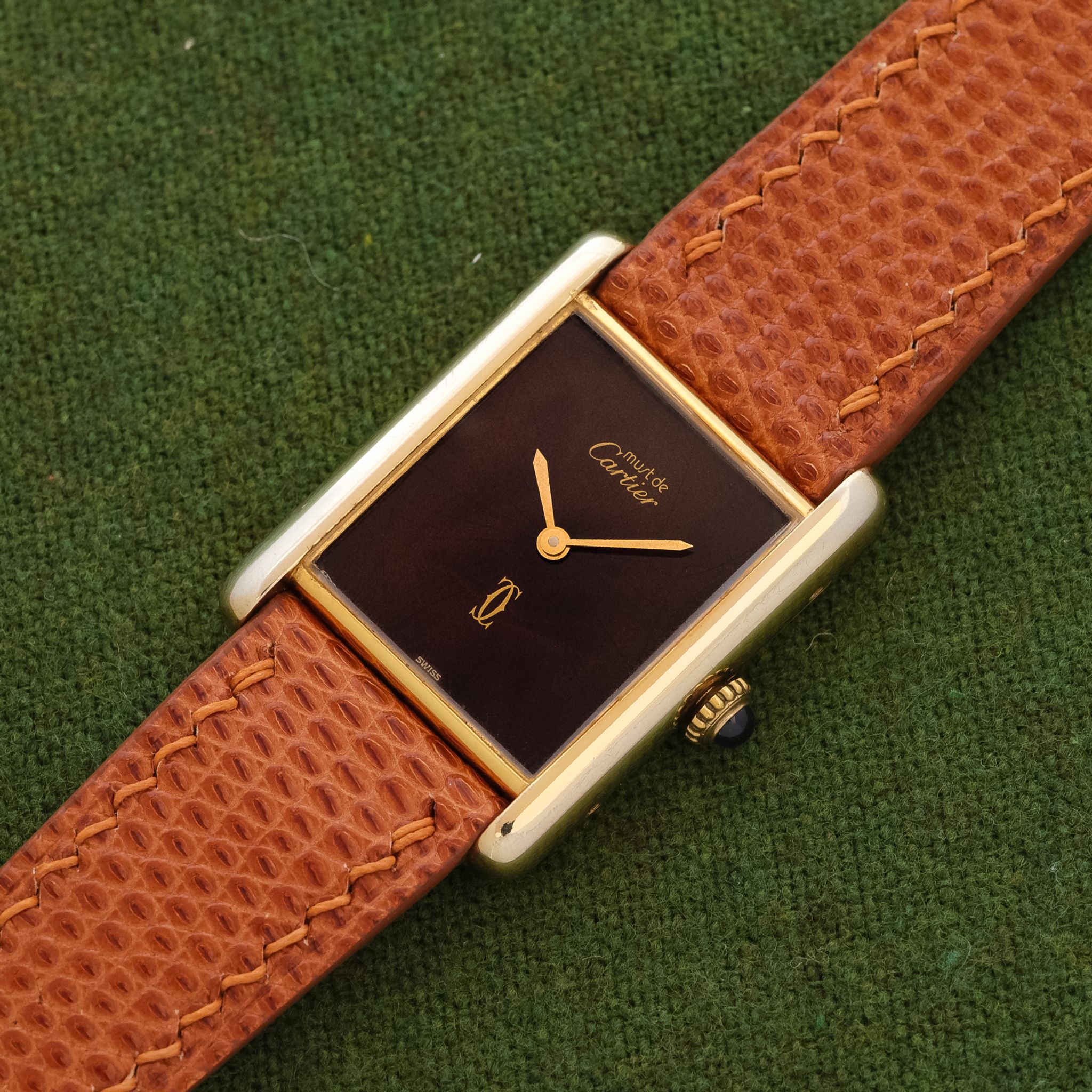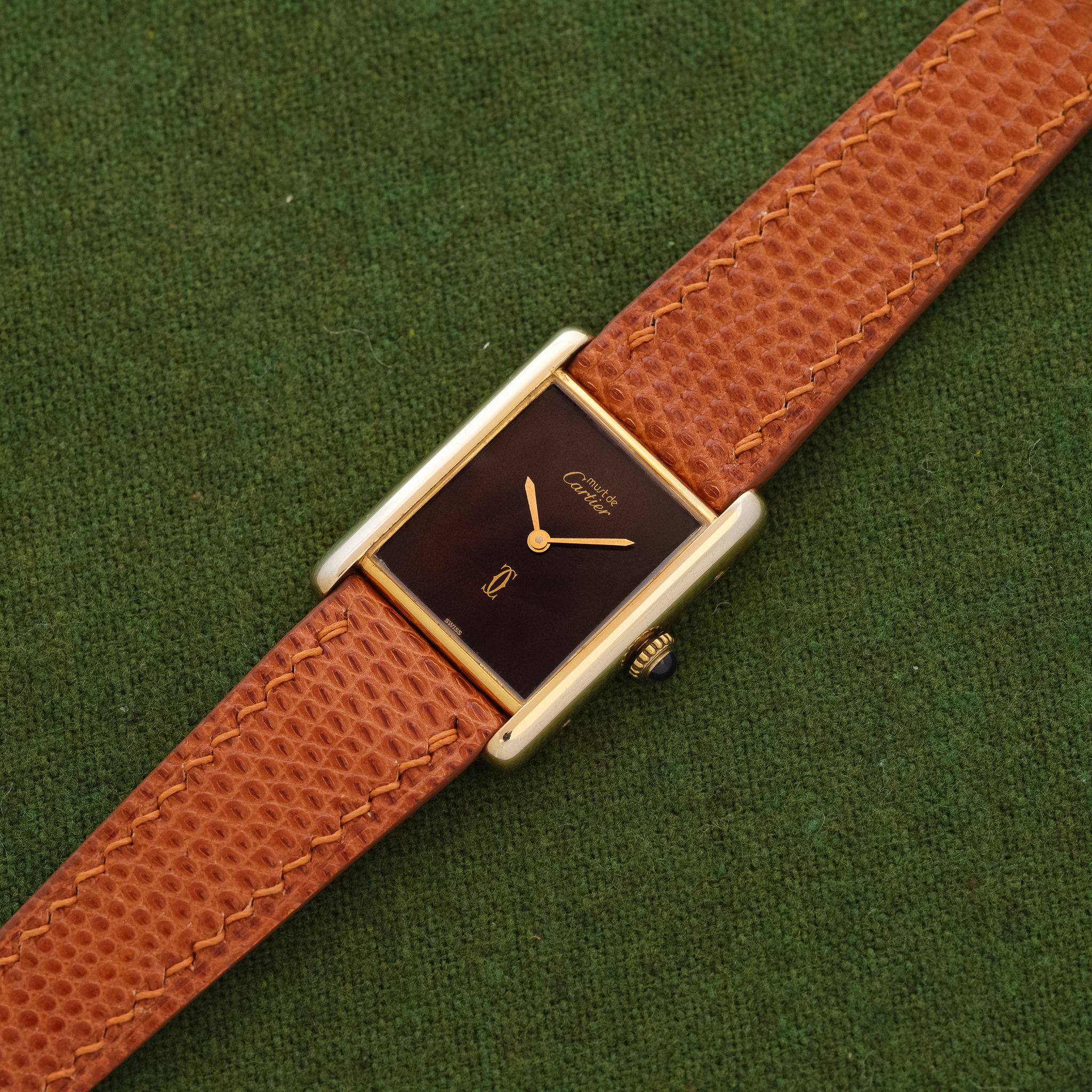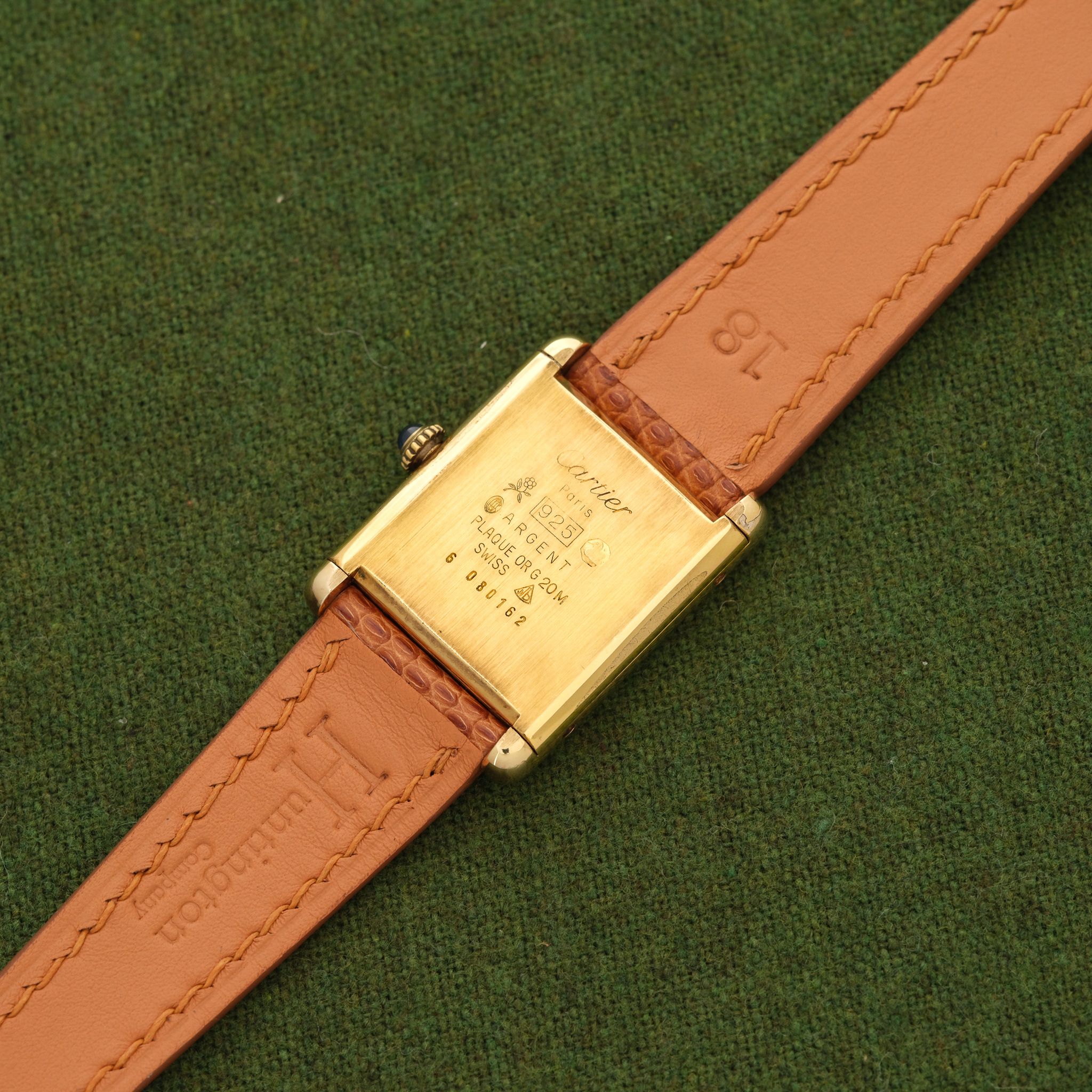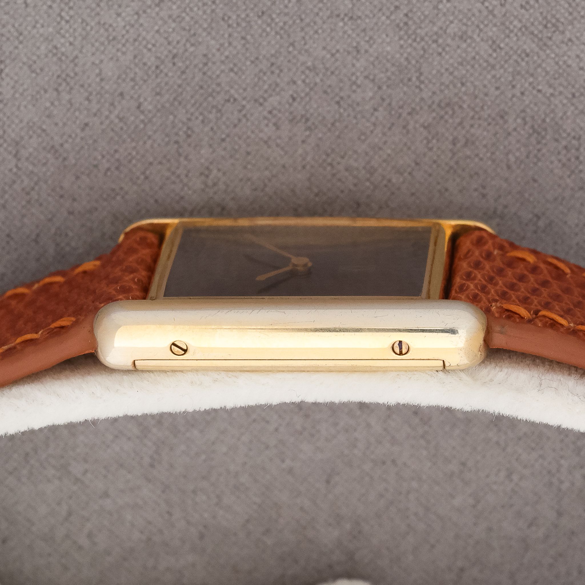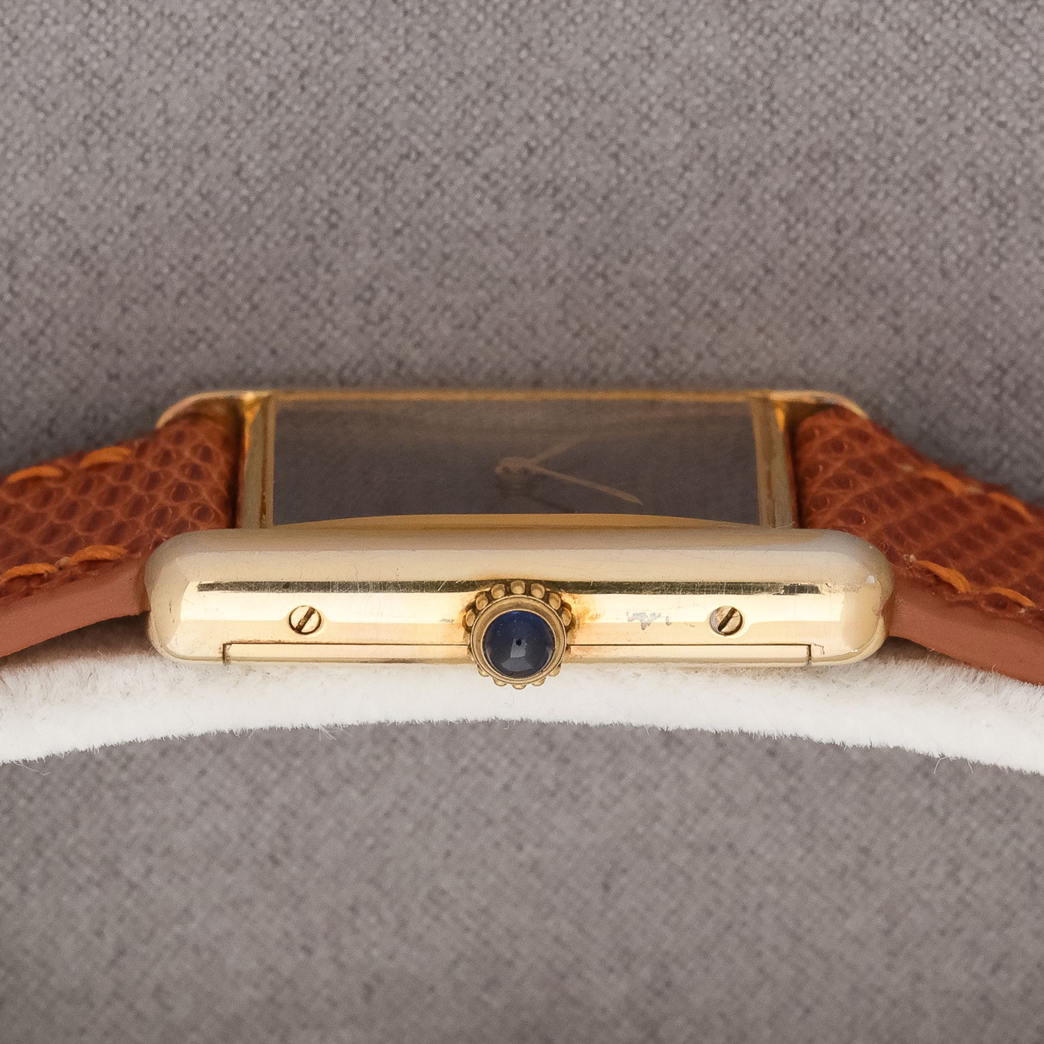 Case: The large size Tank case is 23x30mm. The case has signs of wear with some fading of the gold plating.