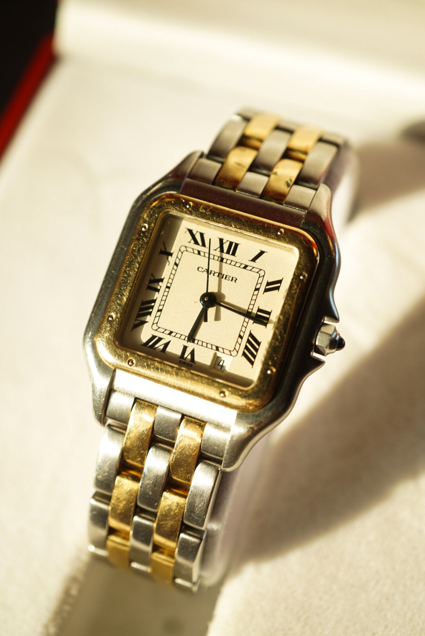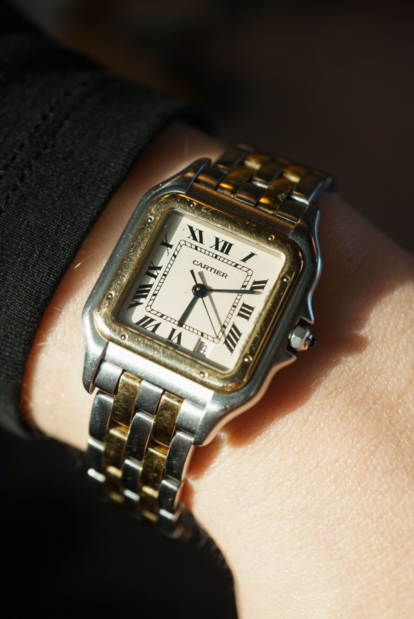 Cartier Panthère from the 1990s – A classic design from the Maison, first introduced in 1983. This model is instantly recognizable by its signature beaded bracelet. It’s available in various configurations, but always retains the iconic design.