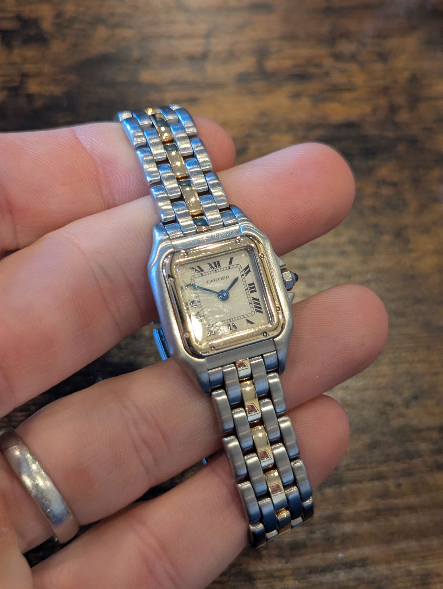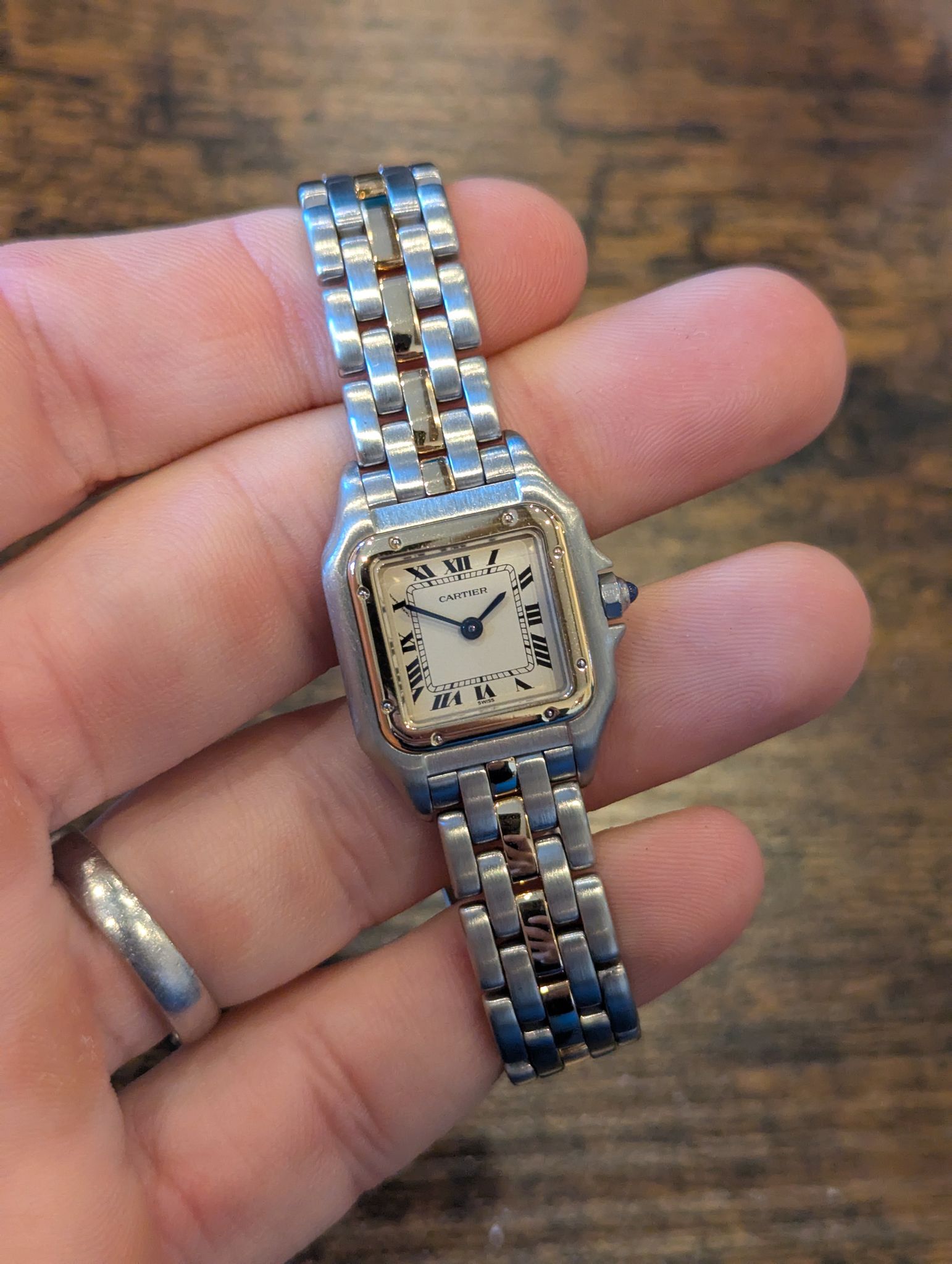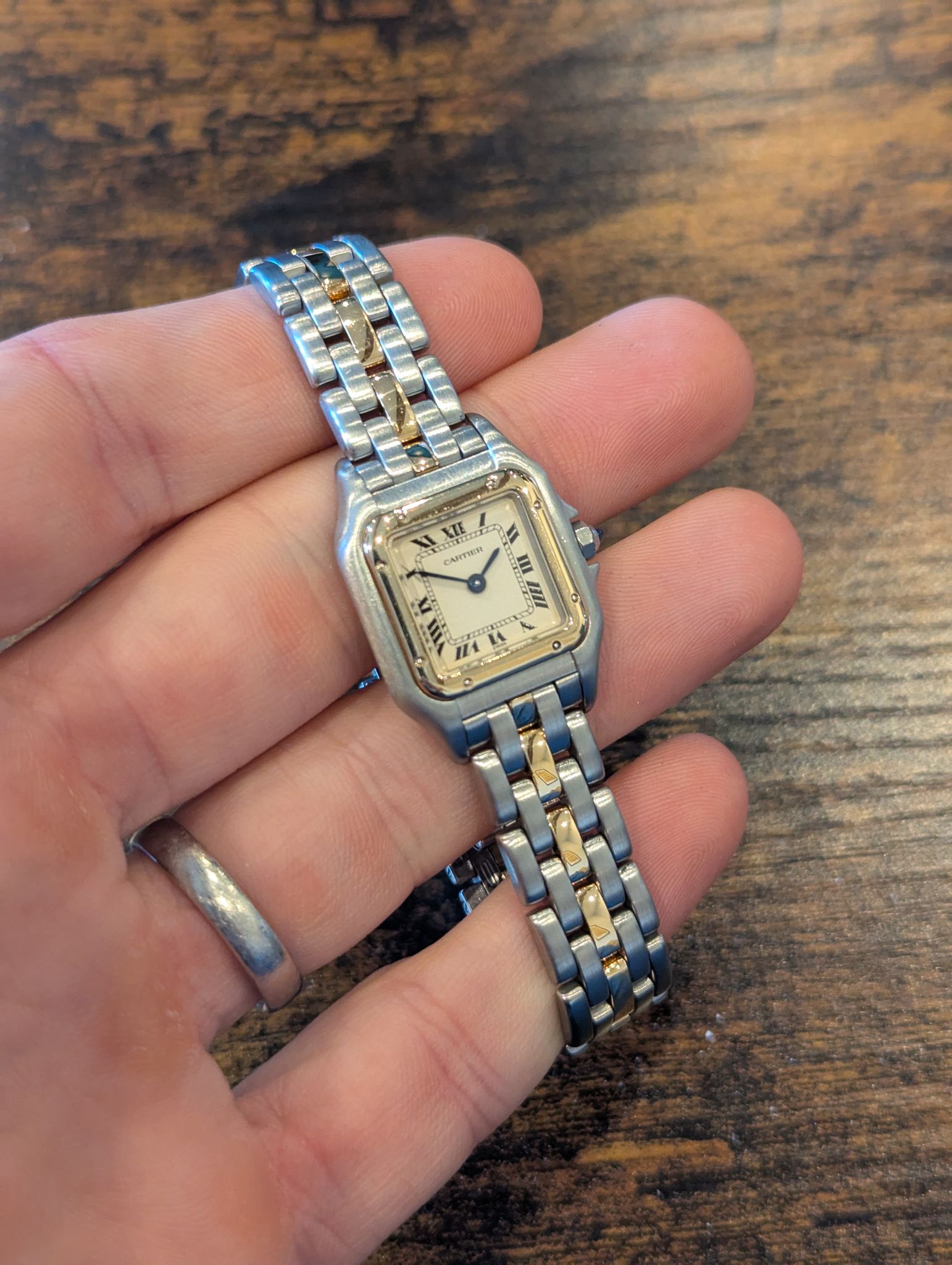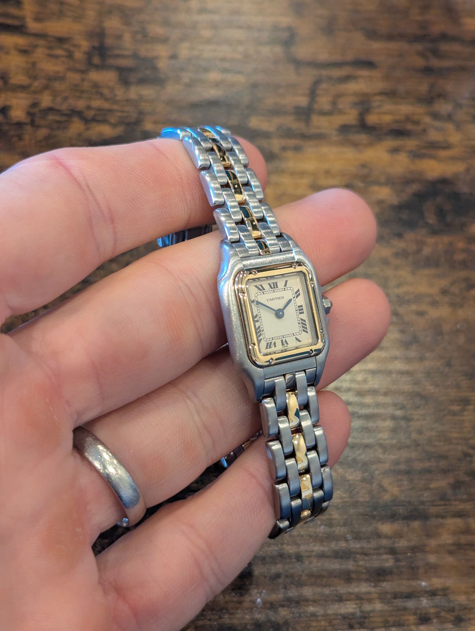 The Cartier Panthere is a true icon of luxury and sophistication, known for its timeless elegance and sleek design. First introduced in the 1980s, the Panthère collection quickly became one of Cartier's most beloved watch lines. The 2-Tone version, featuring a mix of stainless steel and yellow gold, brings a beautiful contrast and adds a touch of warmth to the cool steel, making it versatile enough for both casual and formal wear.