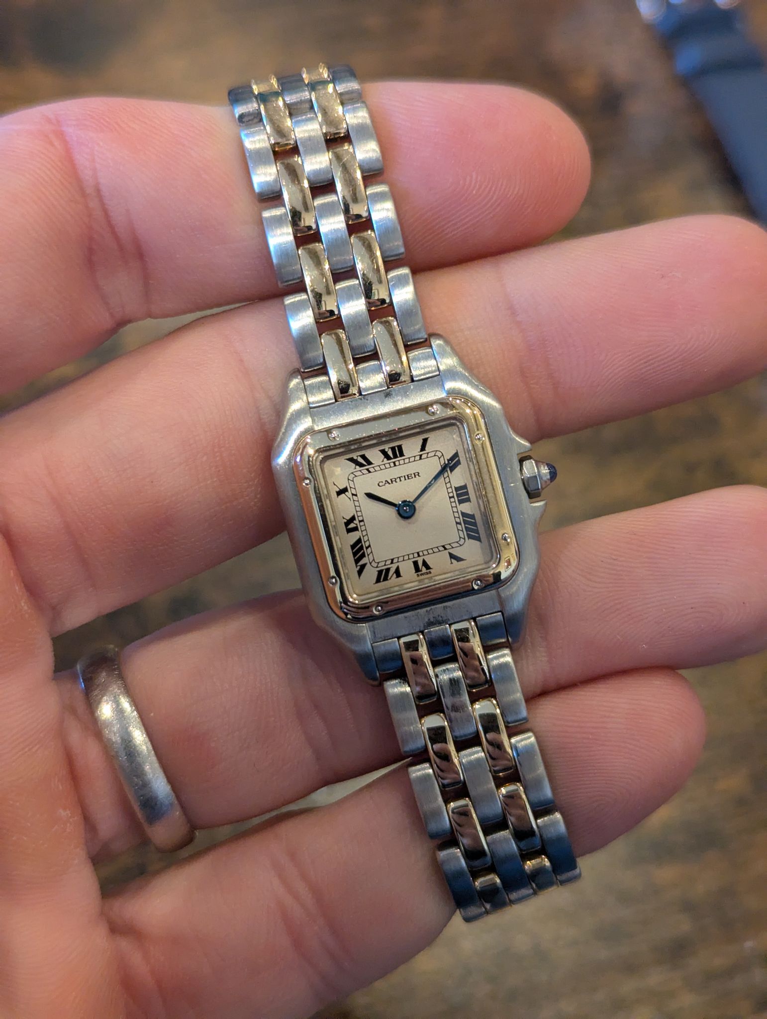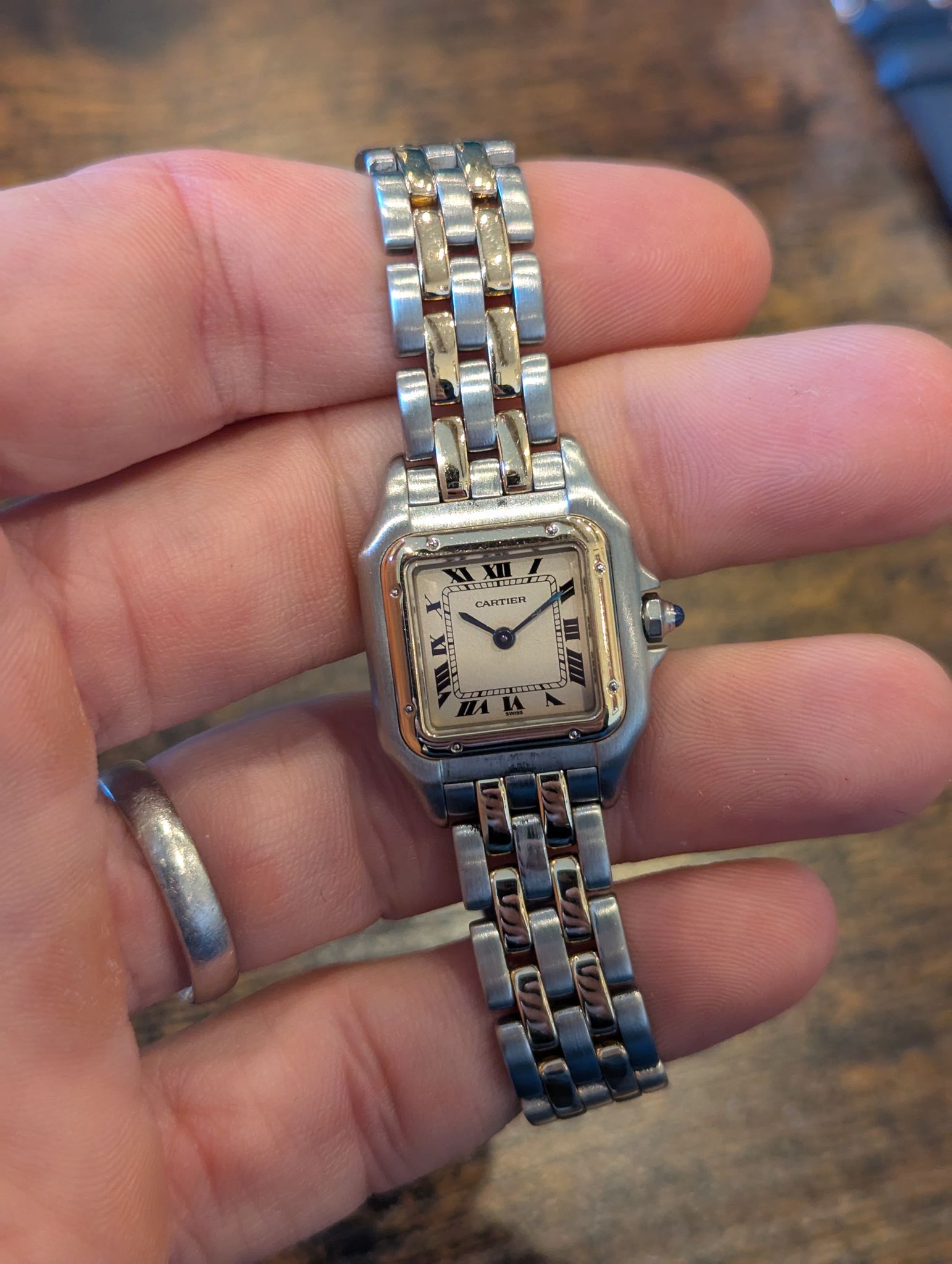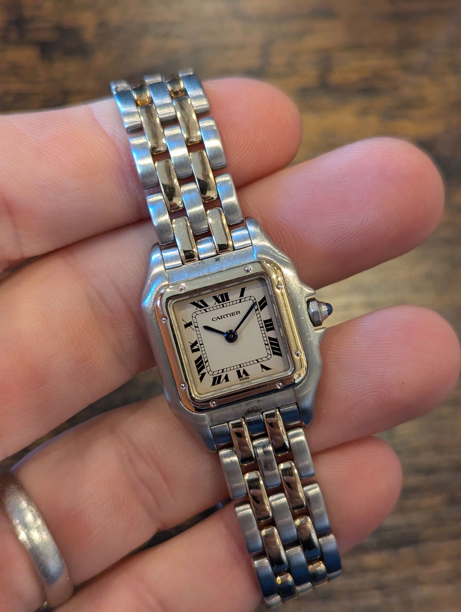 The Cartier Panthere is a true icon of luxury and sophistication, known for its timeless elegance and sleek design. First introduced in the 1980s, the Panthère collection quickly became one of Cartier's most beloved watch lines. The 2-Tone version, featuring a mix of stainless steel and yellow gold, brings a beautiful contrast and adds a touch of warmth to the cool steel, making it versatile enough for both casual and formal wear.