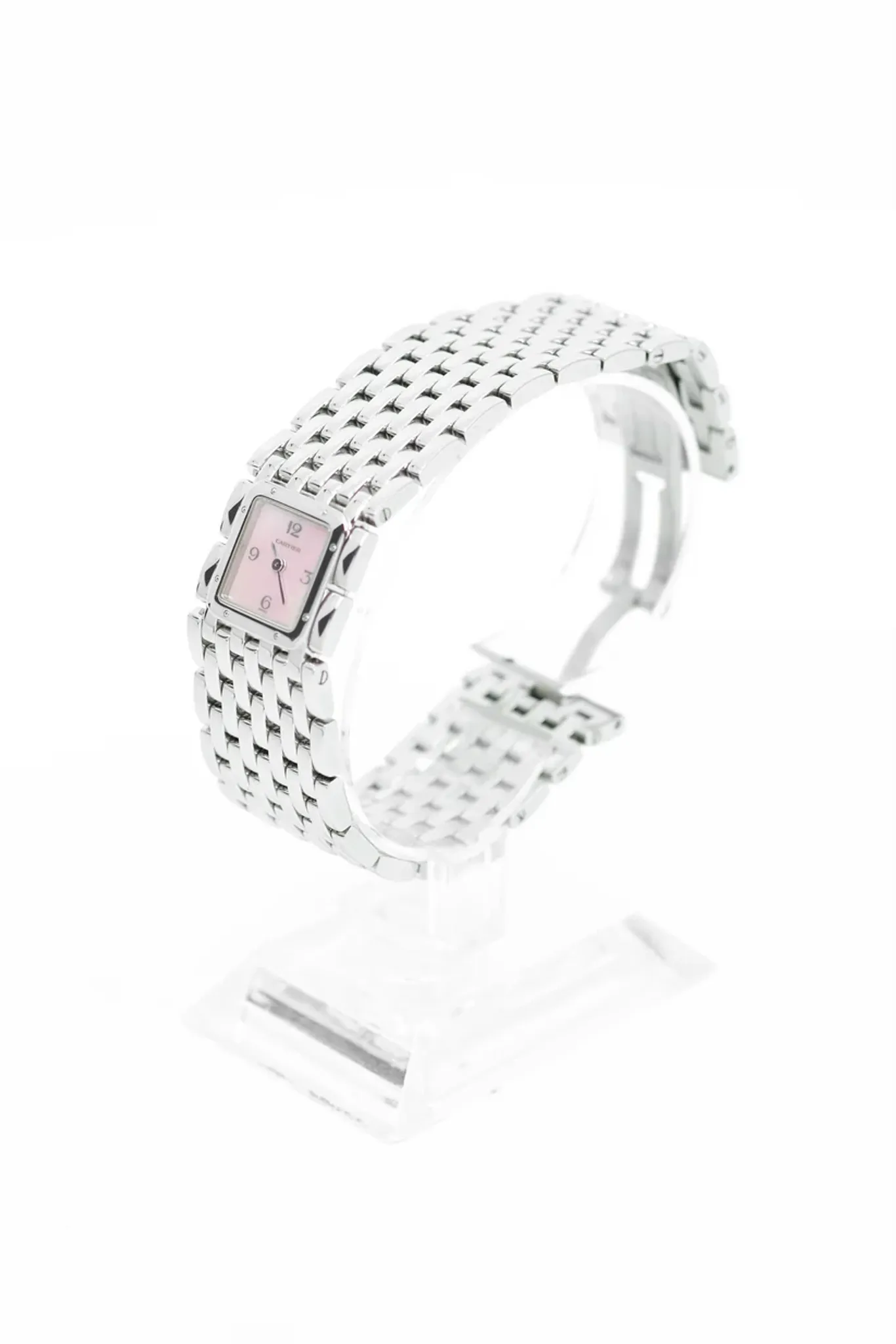 Steel case and bracelet. Pink mother-of-pearl dial.