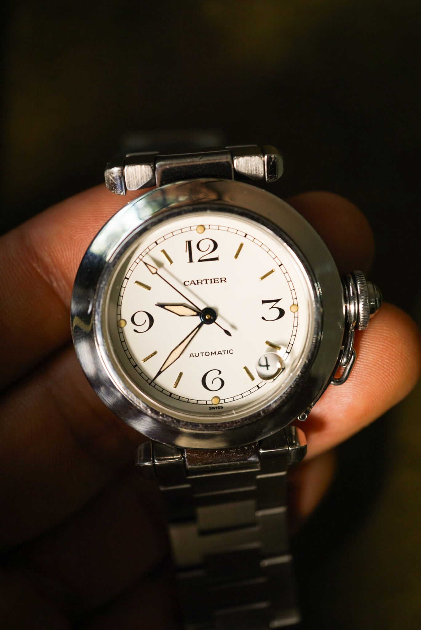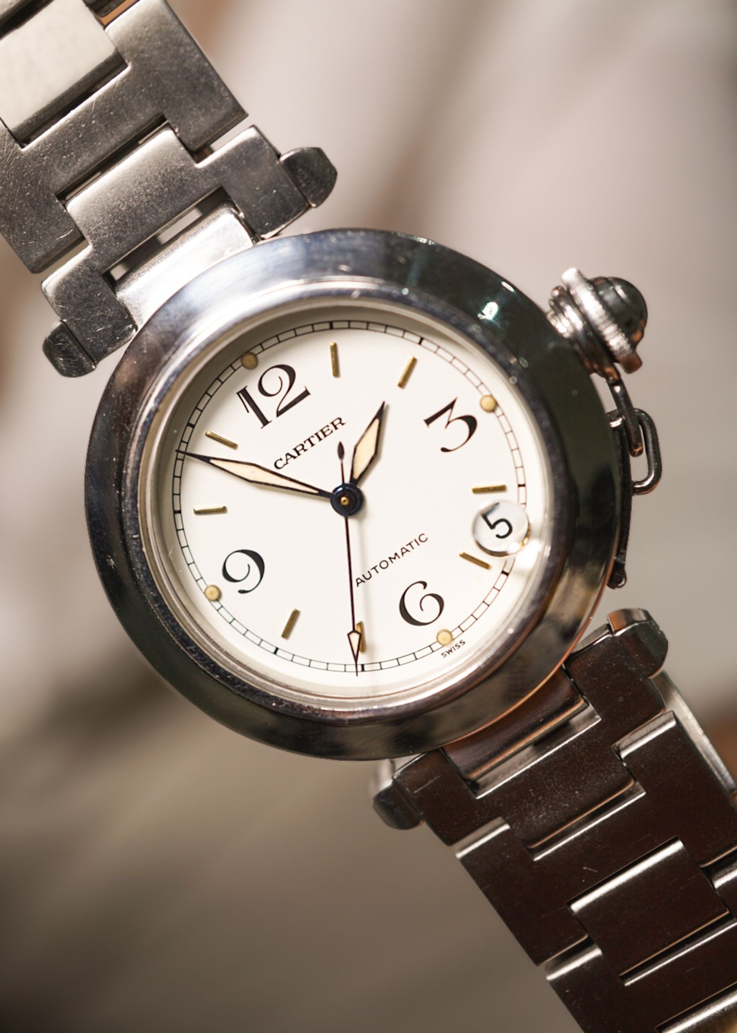 Beautiful Cartier Pasha from the 90s, I’ve always admired this design. Another great creation by Gerald Genta, originally launched in 1985, this one is 35mm which wears great on mid-size wrists. Comes in a full stainless steel case which helps it be more versatile.