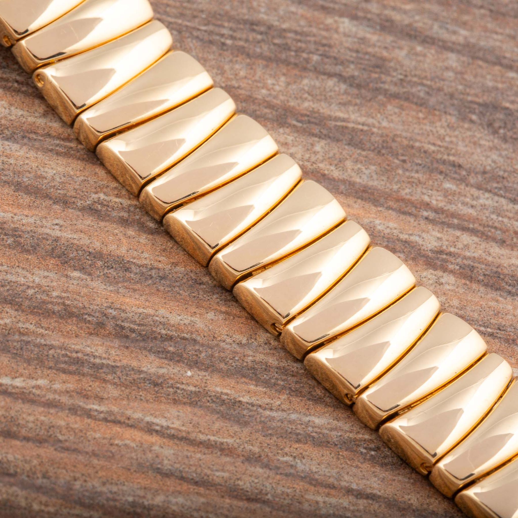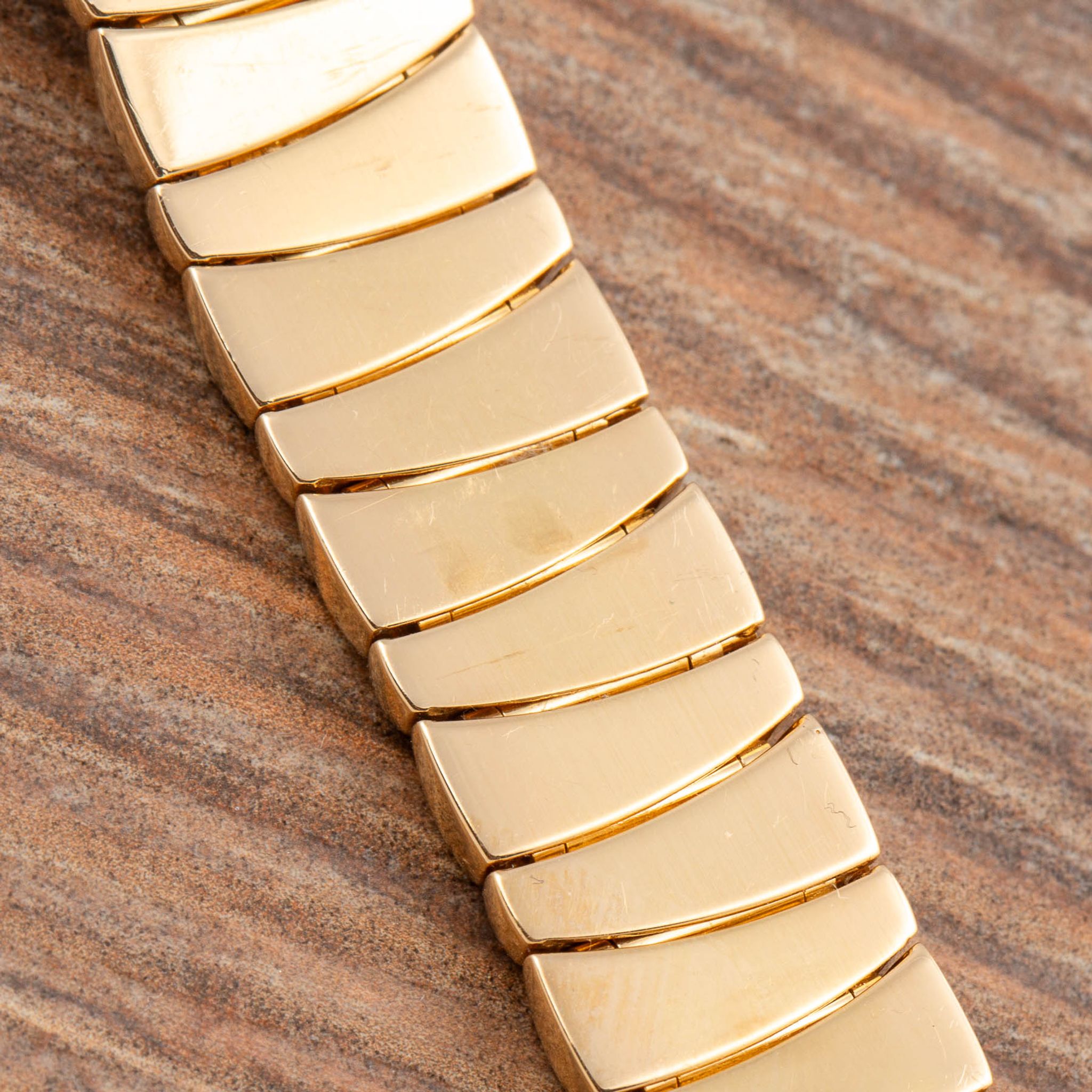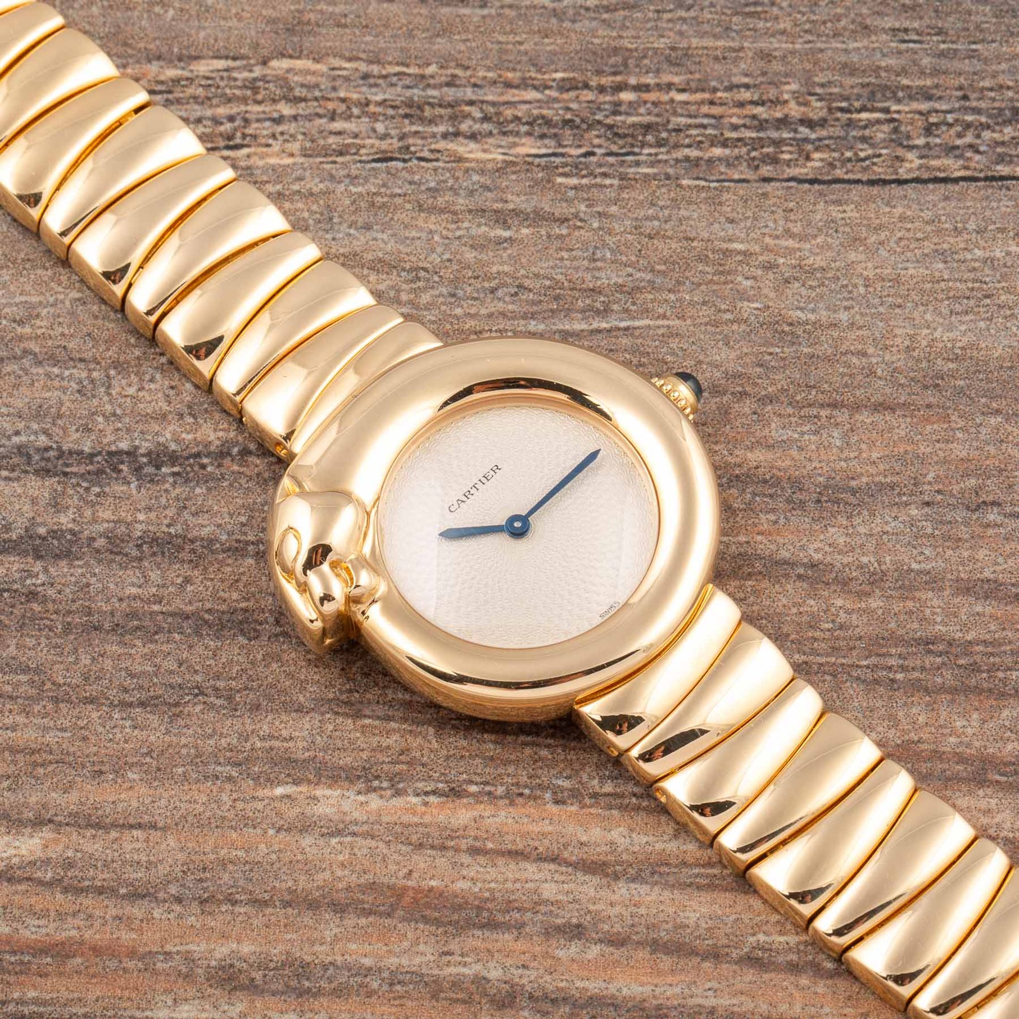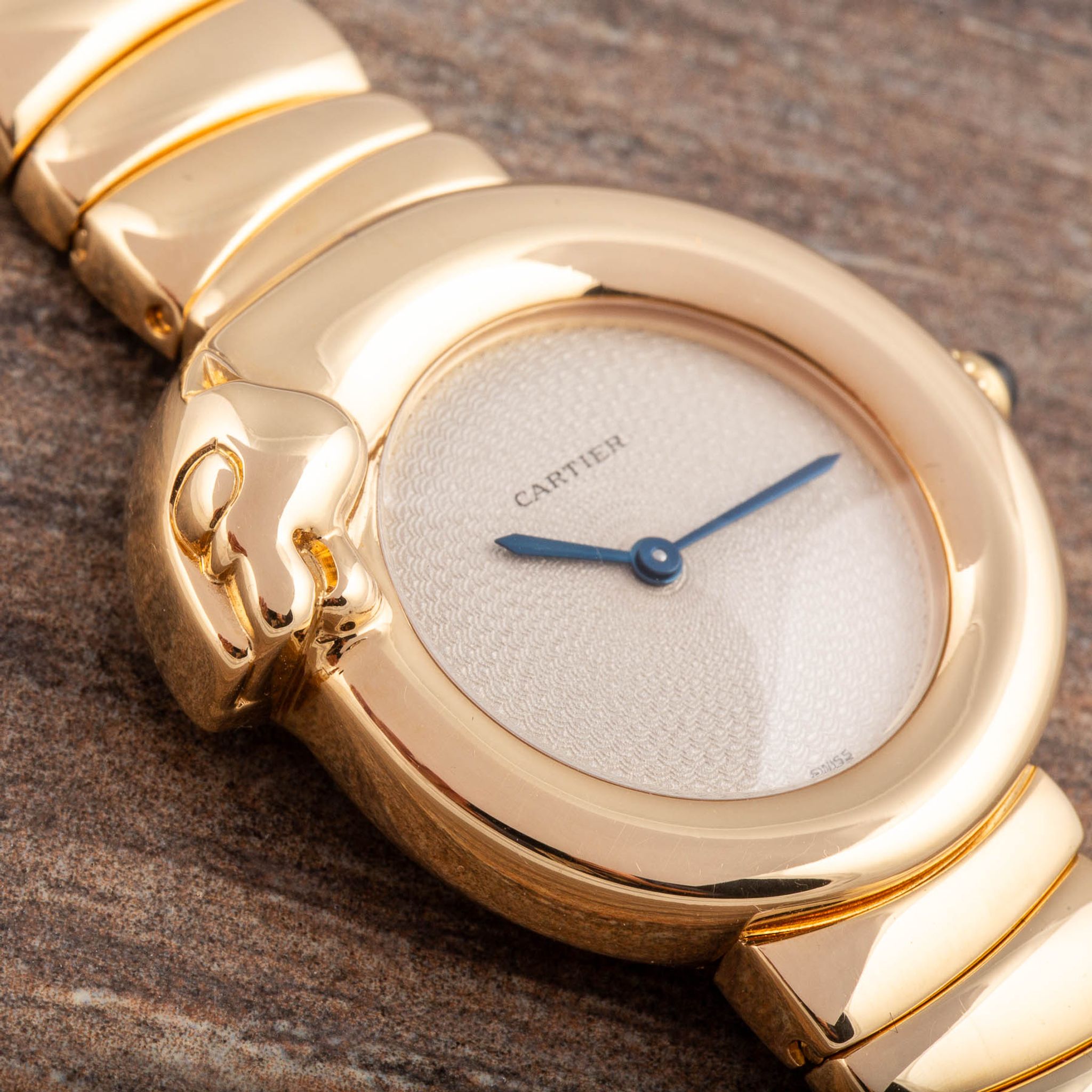 The Reference 2325, made in the 1990s, perfectly reflects this idea. The case is crafted in 18k yellow gold and shaped like a panther — a powerful symbol of the maison — with a matching integrated bracelet that gives the watch a smooth and refined look.