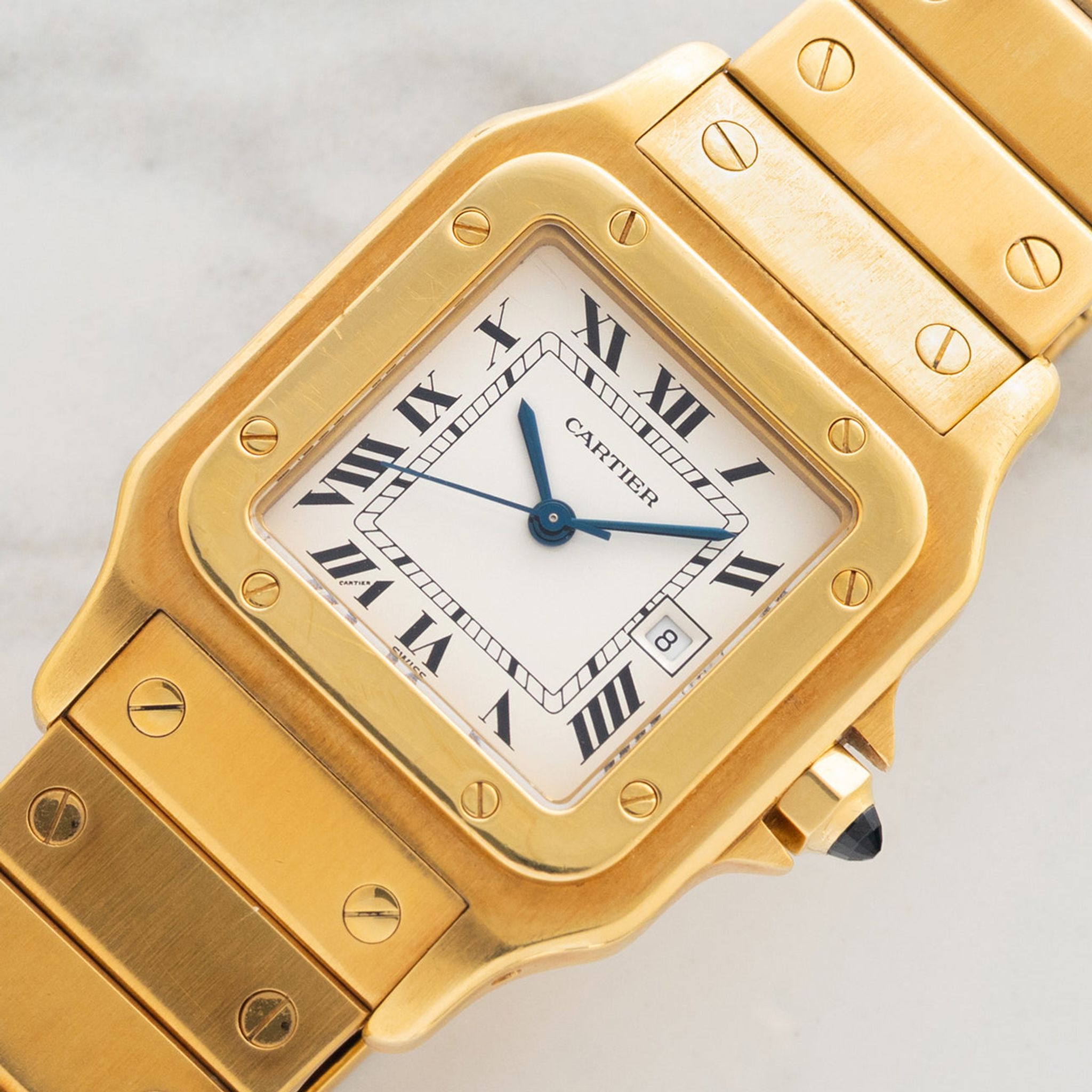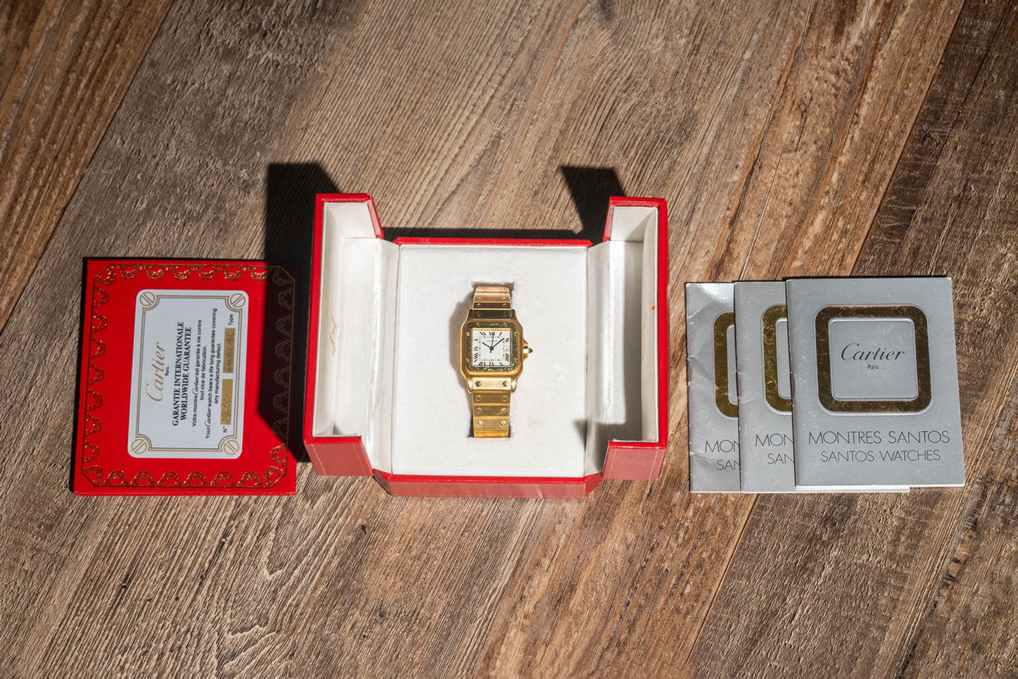 Accessories: Box, warranty card, folder and 3 Santos booklets. Authentic Cartier service pouch for storage and travel.