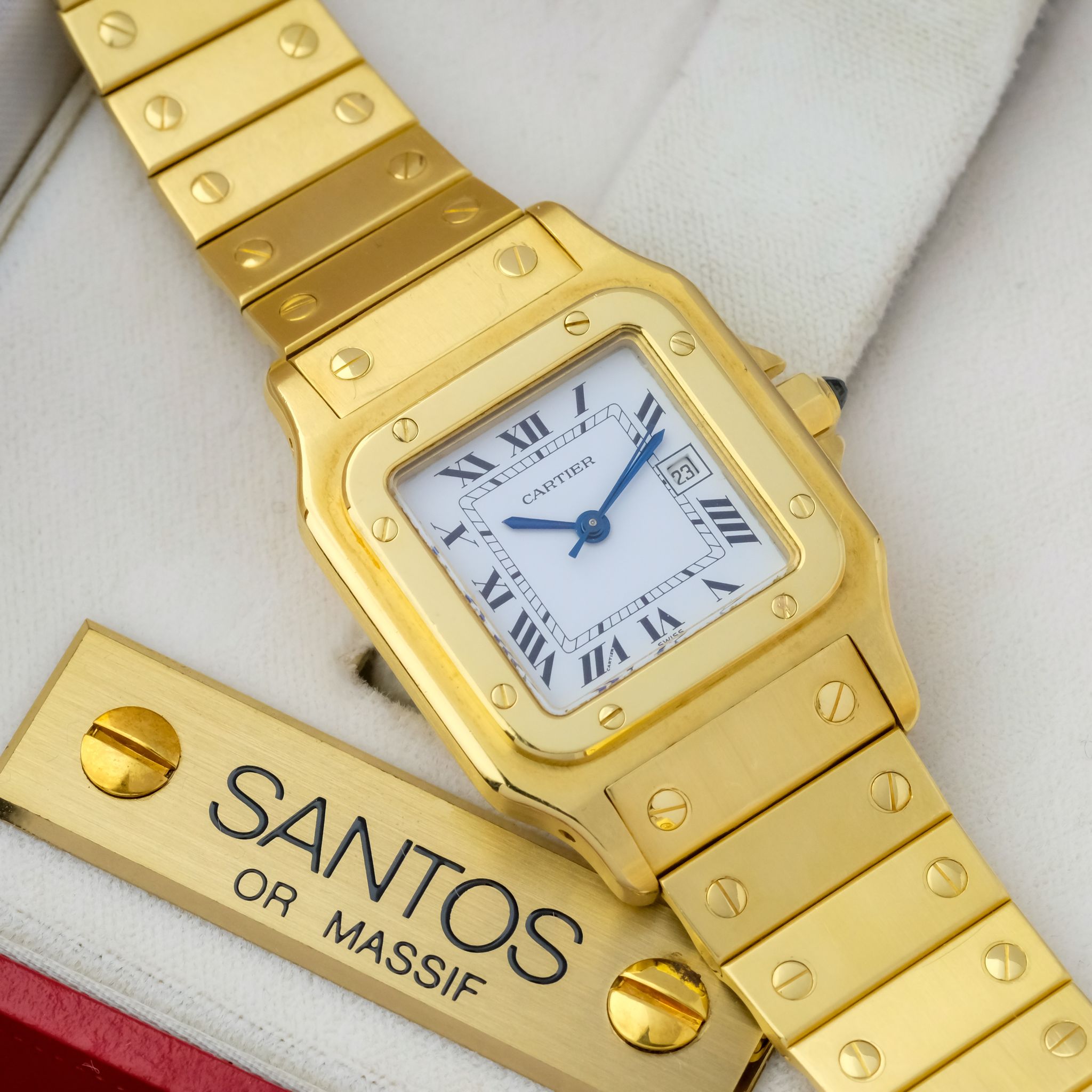 The Cartier Santos Carrée Ref. 2960, affectionately known as the “or massif,” is a bold and luxurious take on Cartier’s legendary square watch design from the late 1970s and early 1980s.