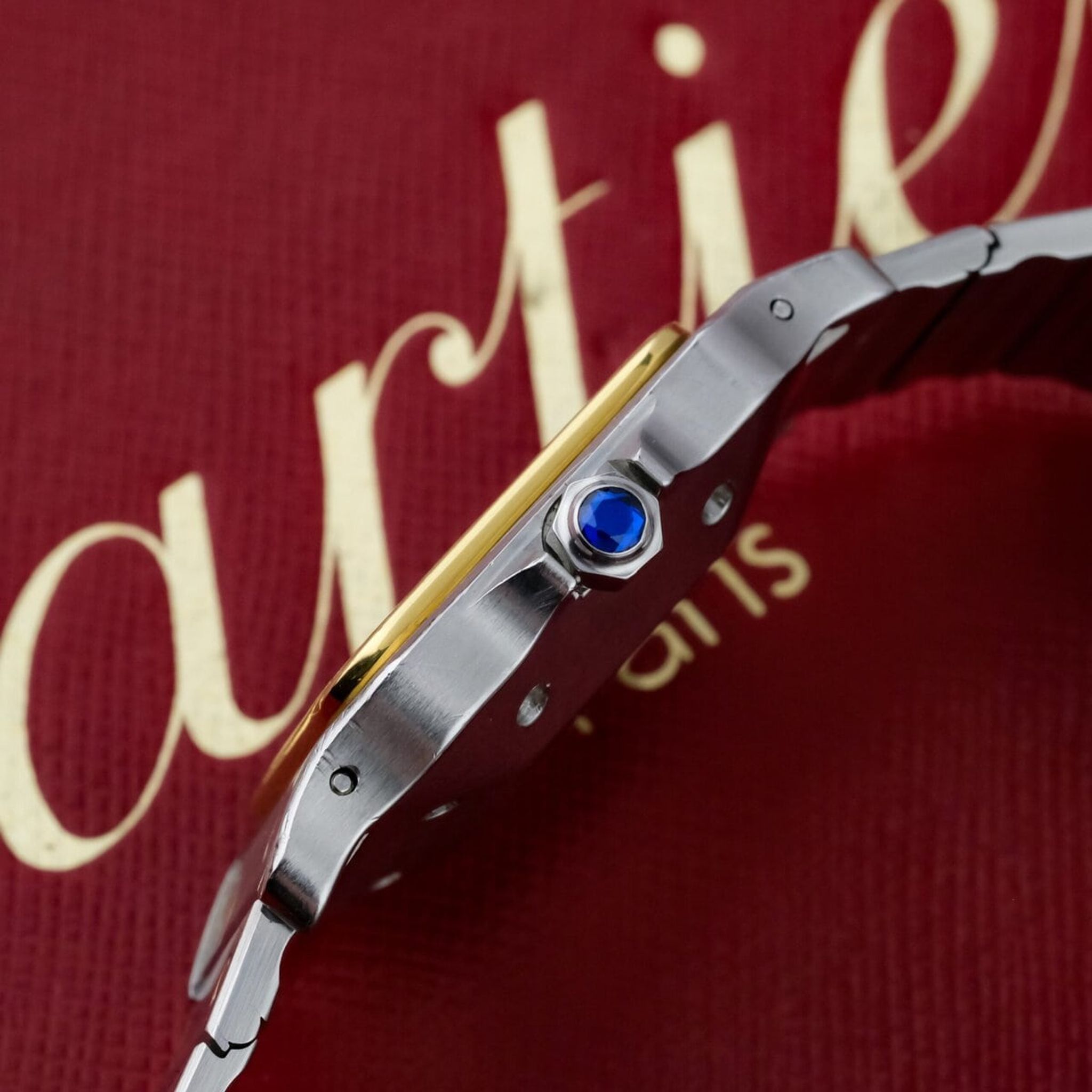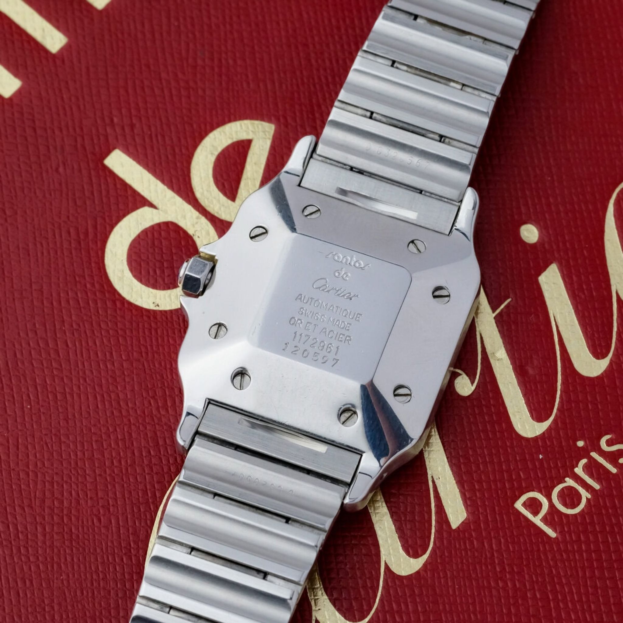 Presented in good overall condition with minimal signs of wear, the engravings on the caseback remain crisp and clearly legible. This Santos Carrée GM represents a timeless and versatile Cartier icon that blends elegance, functionality and unmistakable design heritage.