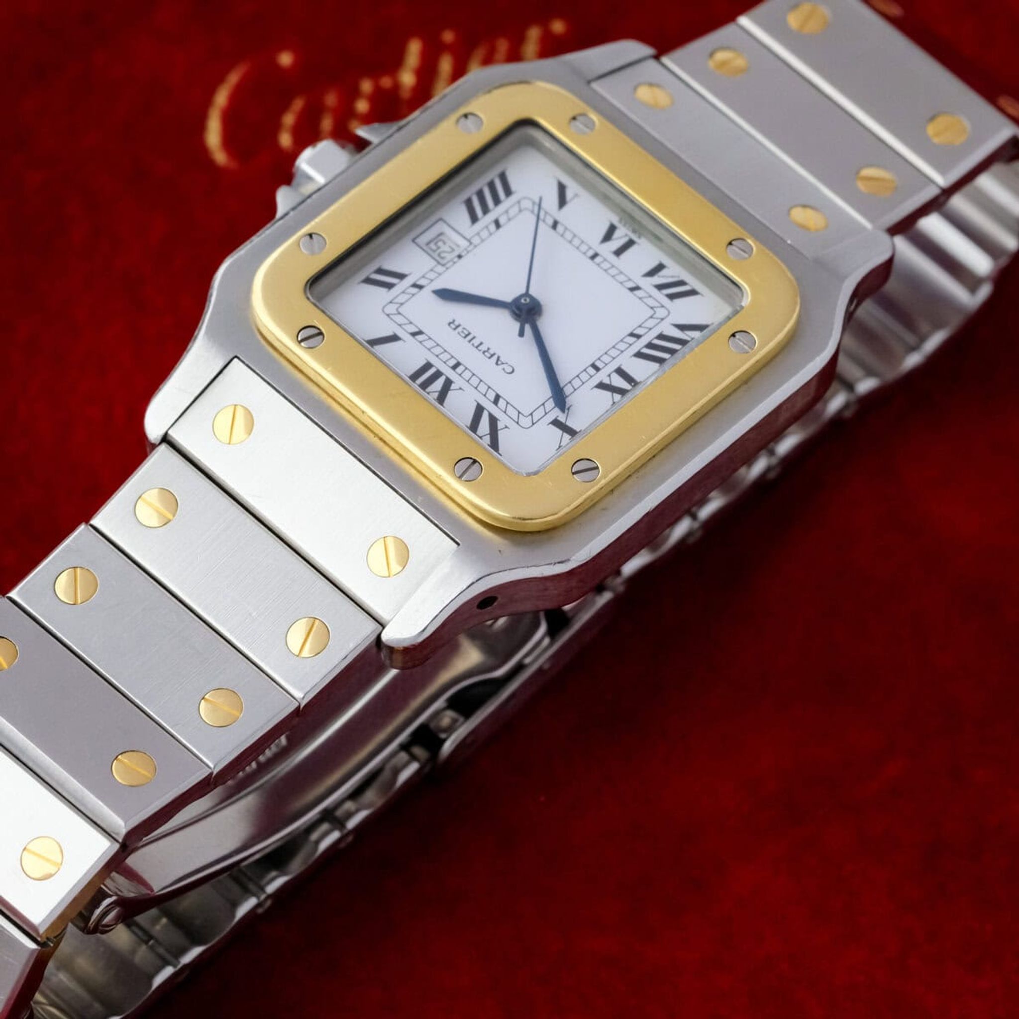 This Cartier Santos Carrée reference 2961 is a classic and nicely preserved example of one of Cartier’s most recognizable designs. Crafted in stainless steel and 18k yellow gold, the watch retains its original unpolished surfaces, displaying crisp transitions that highlight the precision of its construction.