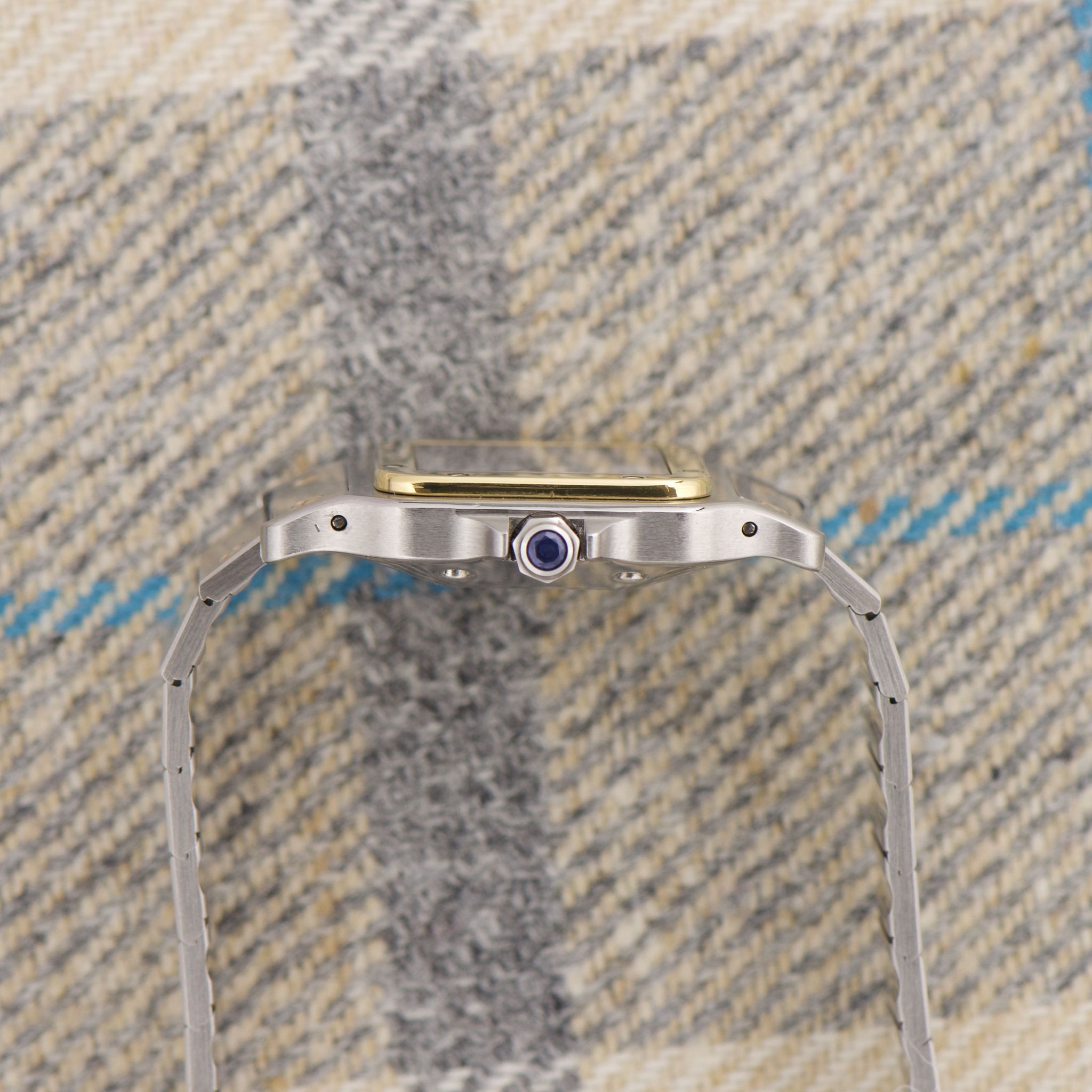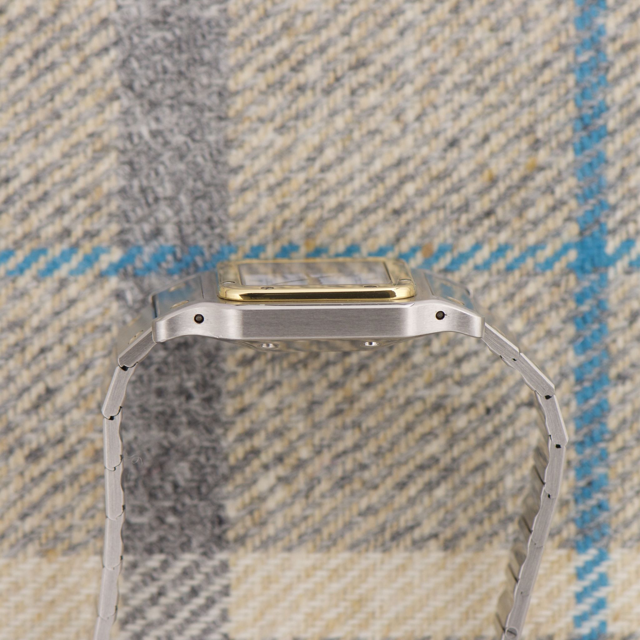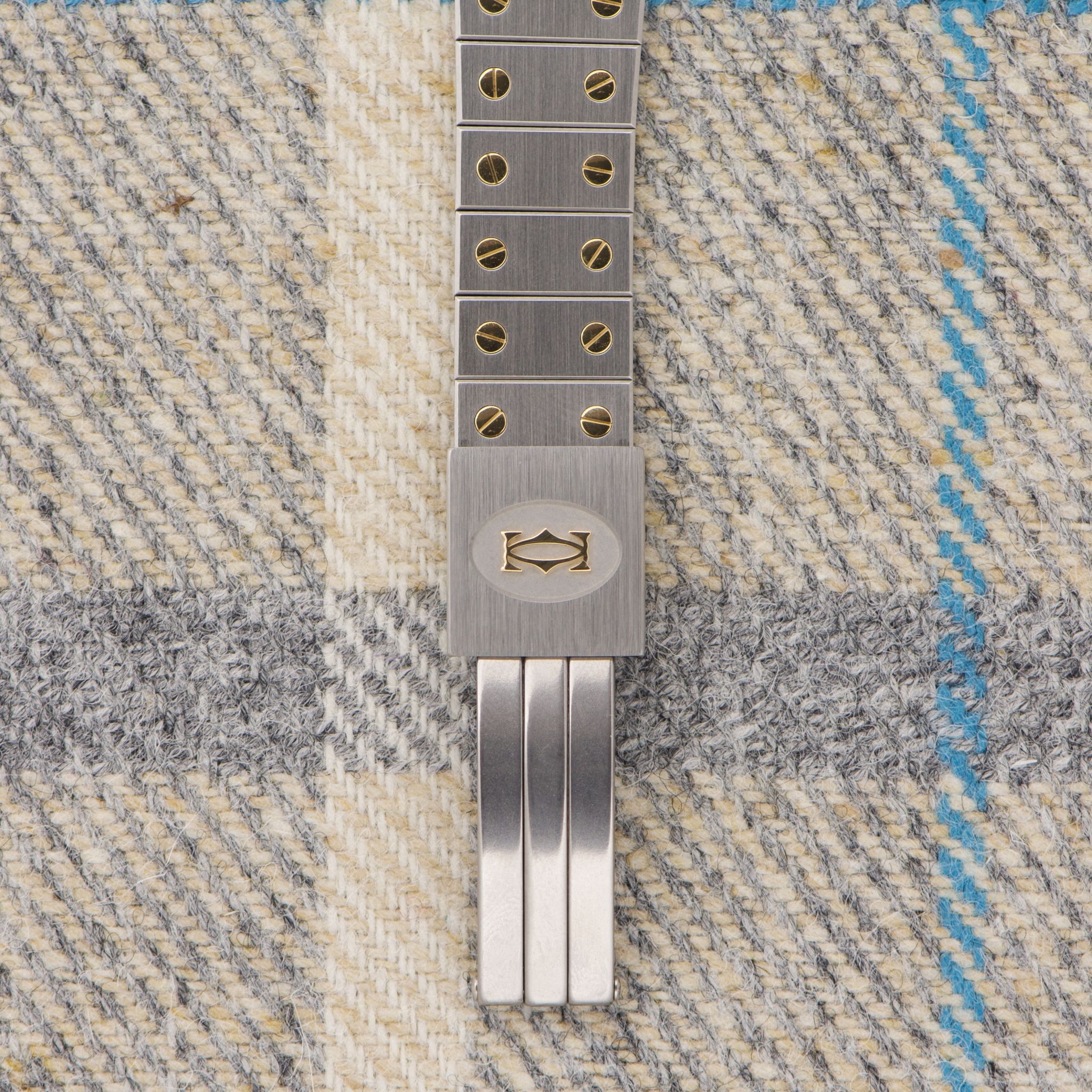 Case: The reference 2961 is the large two-tone Santos Carree with a fantastic 29mm case. The chamfers are nice and prominent. The lugs are still even and sharp. The yellow-gold bezel is clean and even.