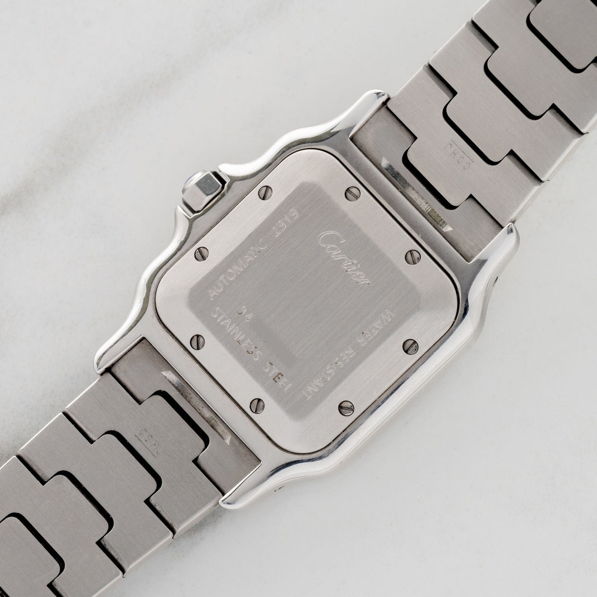 This particular example has remained in nice condition with a mint dial and clean looking case/bracelet. The bracelet will fit an approximate 7.25 inch wrist. The set includes inner and outer boxes, warranty papers, booklets and booklet holder. For anyone looking for an interesting and practical daily driver from Cartier this could be just the ticket.