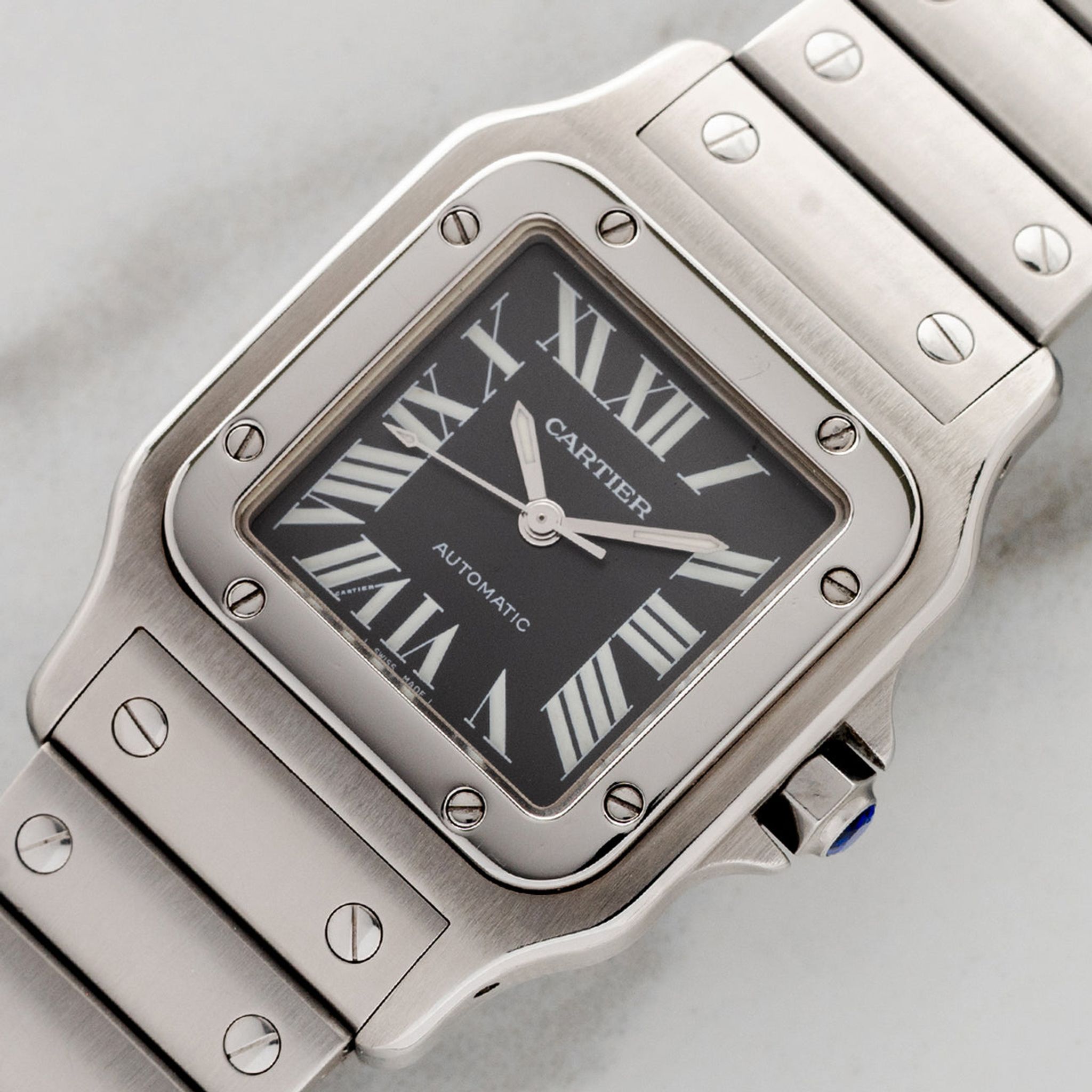 First released in the 70s, the Santos Carrée was Cartier's attempt to offer an accessible sport watch in both two tone (ref. 2961) and in steel (ref. 2960). At 29mm, the Carrée (square in French), case is perfectly sized to be the perfect blend of elegance and sporty. One might argue that today, more than ever, this model is the Rolex Datejust of Cartier. The Santos Galbée SIHH was released in 2002 in a Limited Edition of 2000 pieces for the SIHH tradeshow in Singapore. Interestingly, it is a unique dial variation which features fully lumed Roman Numeral indices/hand and the only Carrée to feature no date. Between the hidden clasp, slate grey dial with functioning lume and relatively limited production numbers, this is compelling offering from the Santos model line.