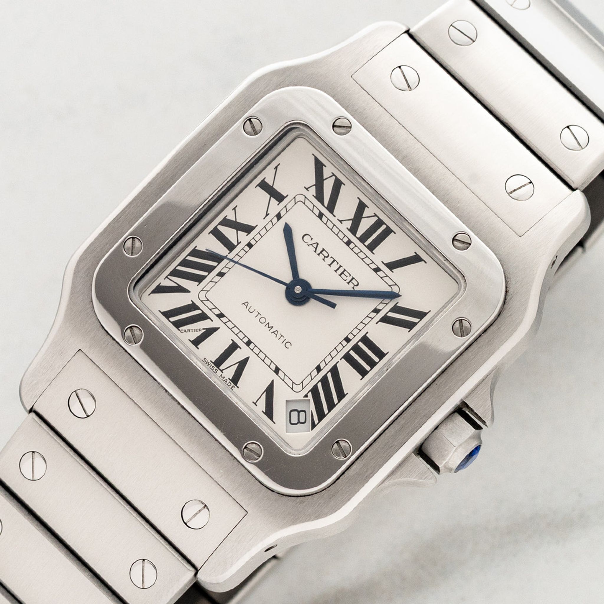 First released in the 70s, the Santos Carrée was Cartier's attempt to offer an accessible sport watch in both two-tone (ref. 2961) and in steel (ref. 2960). At 29mm, the Carrée (square in French) case is perfectly sized to strike a balance of elegance and sportiness. One might argue that today, more than ever, this model is the Rolex Datejust of Cartier. For anyone with a medium to larger sized wrist the ref. 2823 offers slightly boosted proportions at 32mm. Notably the date window also sits more discretely between the 4 & 5 o’clock indices. The bracelet also features a hidden clasp which, is a welcome addition to these modern examples.