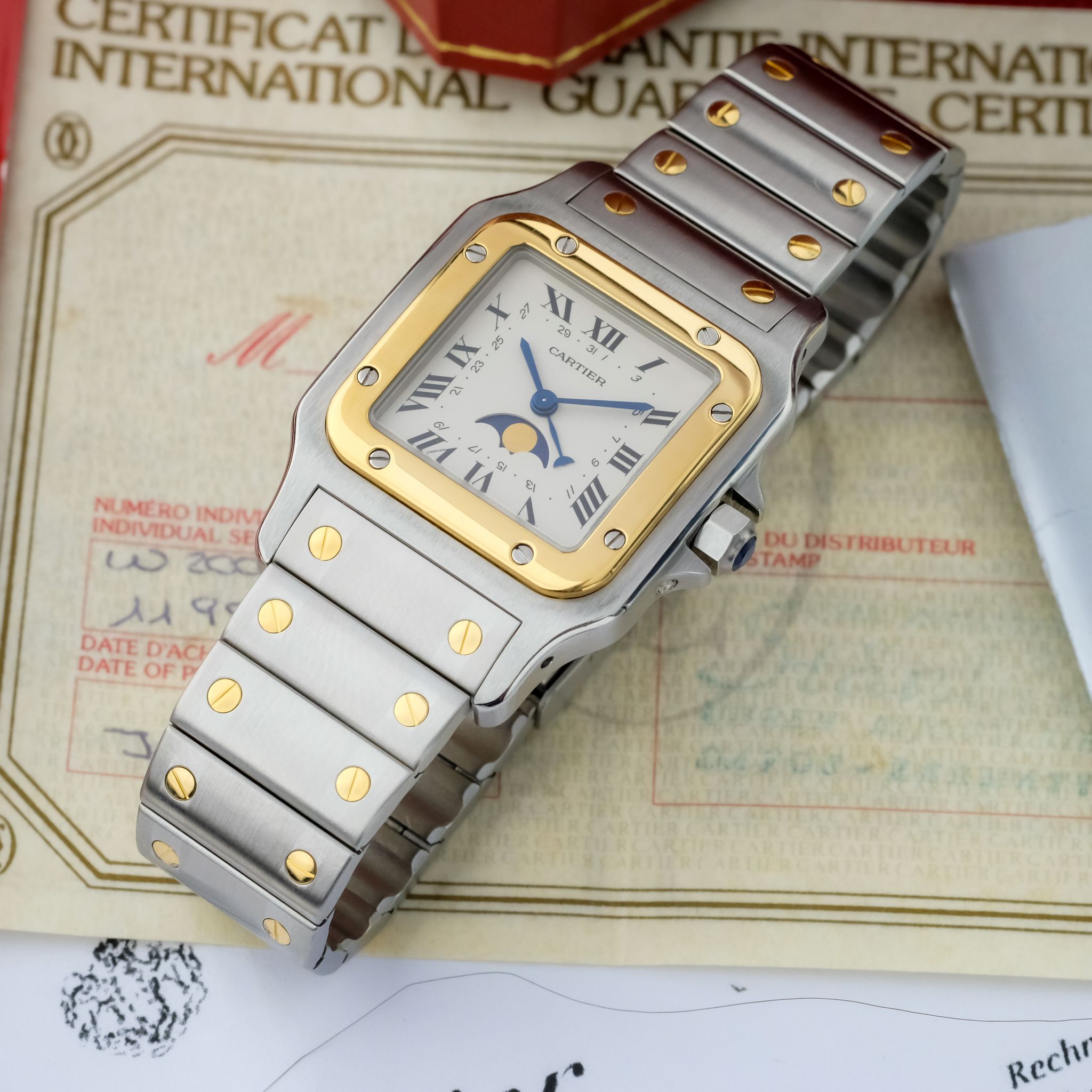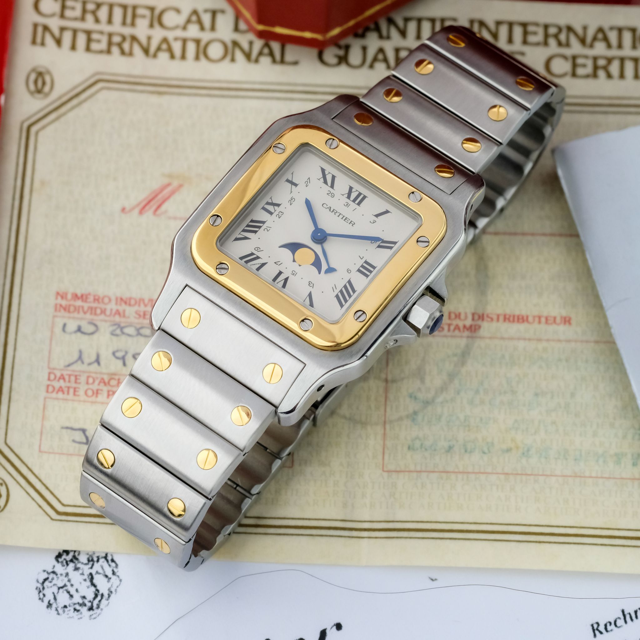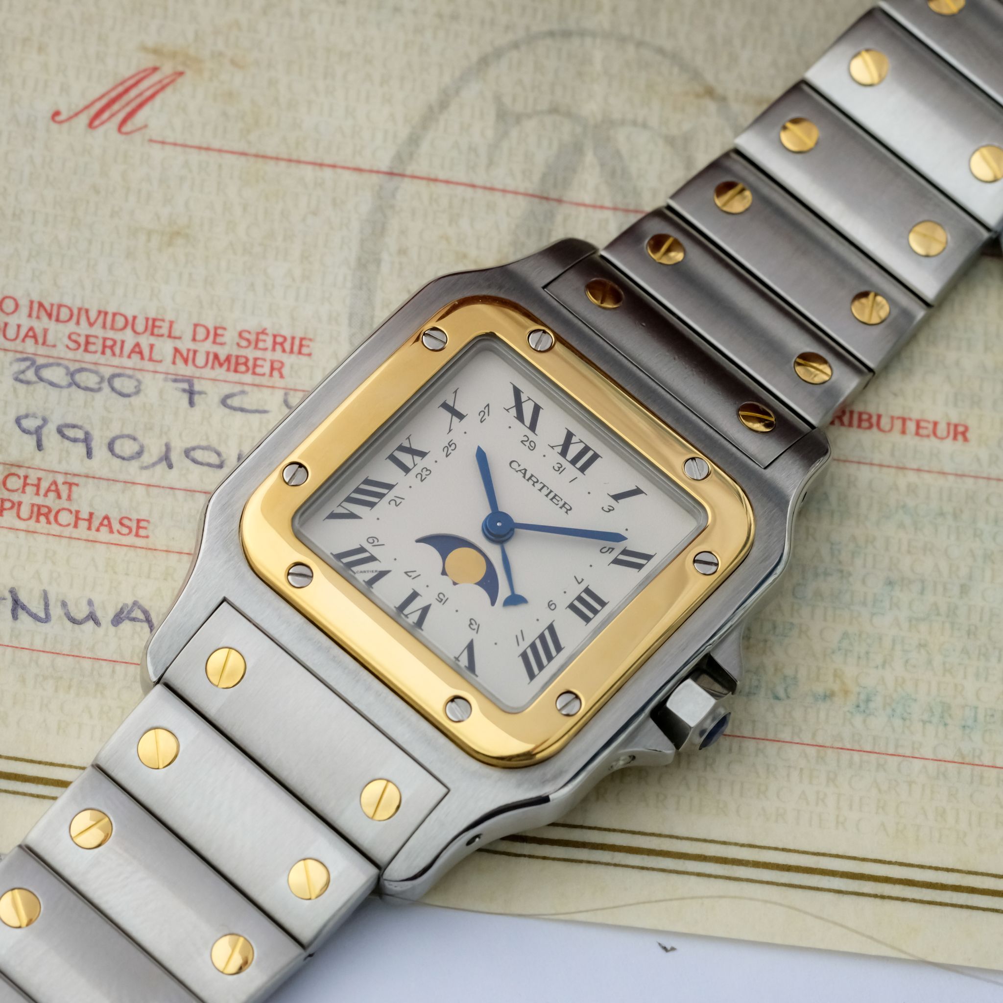 Beautiful Cartier Santos Galbée ref. 119901 "phase de lune" recently serviced by Cartier accompanied by the fullset.