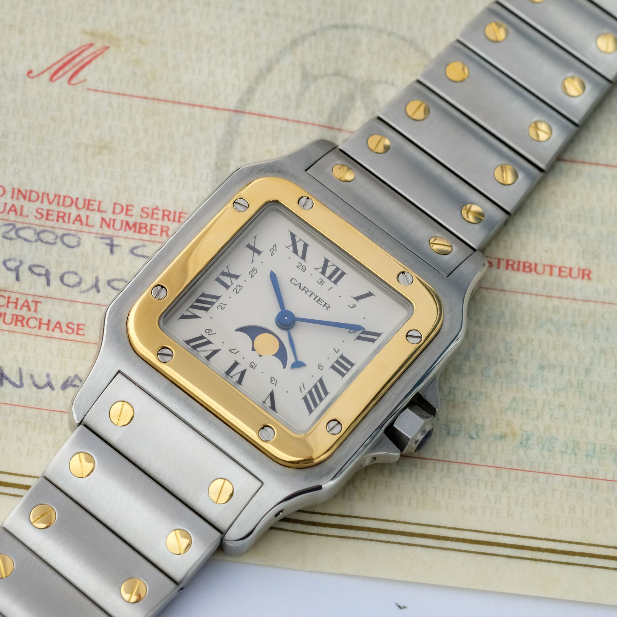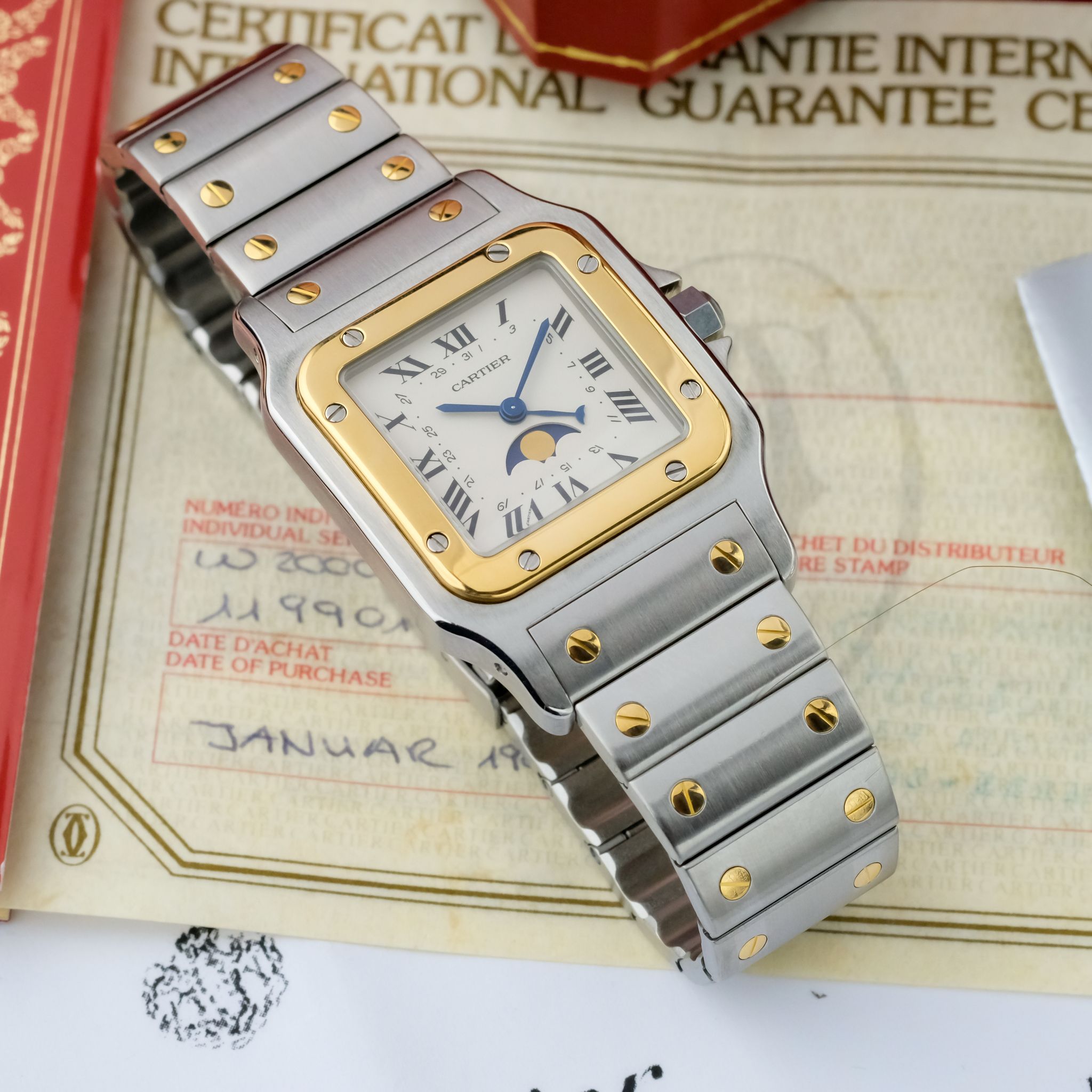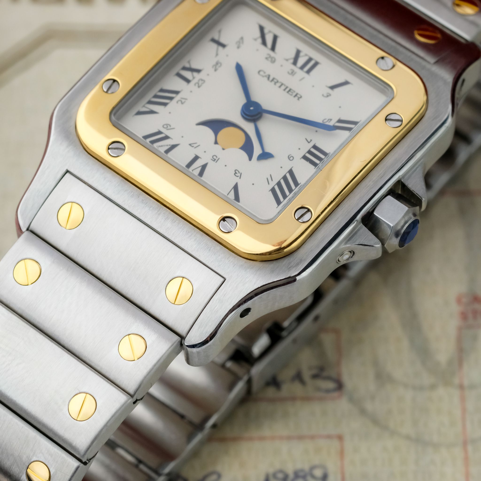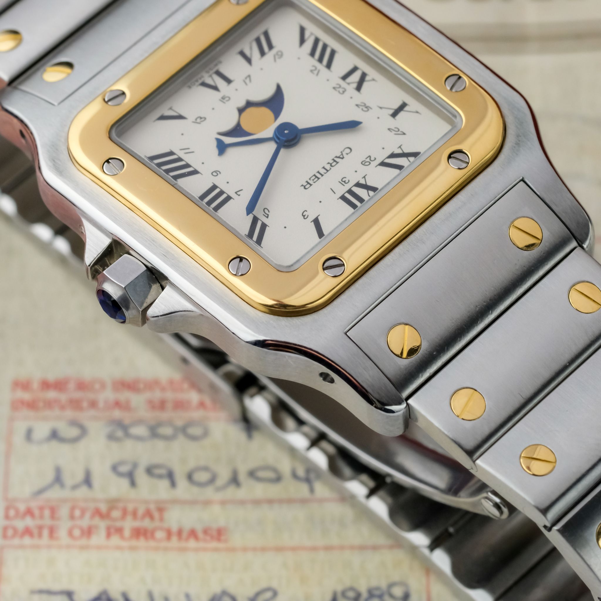 Beautiful Cartier Santos Galbée ref. 119901 "phase de lune" recently serviced by Cartier accompanied by the fullset.