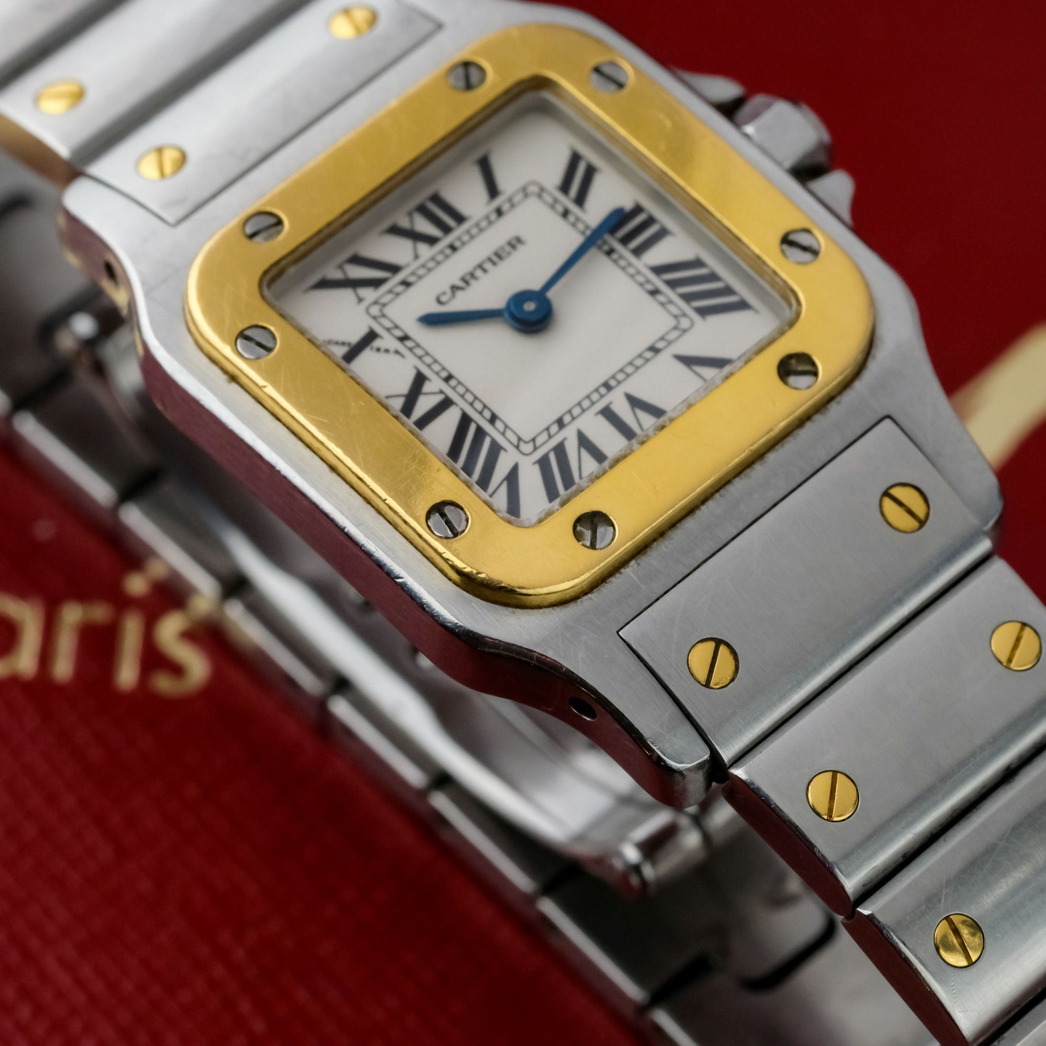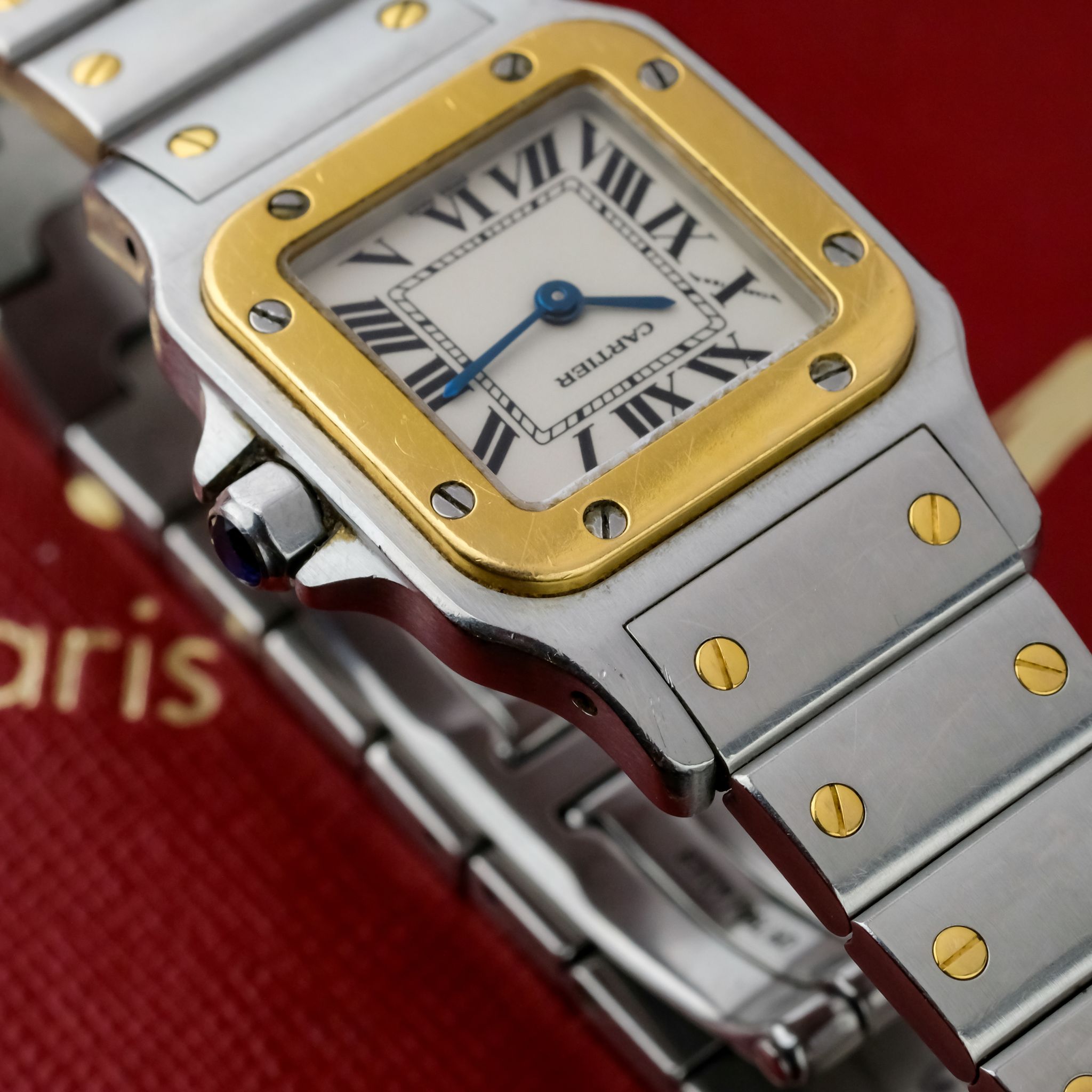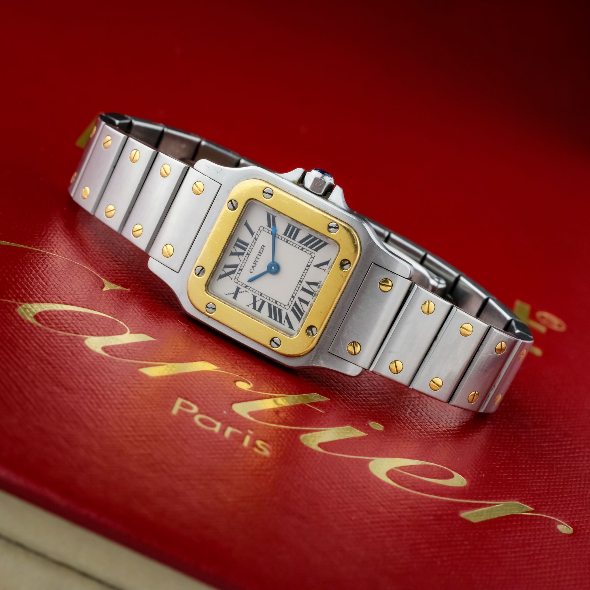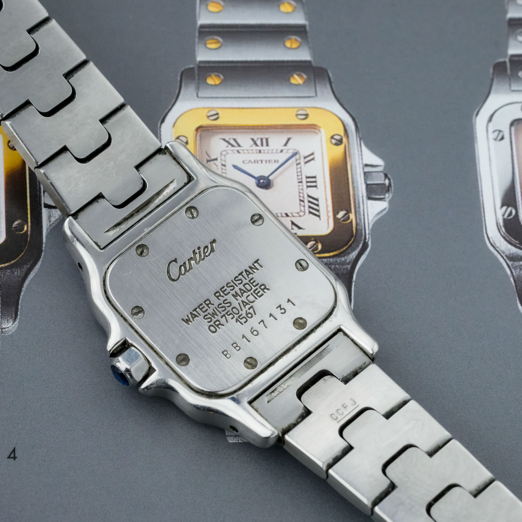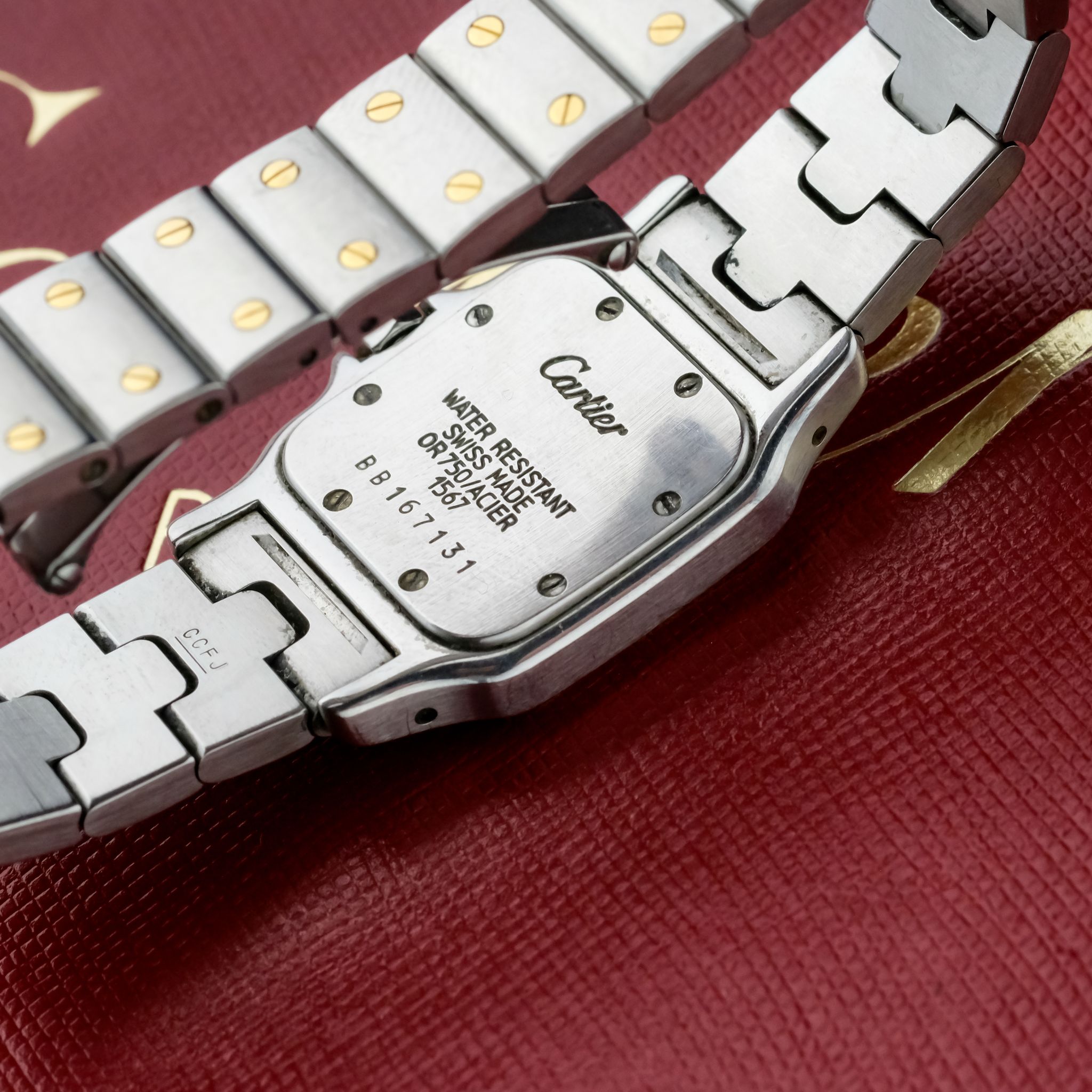 Beautiful Cartier Santos Galbée ladies model ref. 1567 with butterfly clasp and in unpolished state.