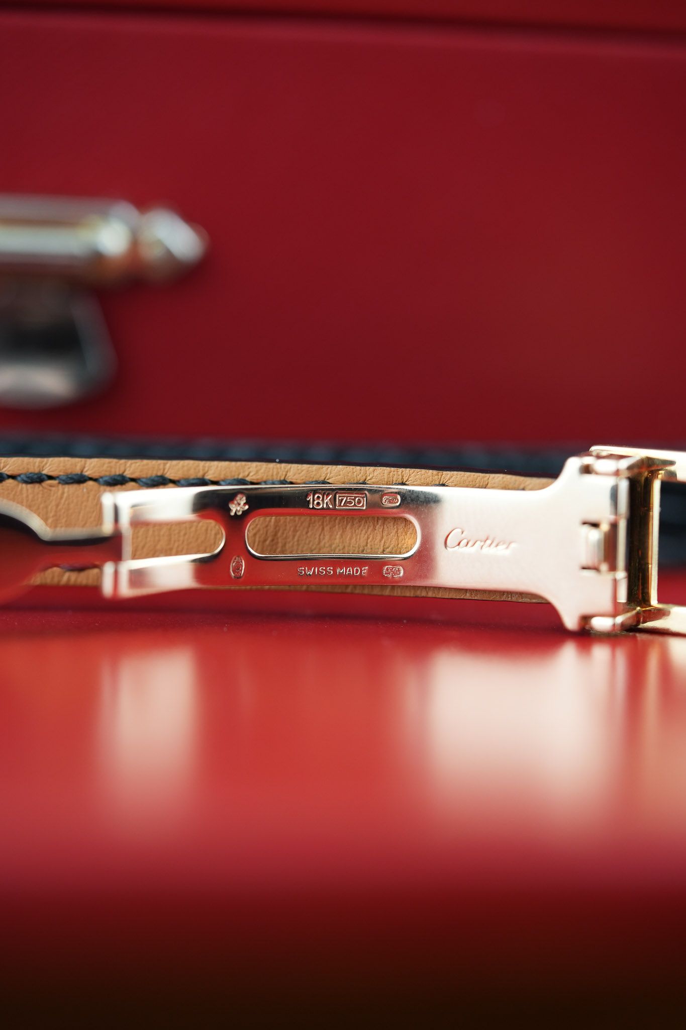 The white dial is clean and restrained, with Roman numerals and a subtle minute track that frames the design beautifully. The blued steel hands bring a touch of vibrancy, and the hidden Cartier signature at 7 o’clock is a reminder of the brand’s attention to detail. Inside, a reliable quartz movement keeps time effortlessly, so you can focus on enjoying the watch, not maintaining it.