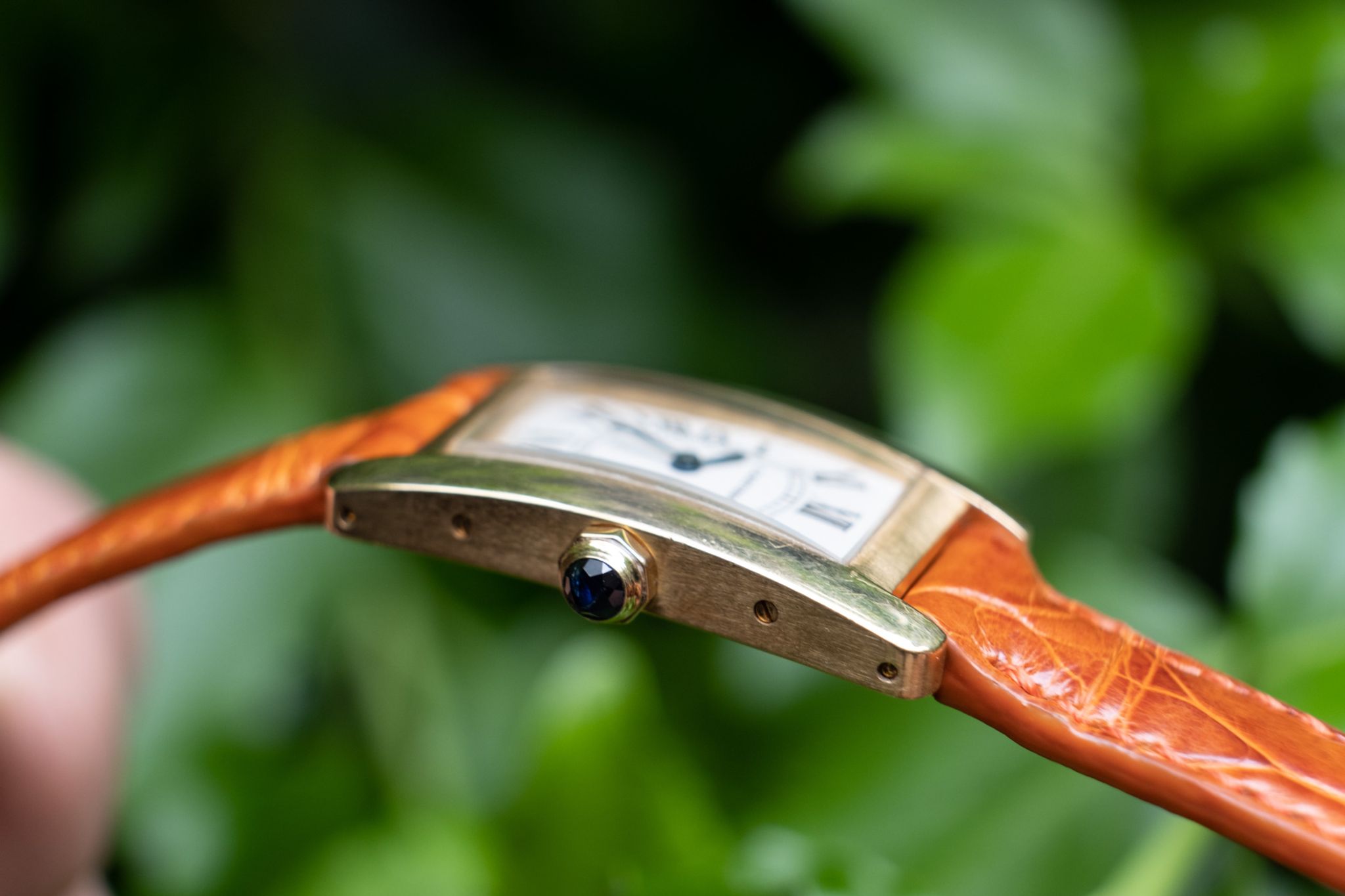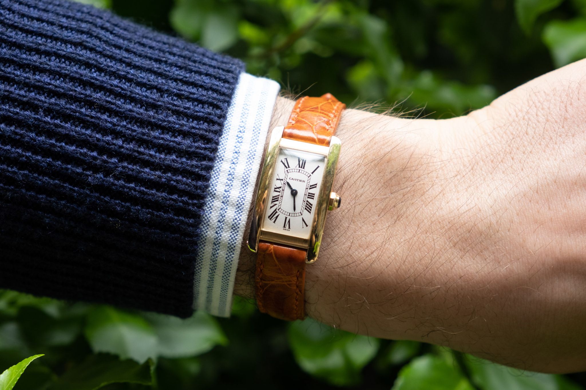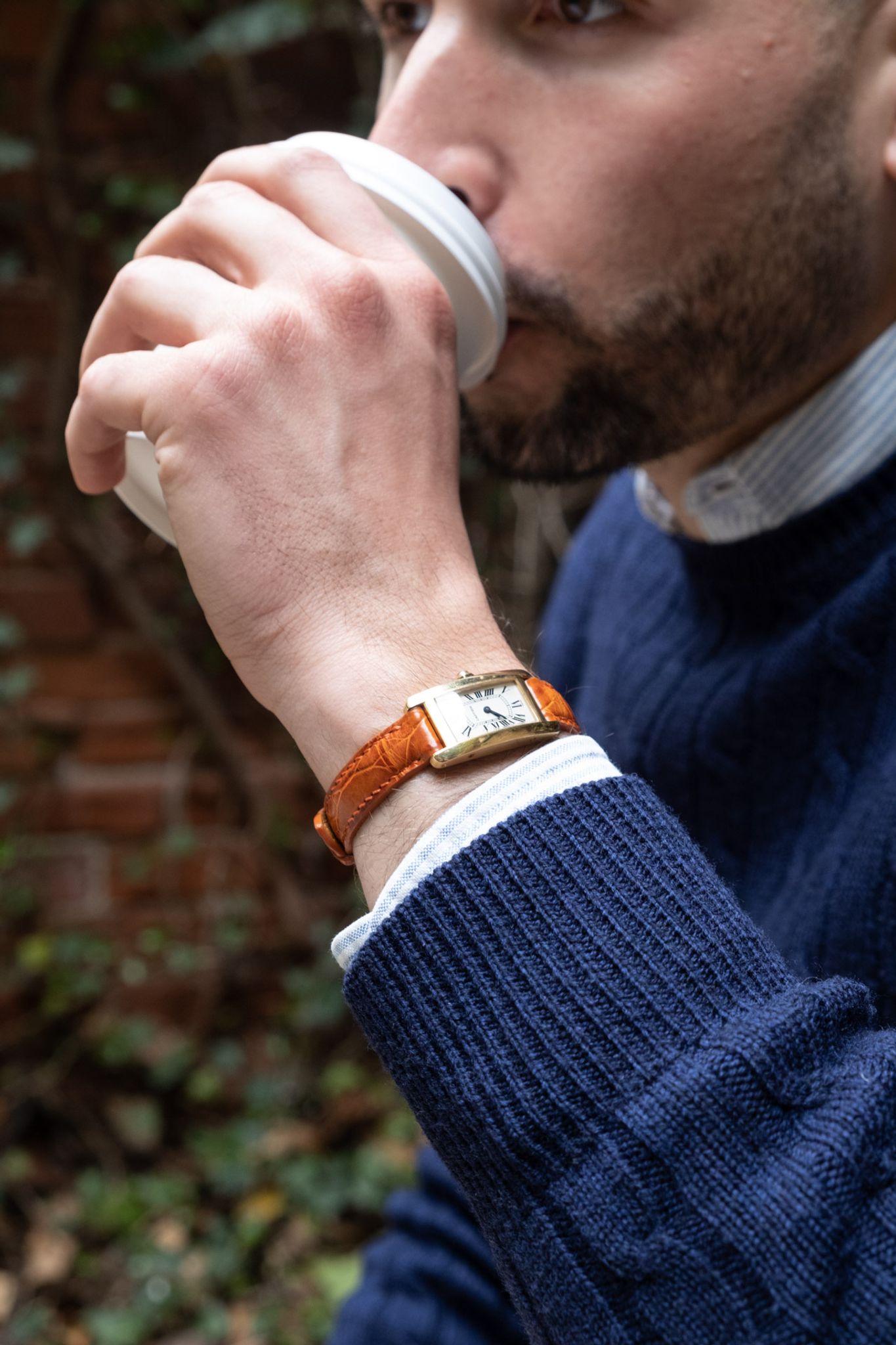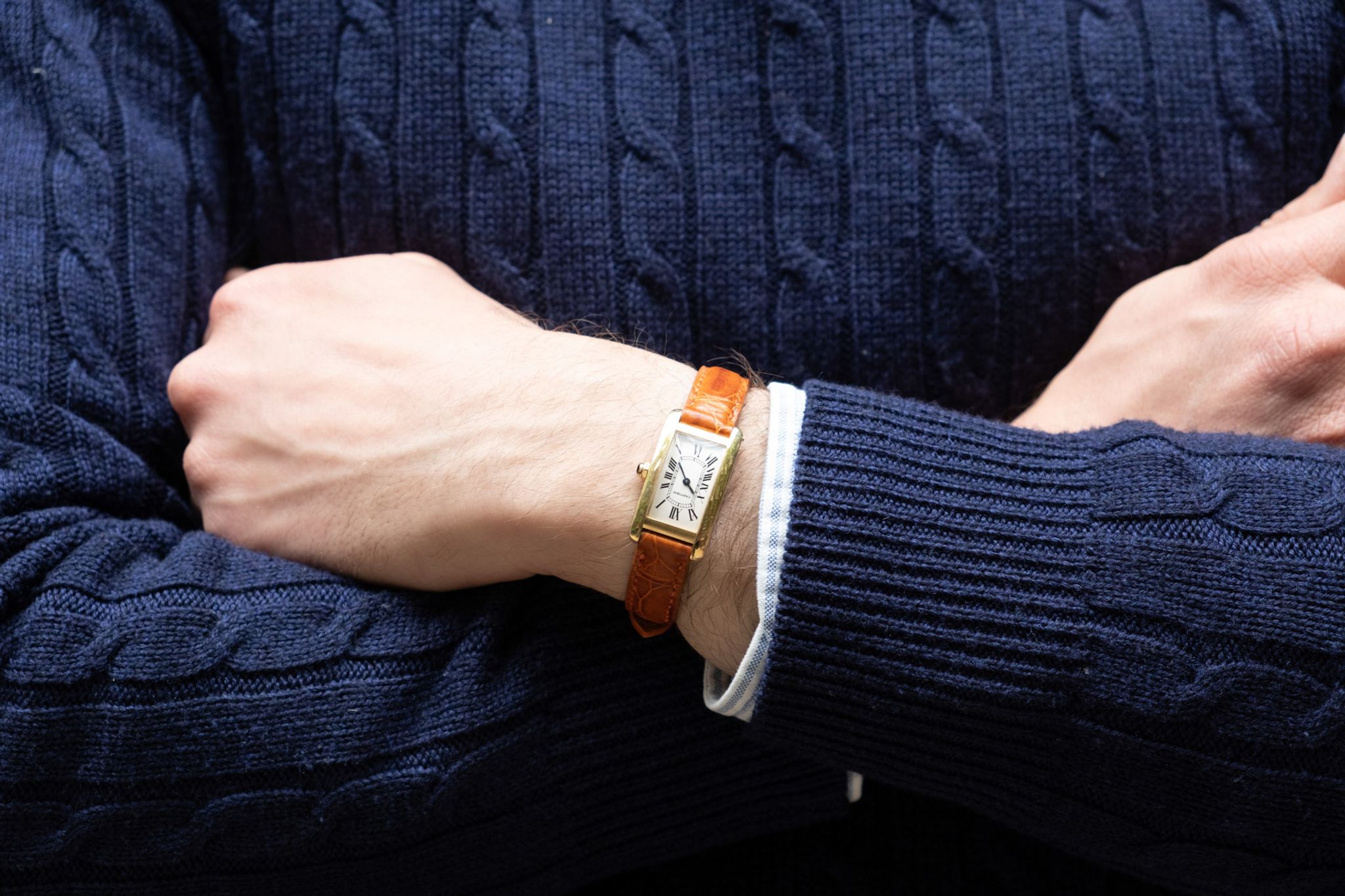 For me, the cognac alligator strap is what ties the knot. The contrast of colour adds a subtle pop and throw back to your favourite ivy league sweater. Overall, this Tank Americaine carries a strong value proposition - it's precious, it's versatile and it gives you a Cintrée-like design for one fifth of its price. It's the perfect small gold watch.