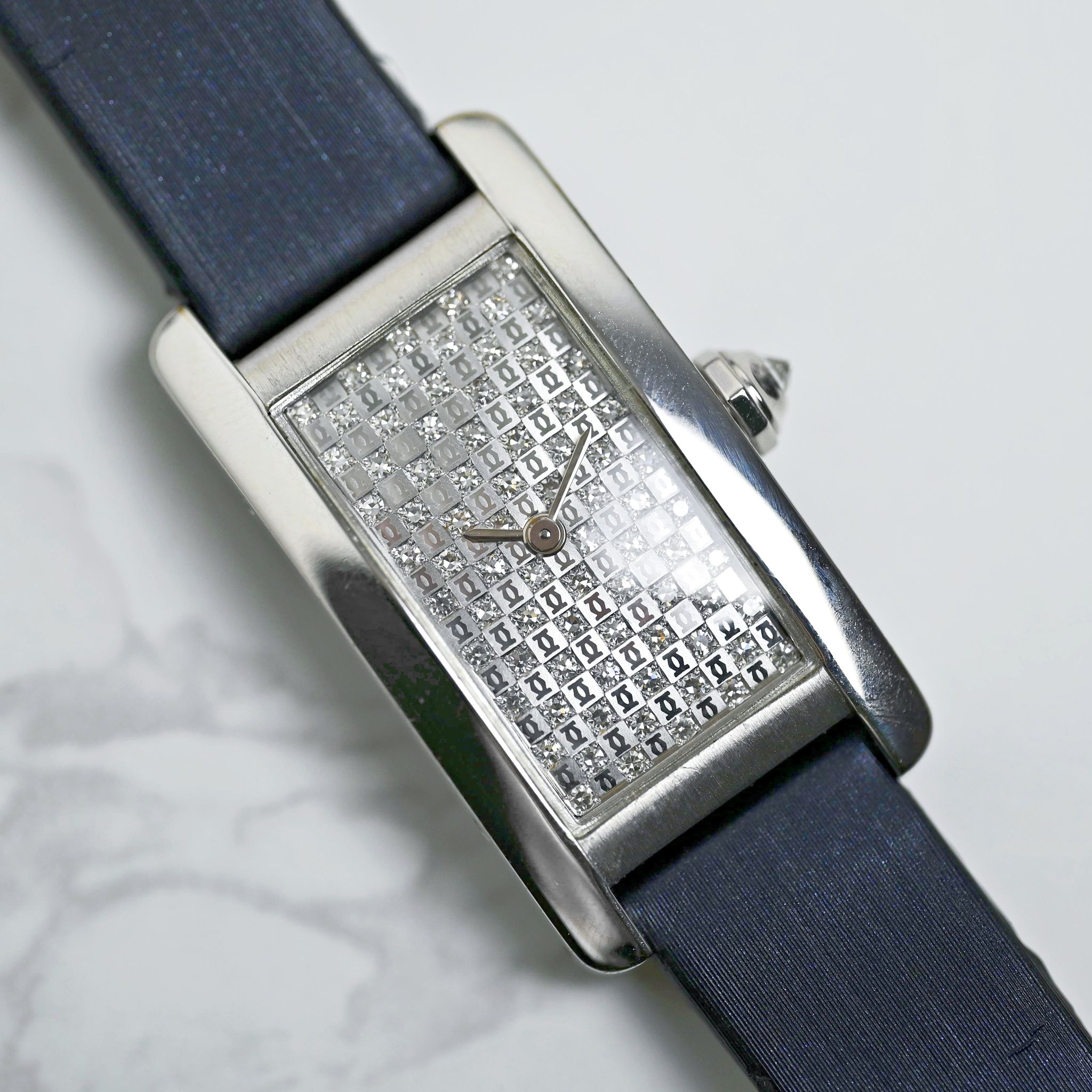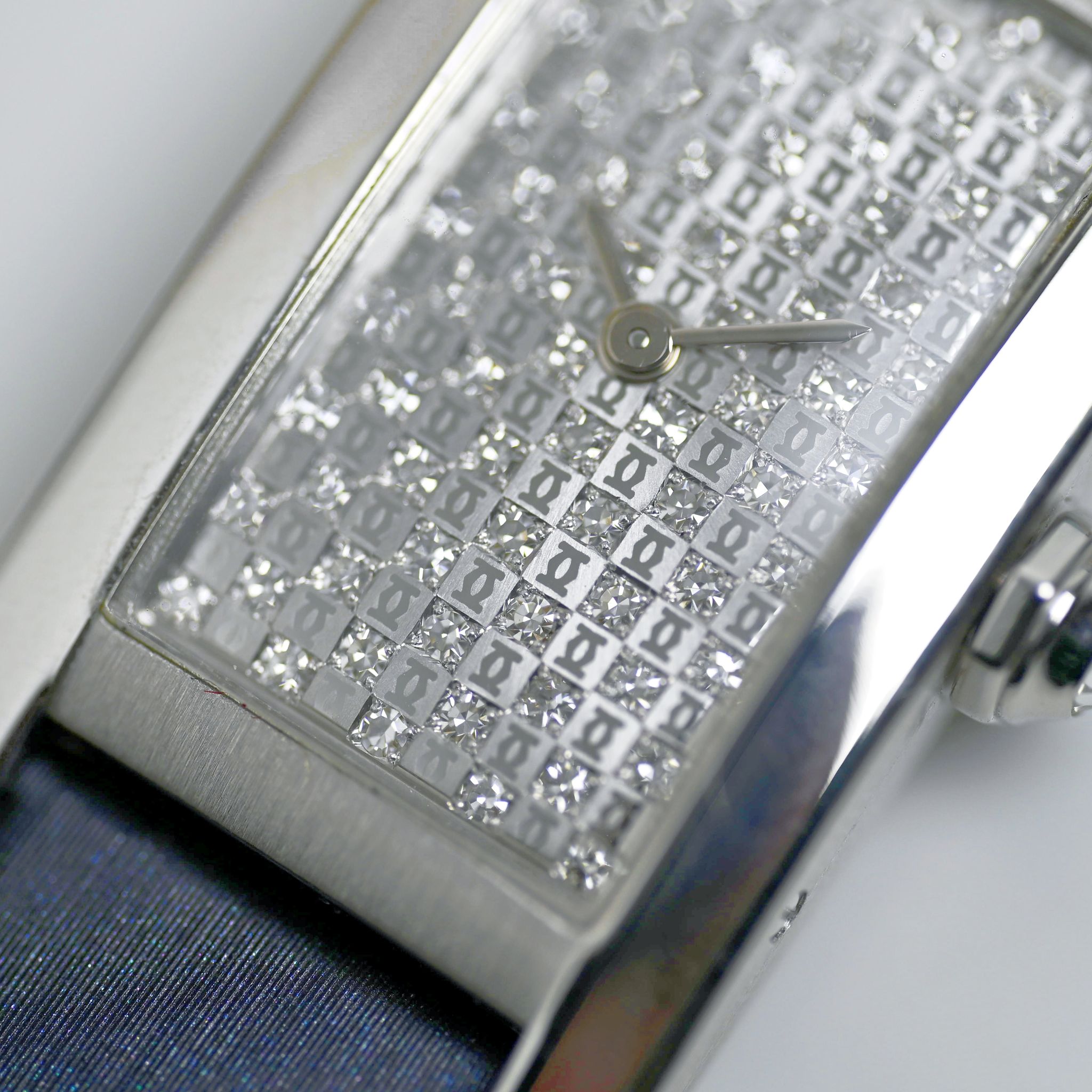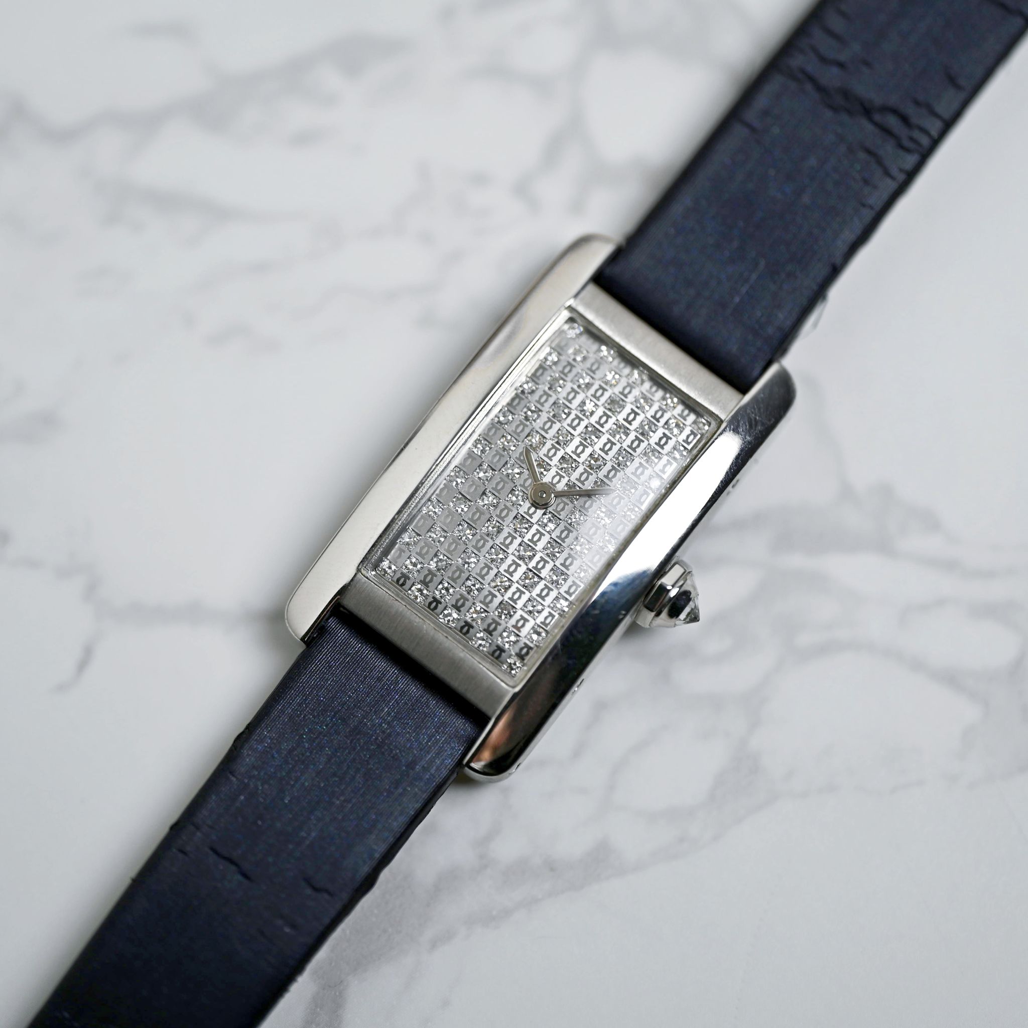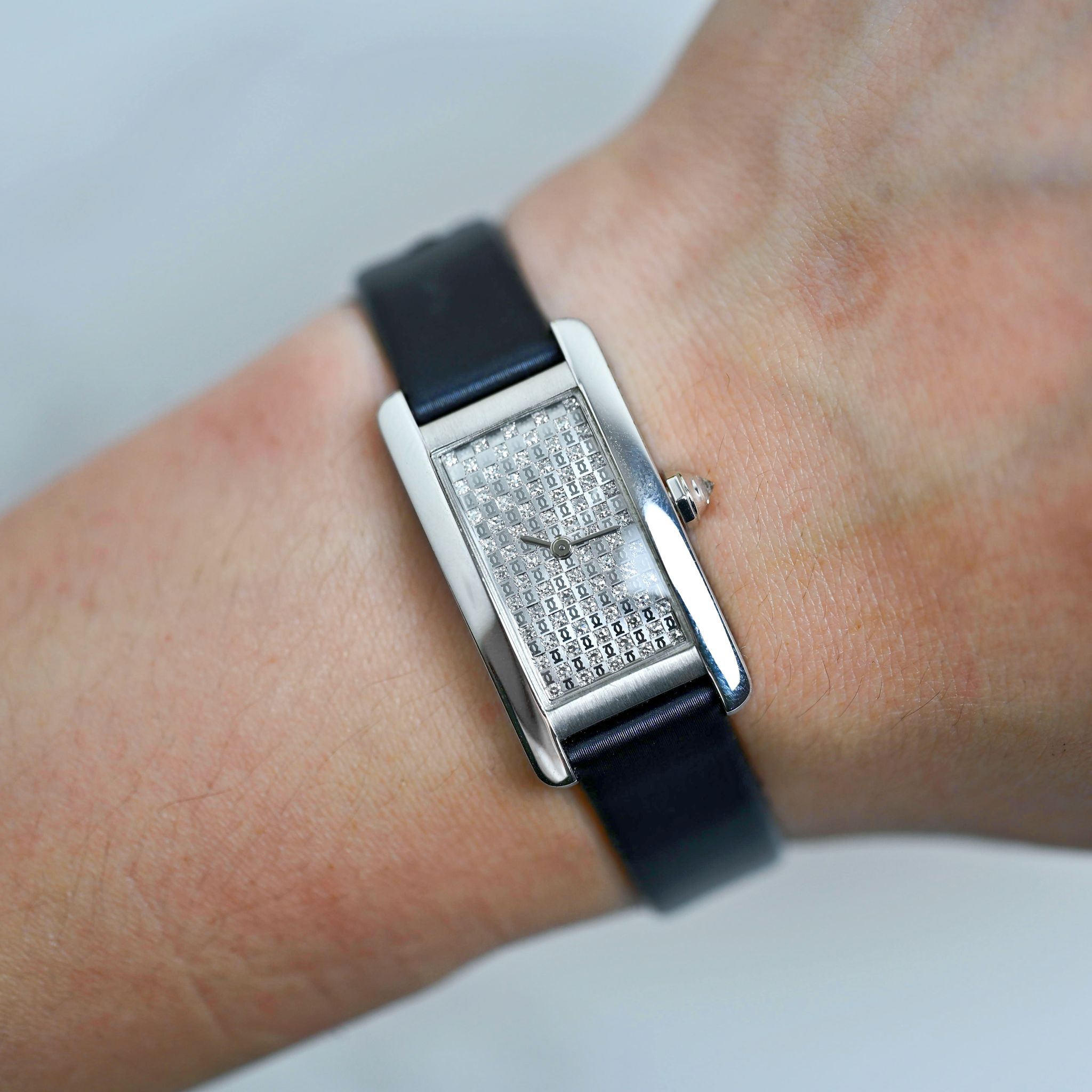 Dial: Excellent Condition surrounded with factory diamonds and Cartier logo along with matching hands