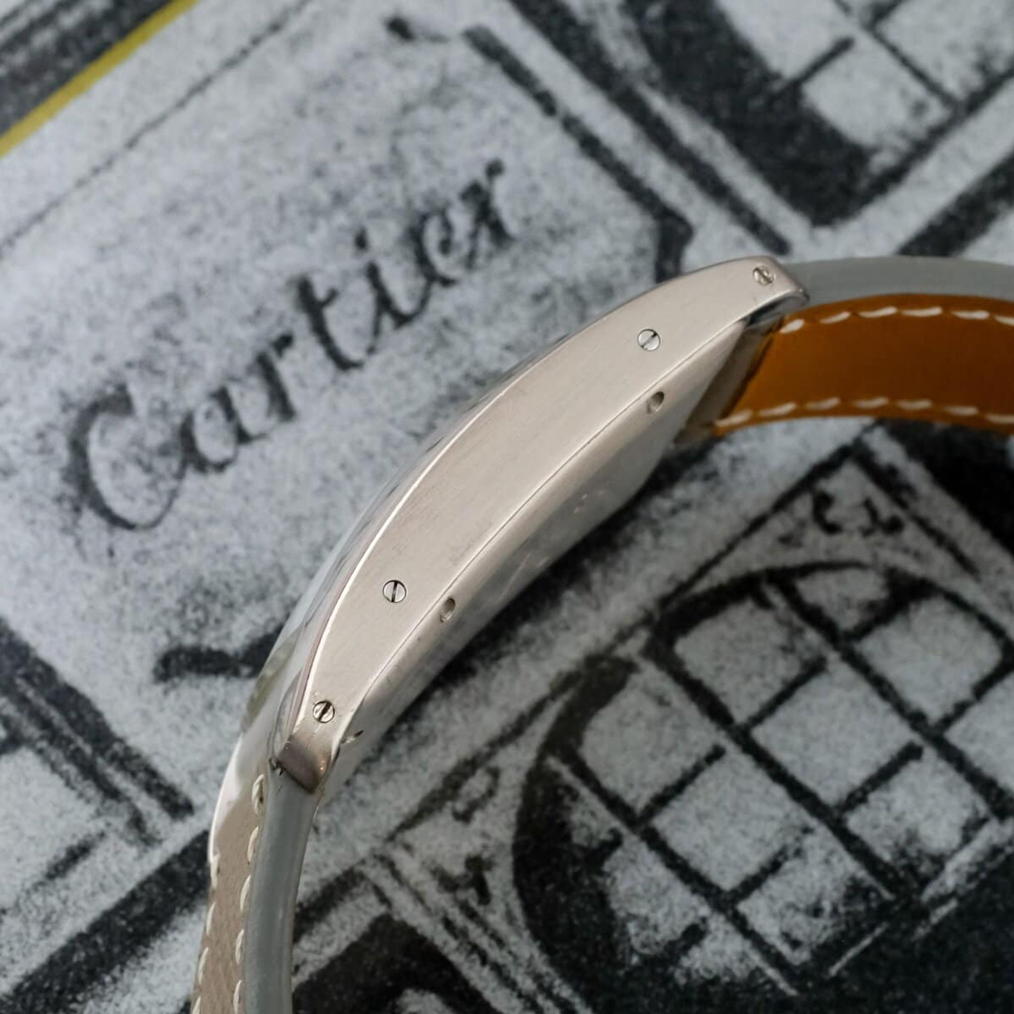 The white dial displays Cartier’s signature Roman numerals, blued steel hands and a chemin de fer minute track, creating a timeless and harmonious aesthetic. The automatic movement is in good technical condition, running reliably and reflecting Cartier’s commitment to precision and craftsmanship.