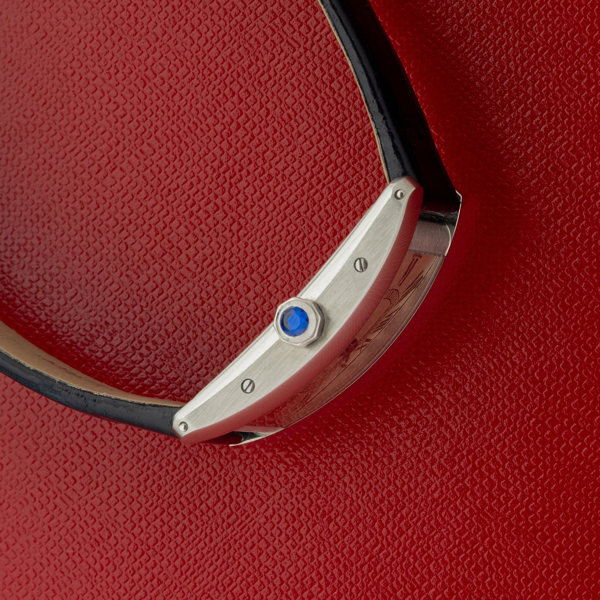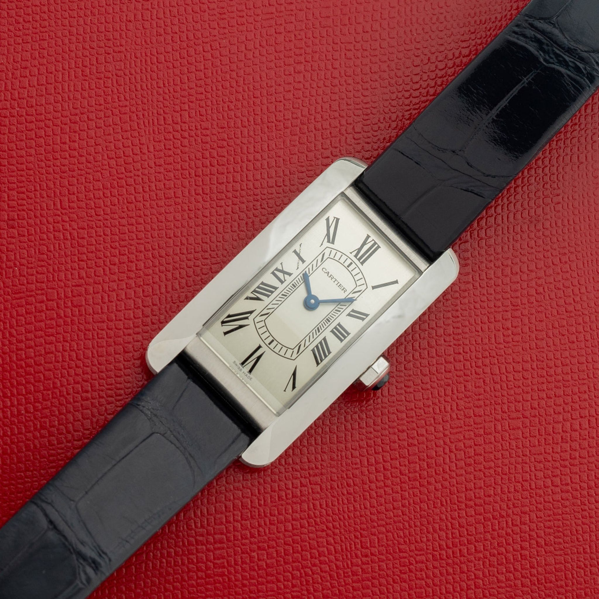 Cartier released the Tank Américaine in 1987 in reference to the Tank Cintrée which was first introduced commercially in 1919. Both are elongated shapes with curved cases that are designed to be contoured to the wrist and anyone who experiences this design should agree its not only gorgeous but extremely comfortable. This particular example, circa 2024 features a quartz movement making it perfect for daily wear. This small version is the most elegant in our opinion and works perfectly for average sized wrists.