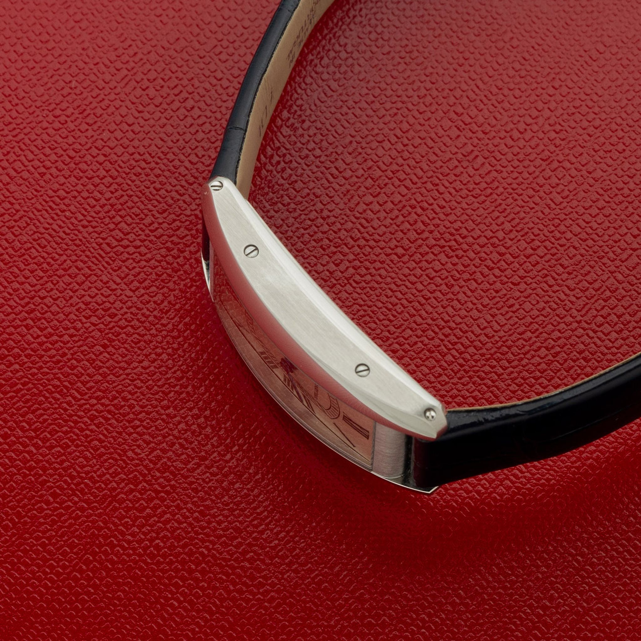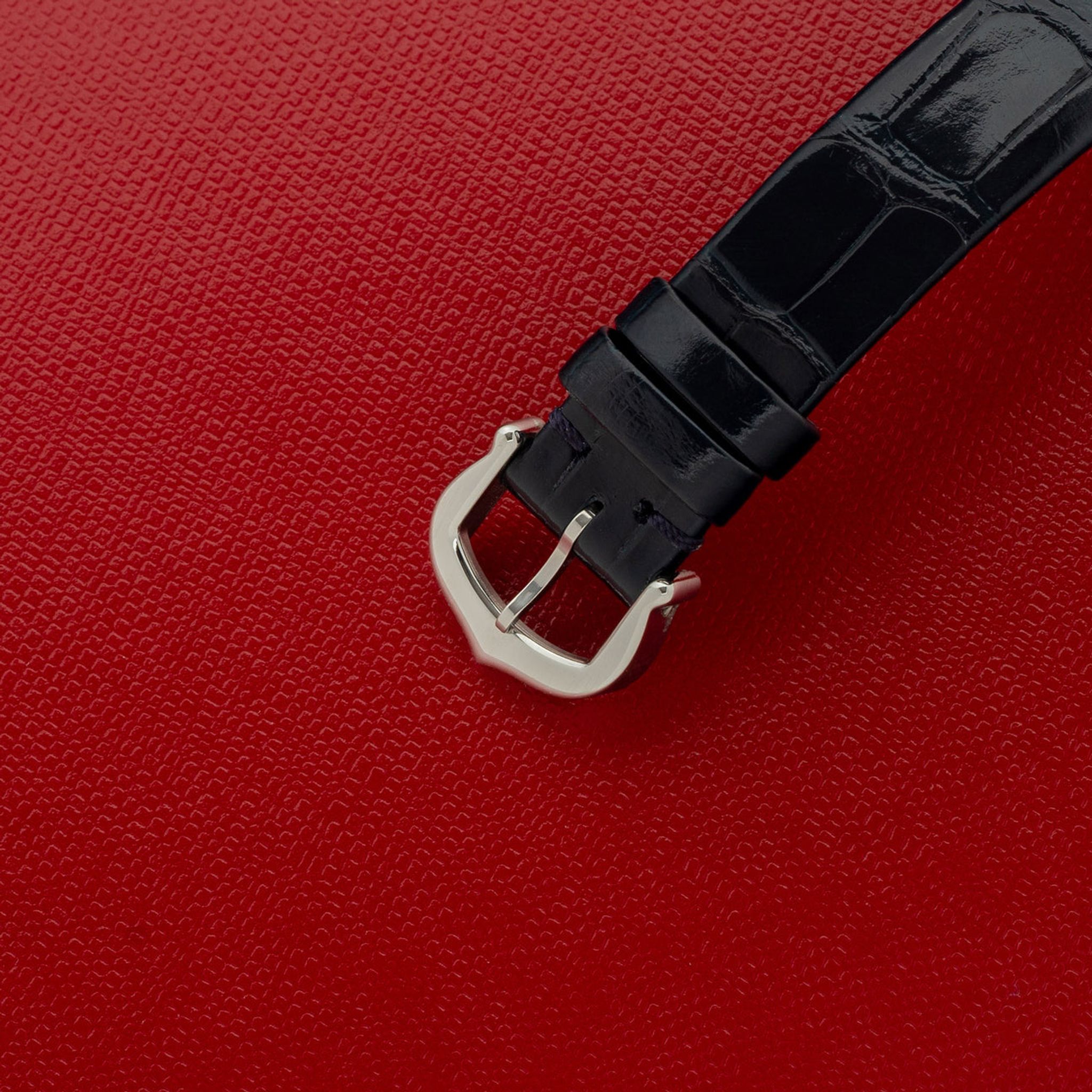 Bracelet: Original Cartier glossy gator strap in dark blue.