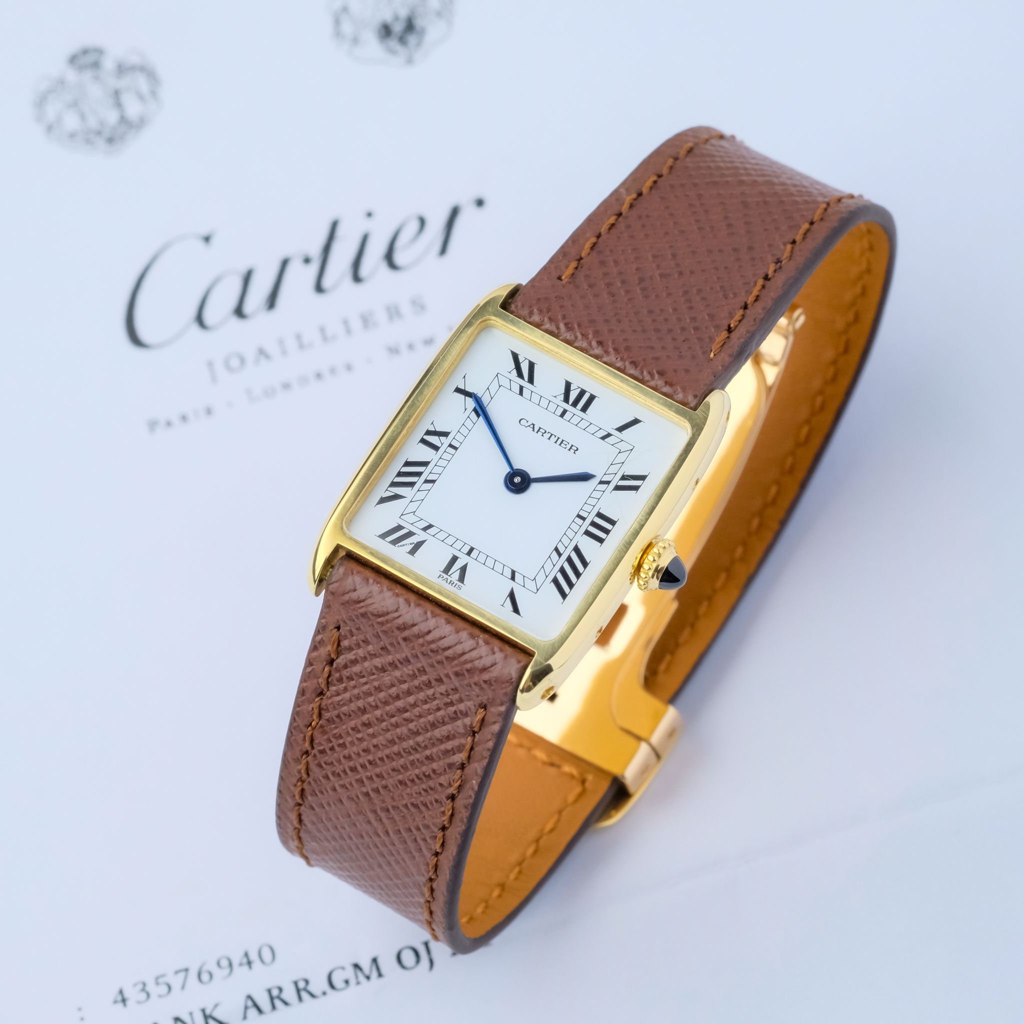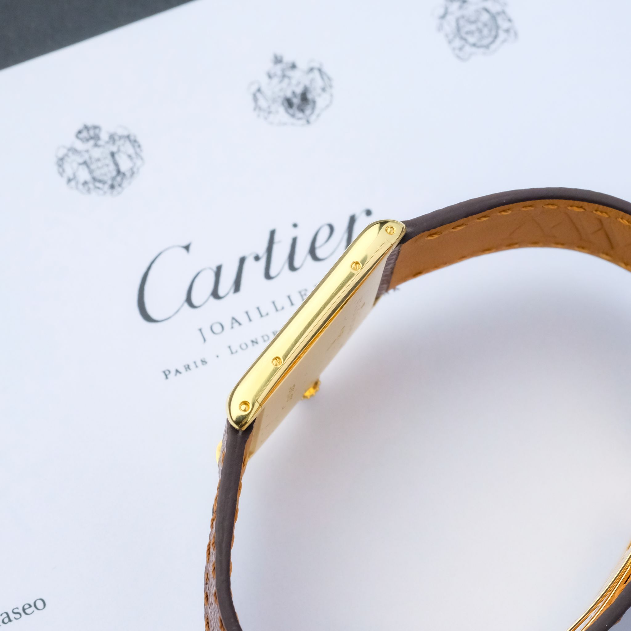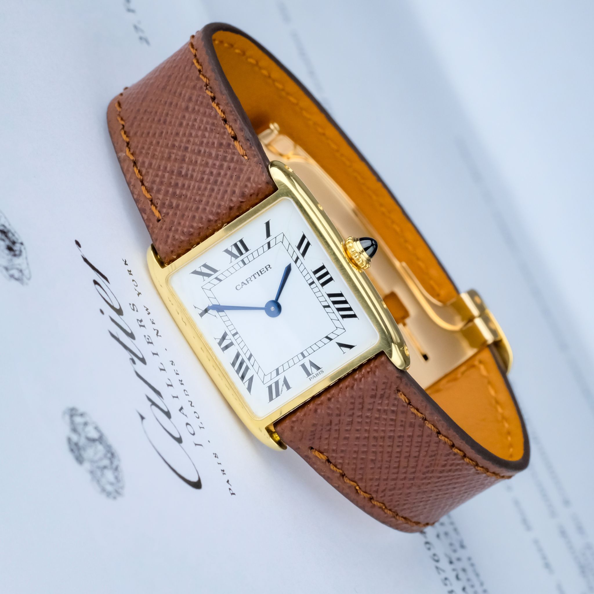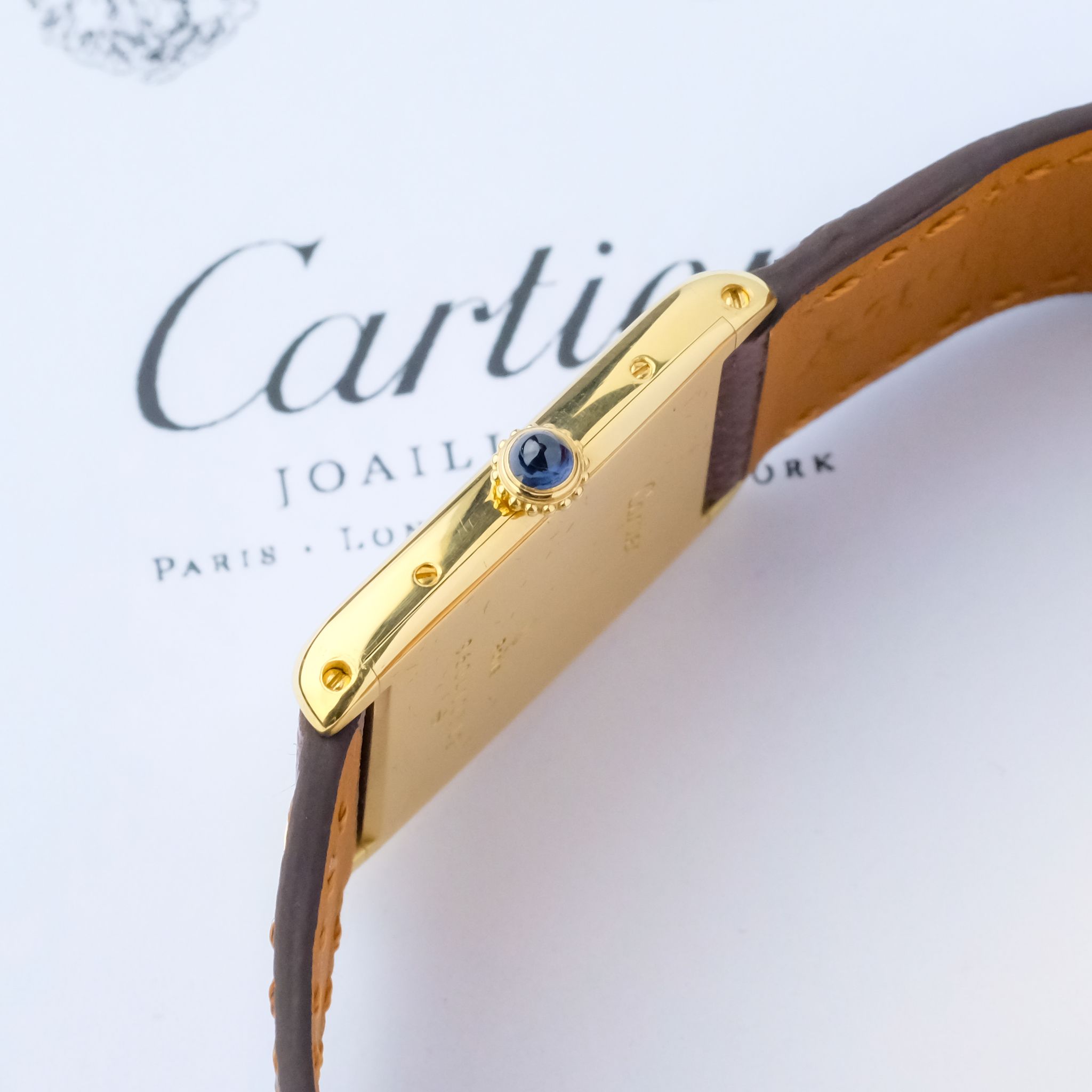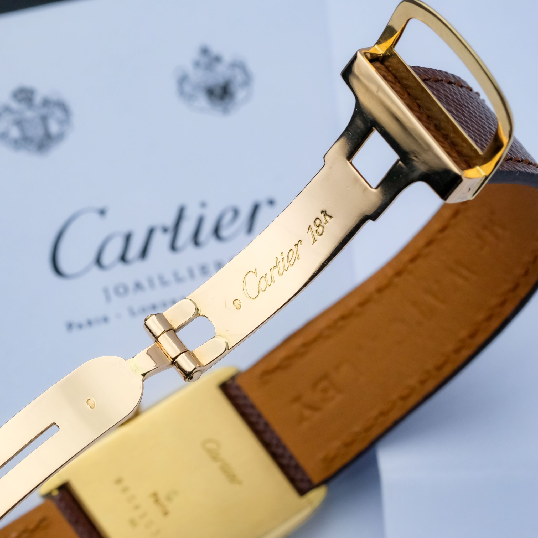 The Cartier Tank Arrondie ref. 96041 extra plate features the same ultra thin caliber F. Piguet 21 as the beloved Cartier Tank Louis models and has slightly more rounded edges as well as a thinner profile which makes it the perfect alternative to the Tank Louis. This very example is in lovely condition with the original “Paris” signed dial with only light patina, a great case with only very light polishing and no signs of wear and he original pre 1988 deployante clasp. It has been serviced at Cartier rather recently in October of 2024 and is therefor in technically perfect condition as well.