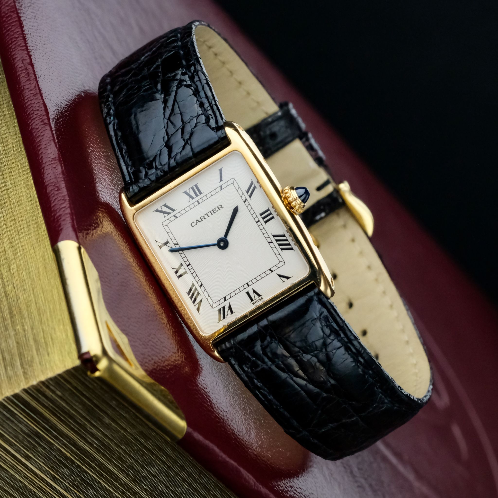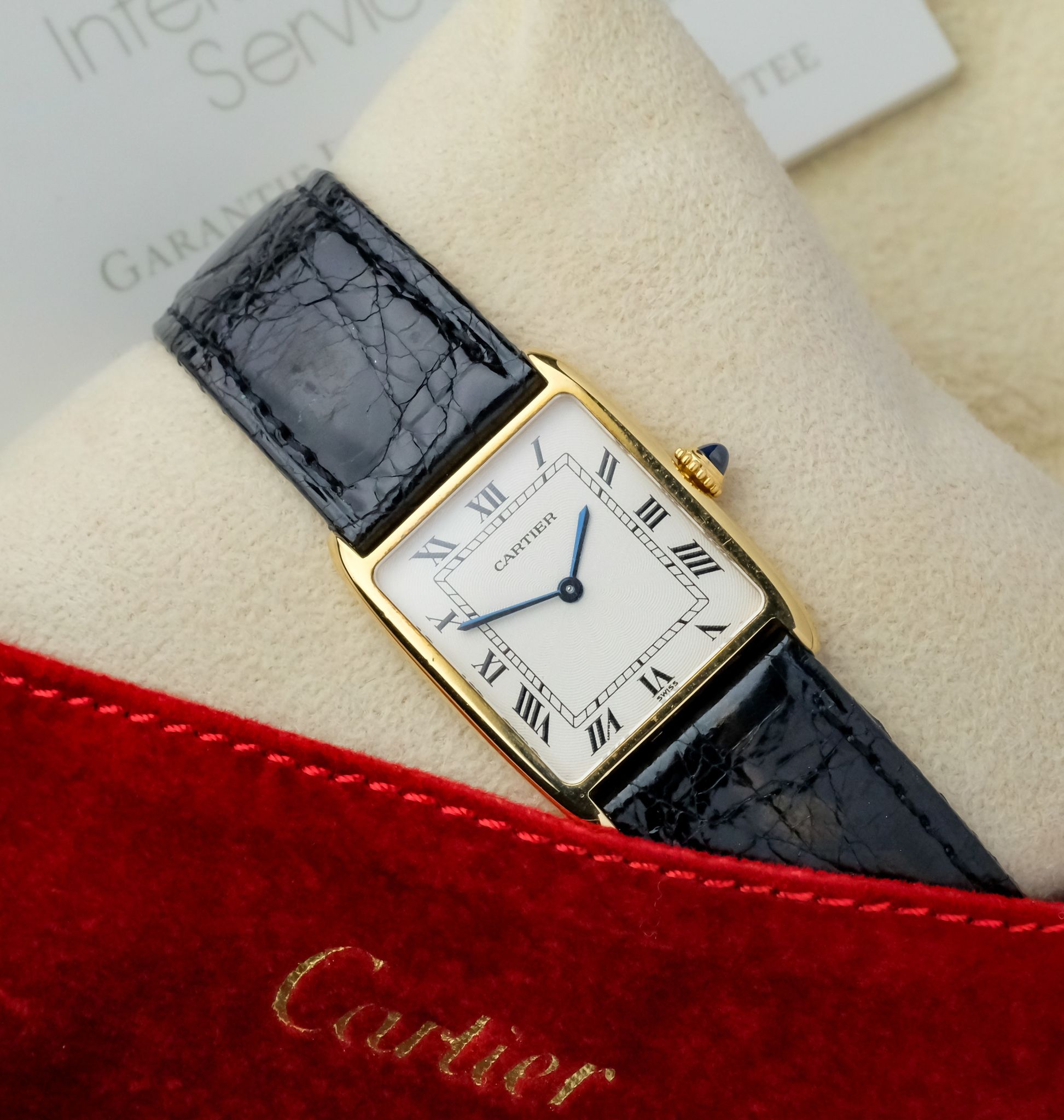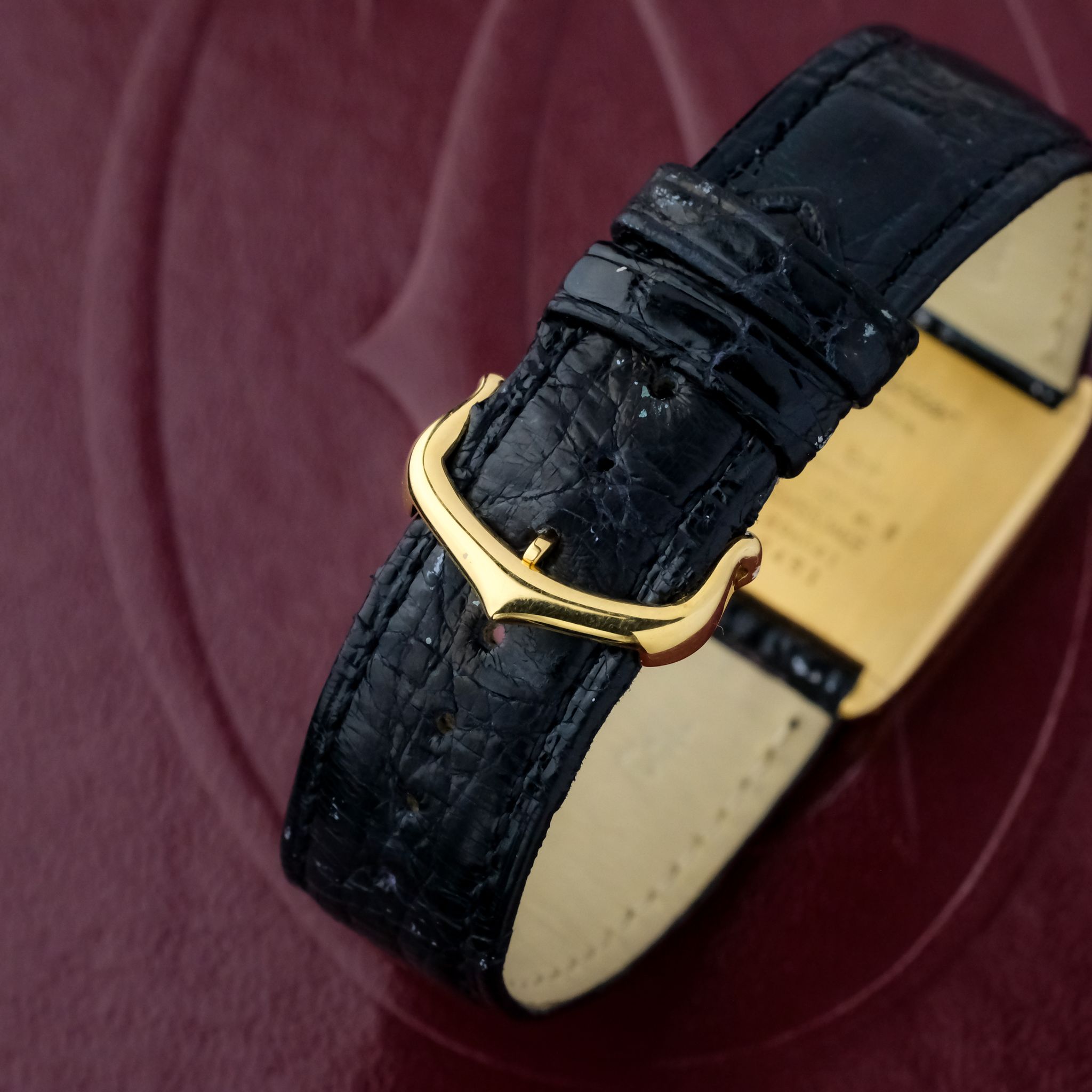 Crafted in yellow gold, the watch features a fine guilloché-finished dial that adds visual depth and subtle texture. Inside, it is powered by the ultra-thin, hand-wound Frédéric Piguet Caliber 21 – renowned for its slim profile and mechanical precision. A rare and poetic expression of Cartier’s design language, the Tank Arrondie 96041 embodies understated luxury, technical finesse, and enduring charm in equal measure.