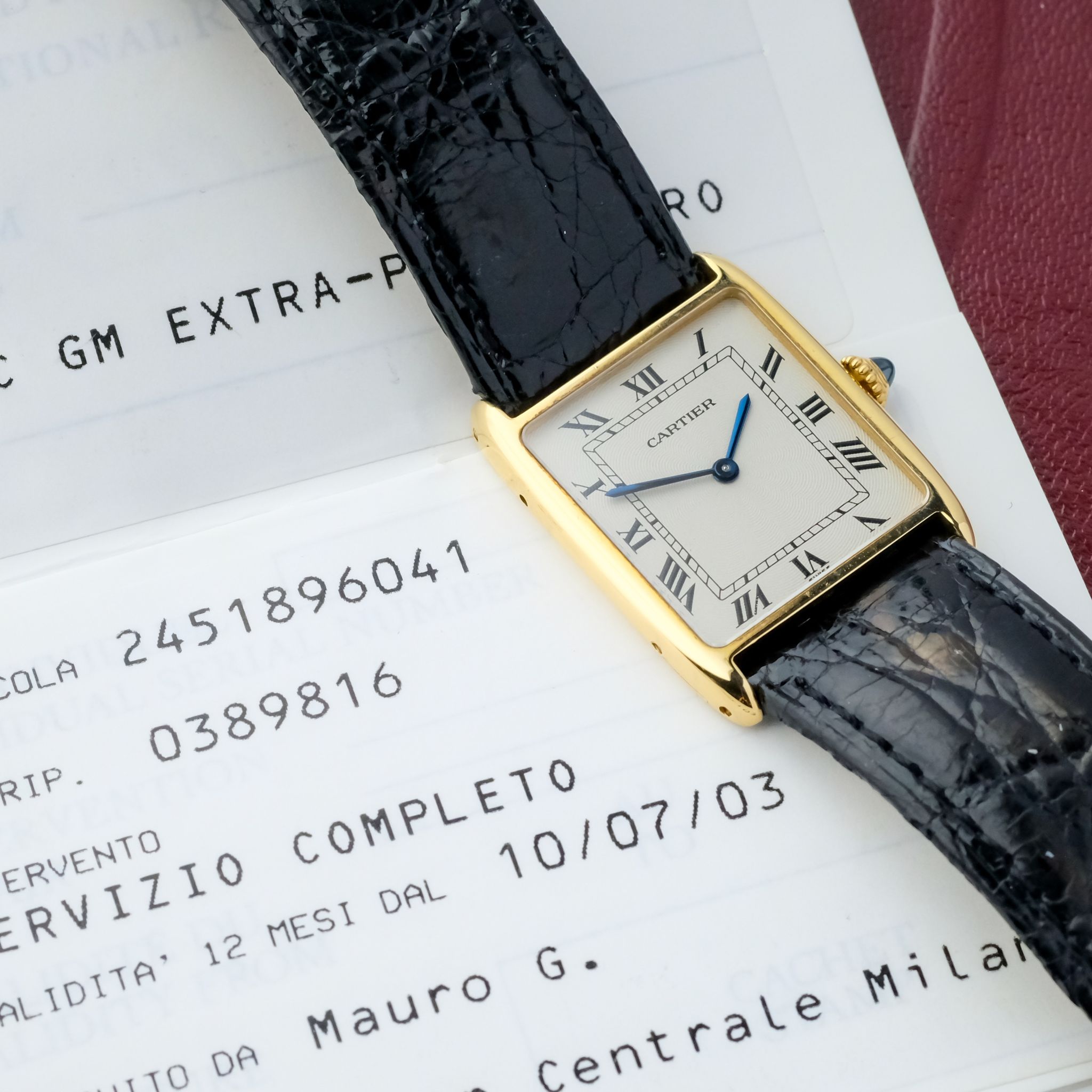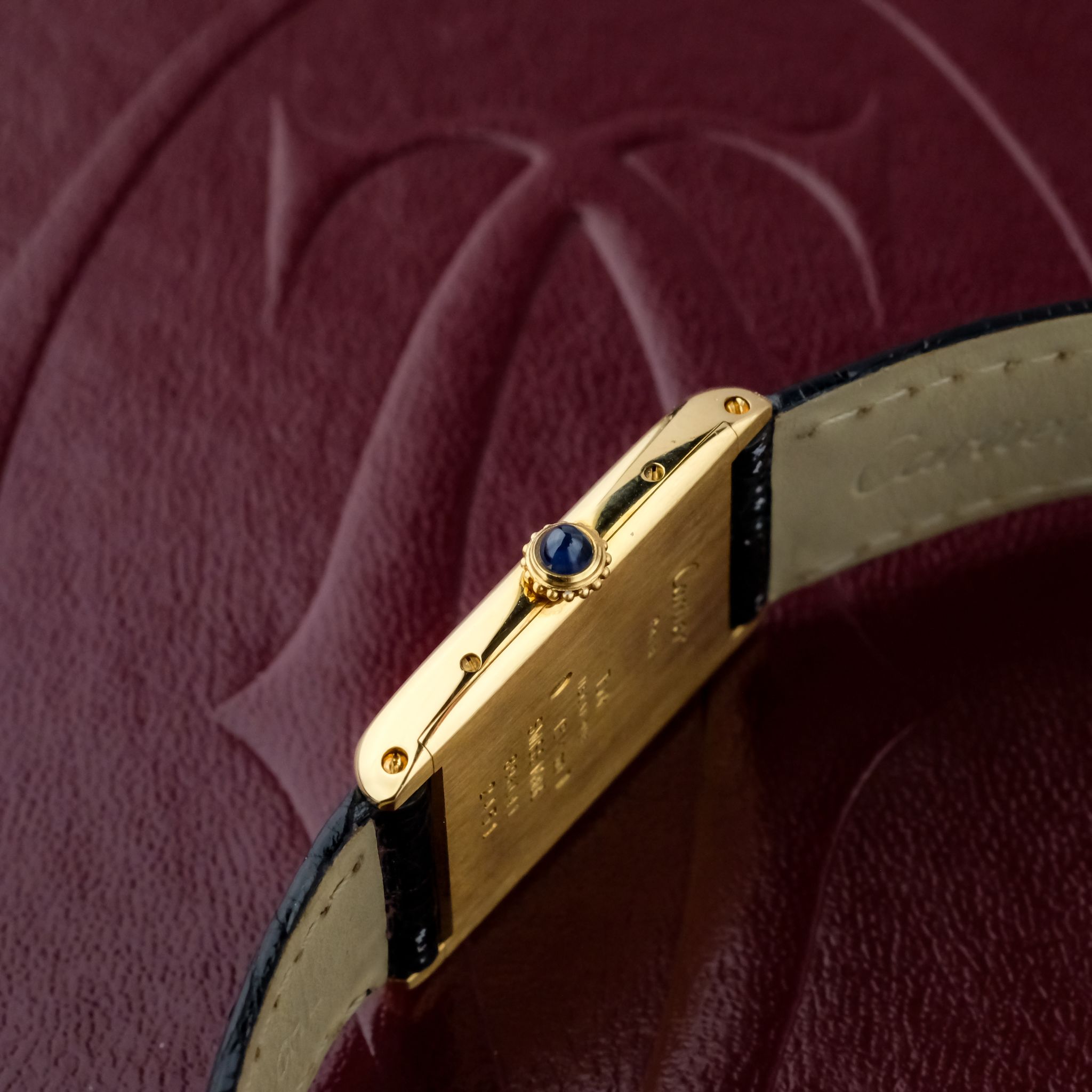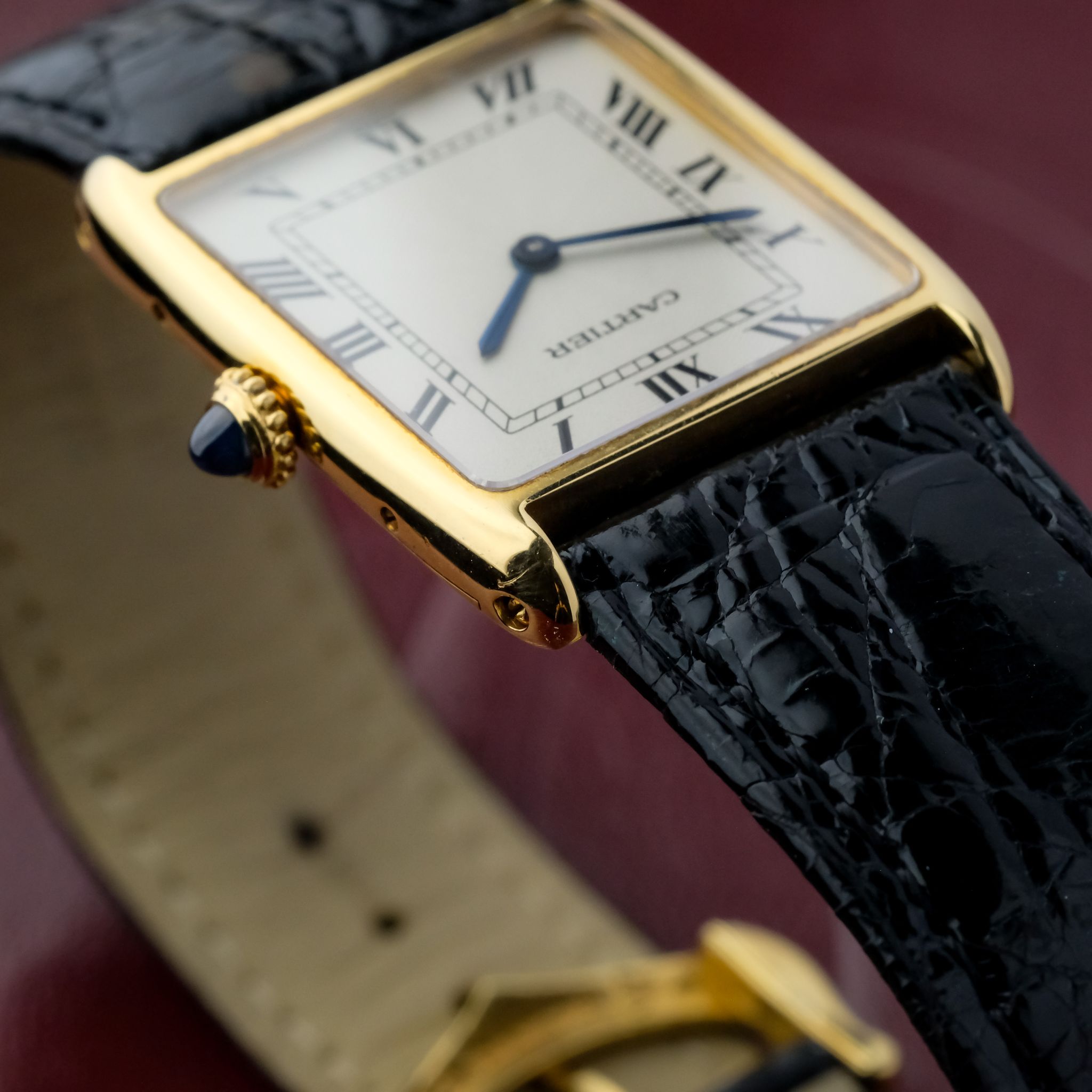Crafted in yellow gold, the watch features a fine guilloché-finished dial that adds visual depth and subtle texture. Inside, it is powered by the ultra-thin, hand-wound Frédéric Piguet Caliber 21 – renowned for its slim profile and mechanical precision. A rare and poetic expression of Cartier’s design language, the Tank Arrondie 96041 embodies understated luxury, technical finesse, and enduring charm in equal measure.