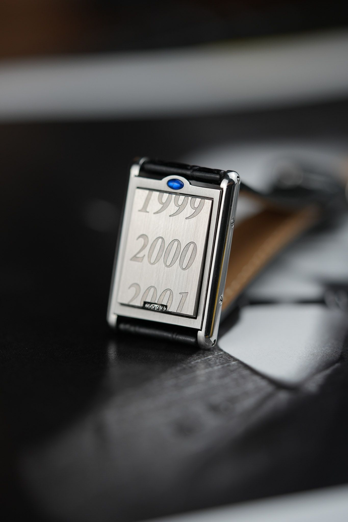 This watch is paired with a black leather strap and a matching stainless steel buckle, completing its timeless look. Whether on your wrist or perched upright as a desk clock, the Cartier Basculante Millennium Edition isn’t just a watch—it’s a reflection of an era where the world collectively paused, then boldly stepped into the future.