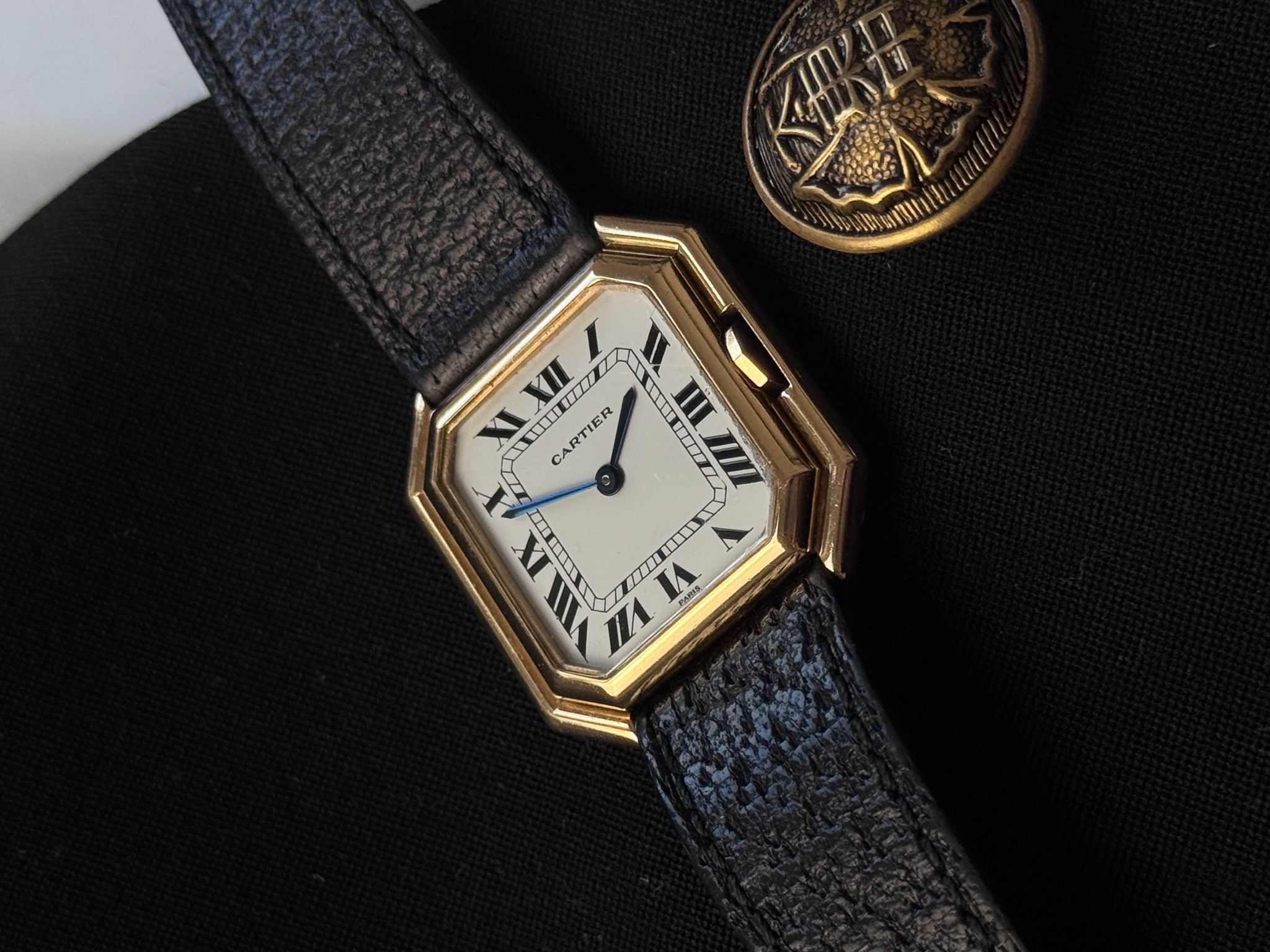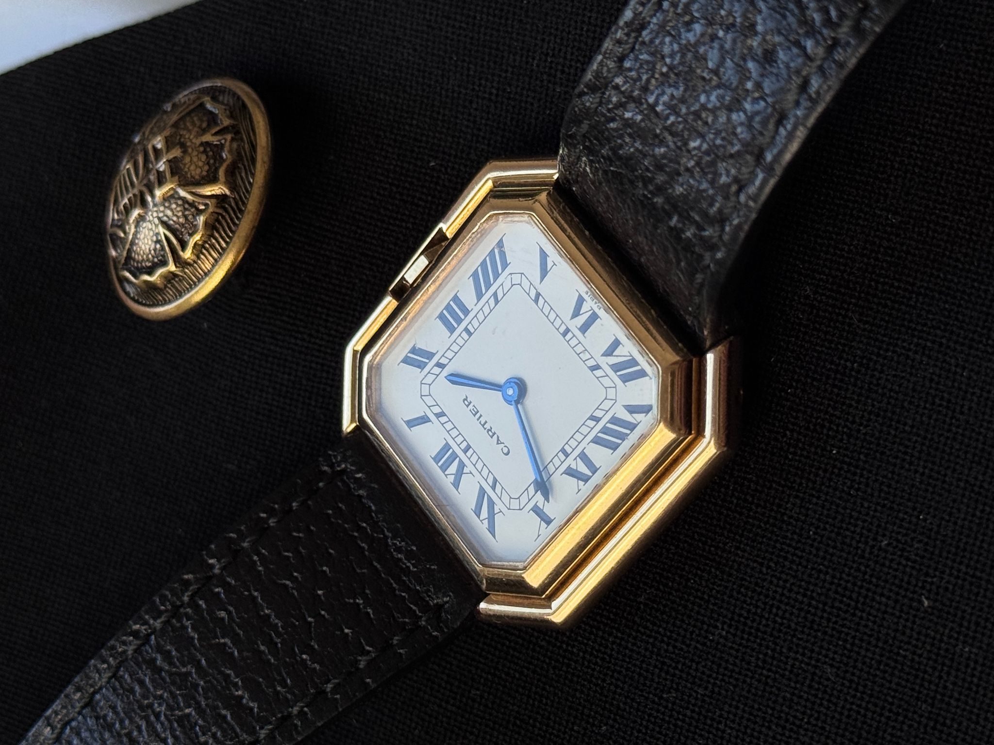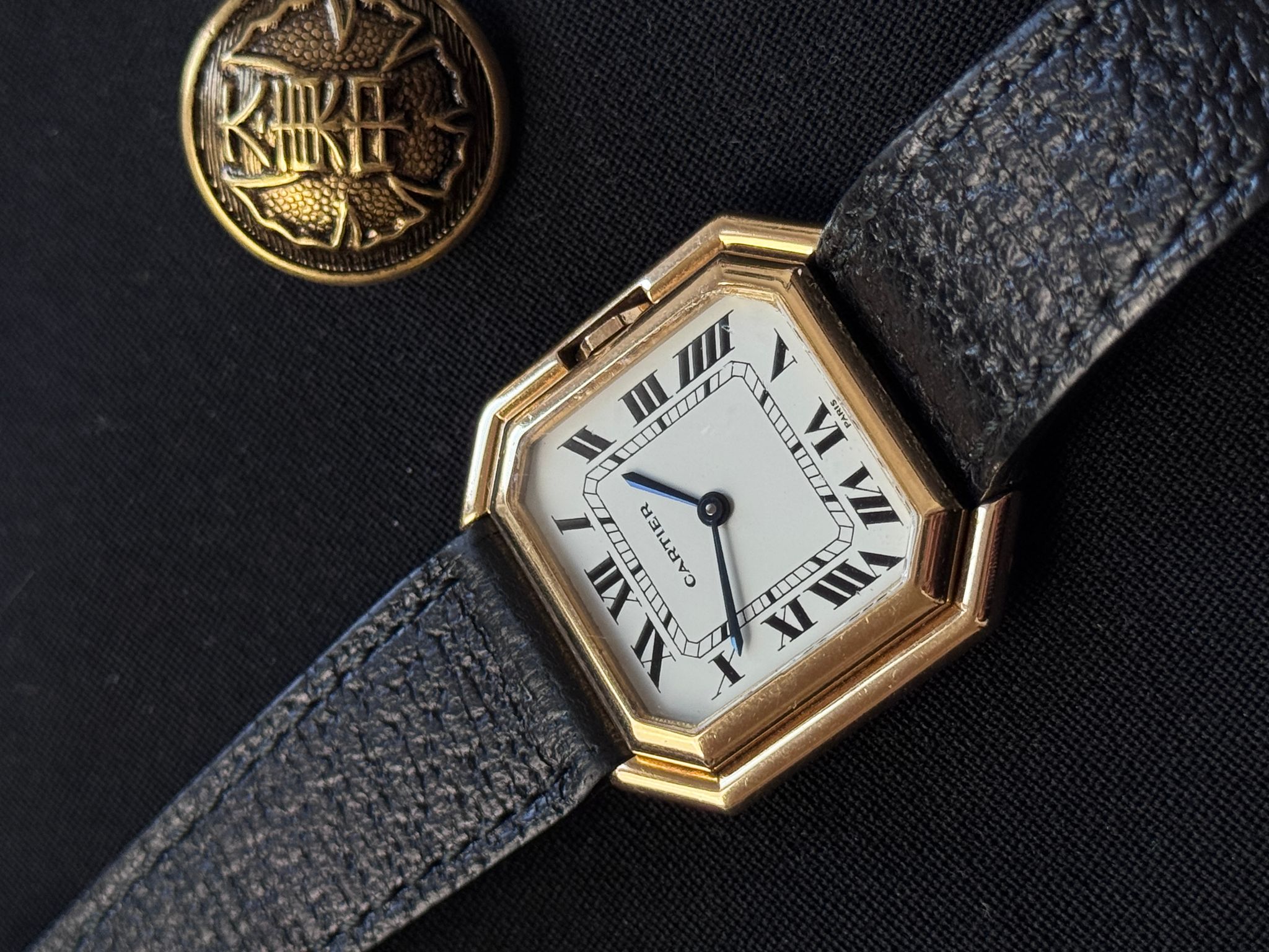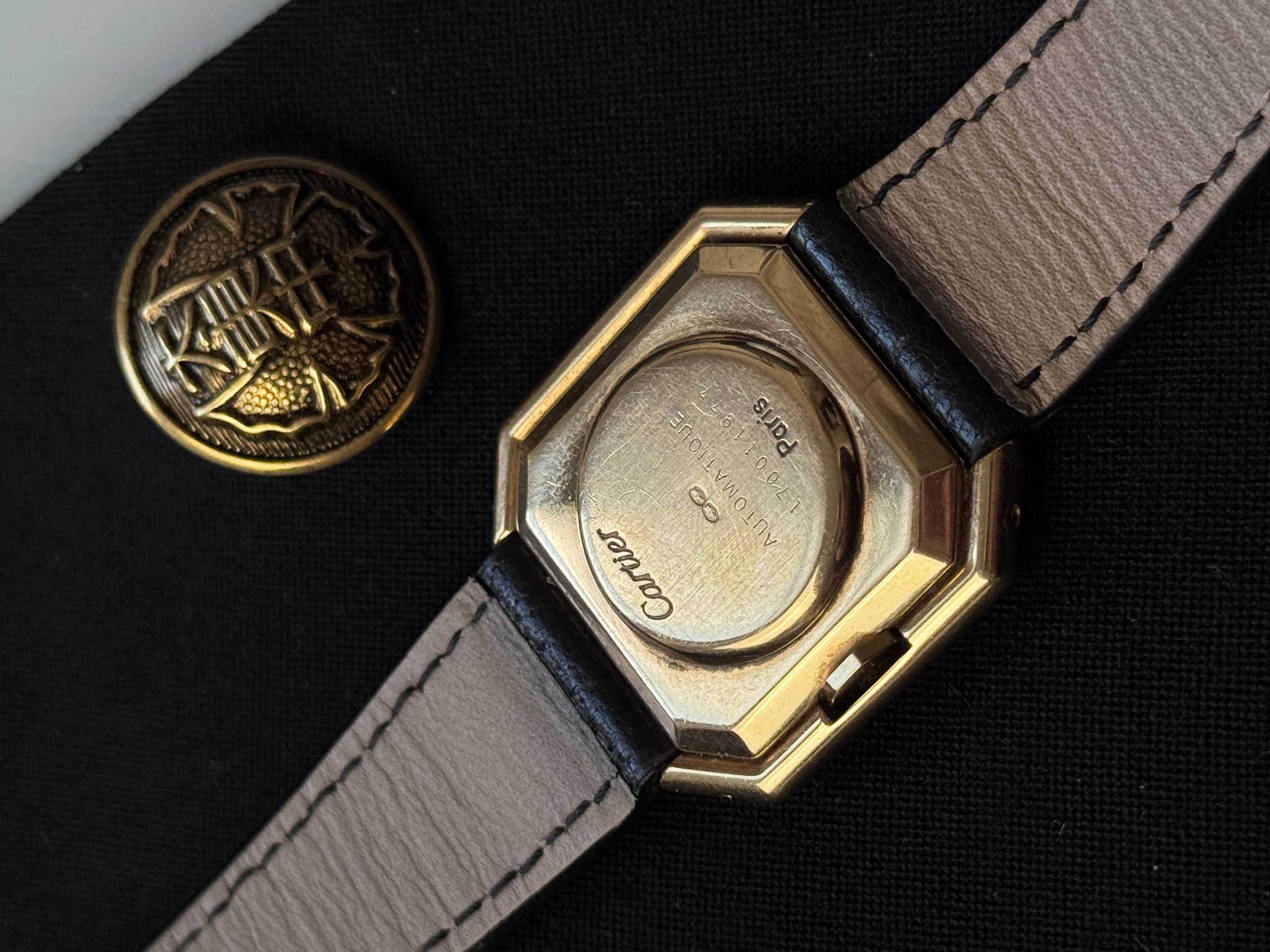 The Tank Ceinture was created in 1972 as a part of the Louis Cartier collection. Alongside with 12 other models, including the Baignoire and the Santos Dumont, the Tank Ceinture is all about shape. Some models came in Large and Small sized case. The Ceinture came in PM and LM and there was also an automatic « Jumbo » model, the biggest and the most sought after of the 3. The Jumbo Ceinture is easily recognizable with it’s « bubble » case back, housing a rotor inside.