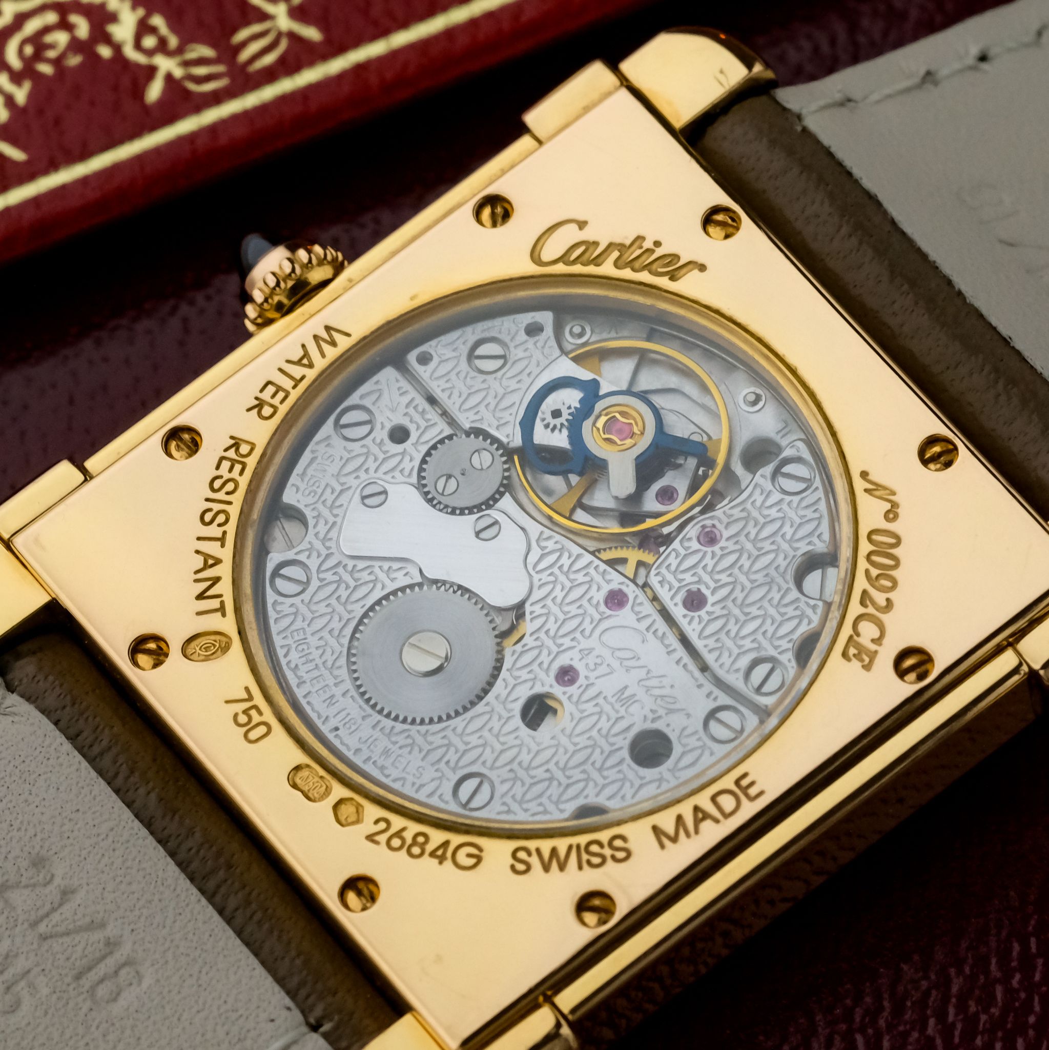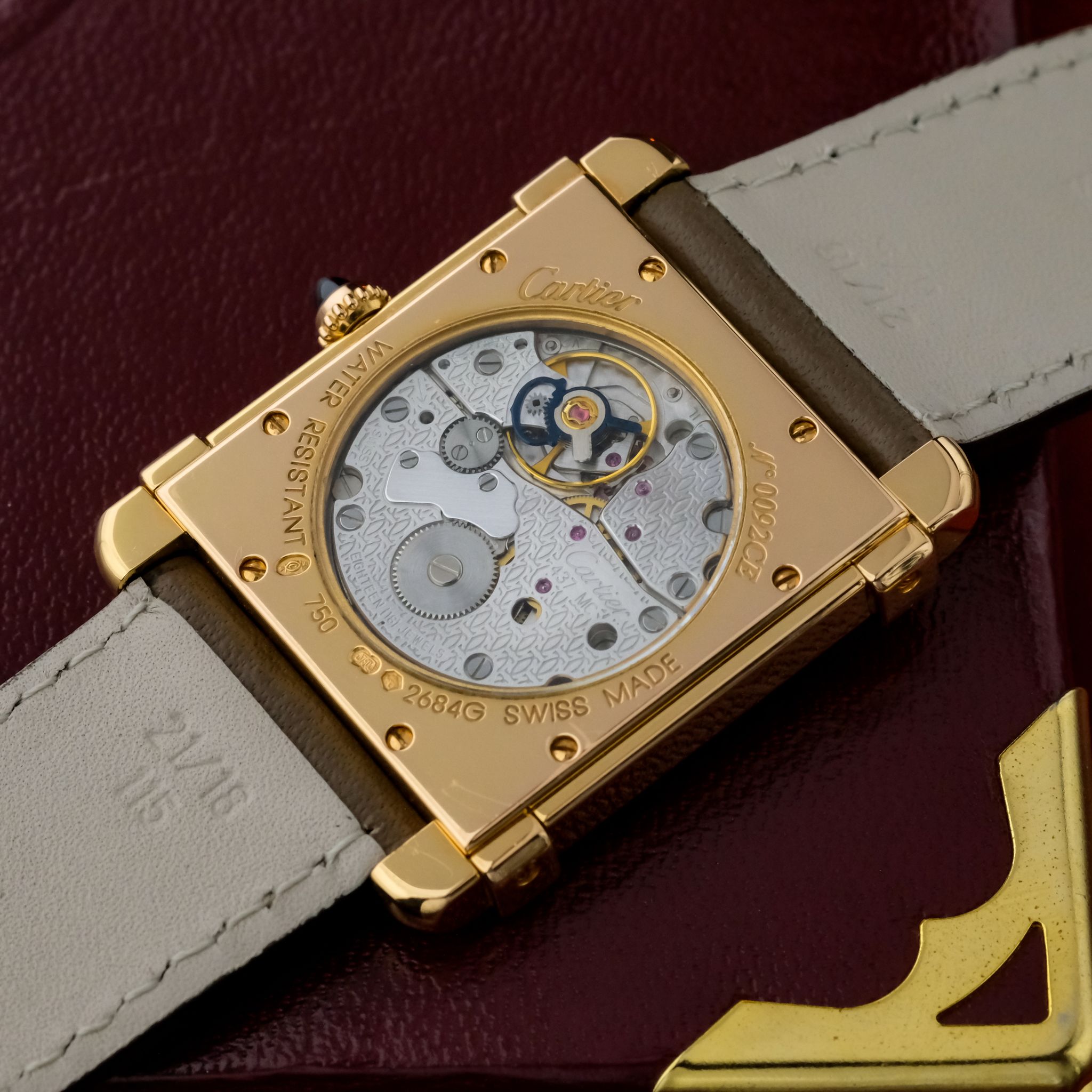 Beautiful and limited piece from the 1998-2008 "Cartier Paris collection privée" Tank Chinoise ref.2684G with rosegold case and "deployante folding clasp..unpolished condition and the beautiful exhibition caseback showing the manual wind movement