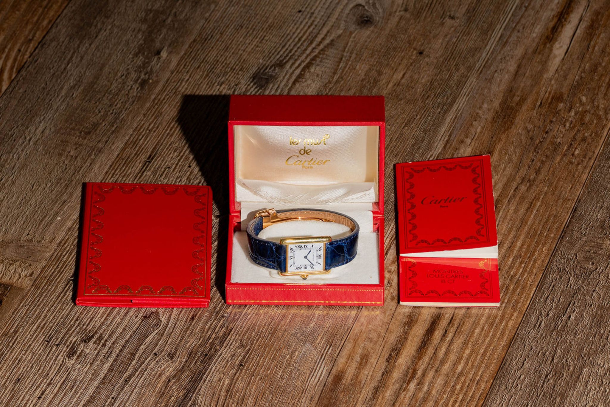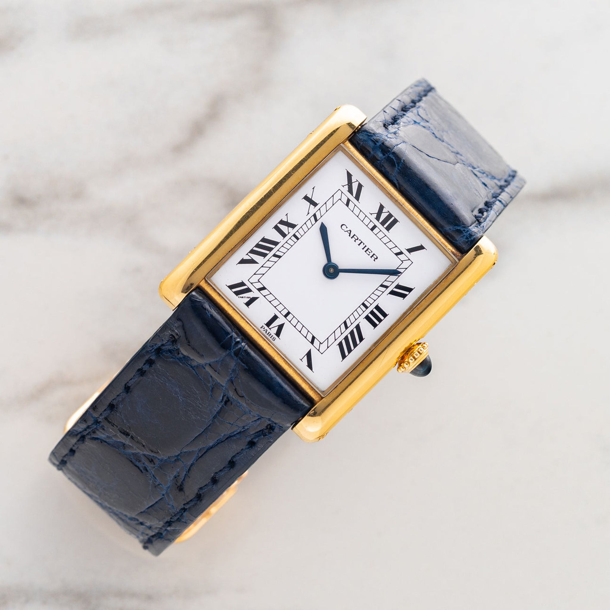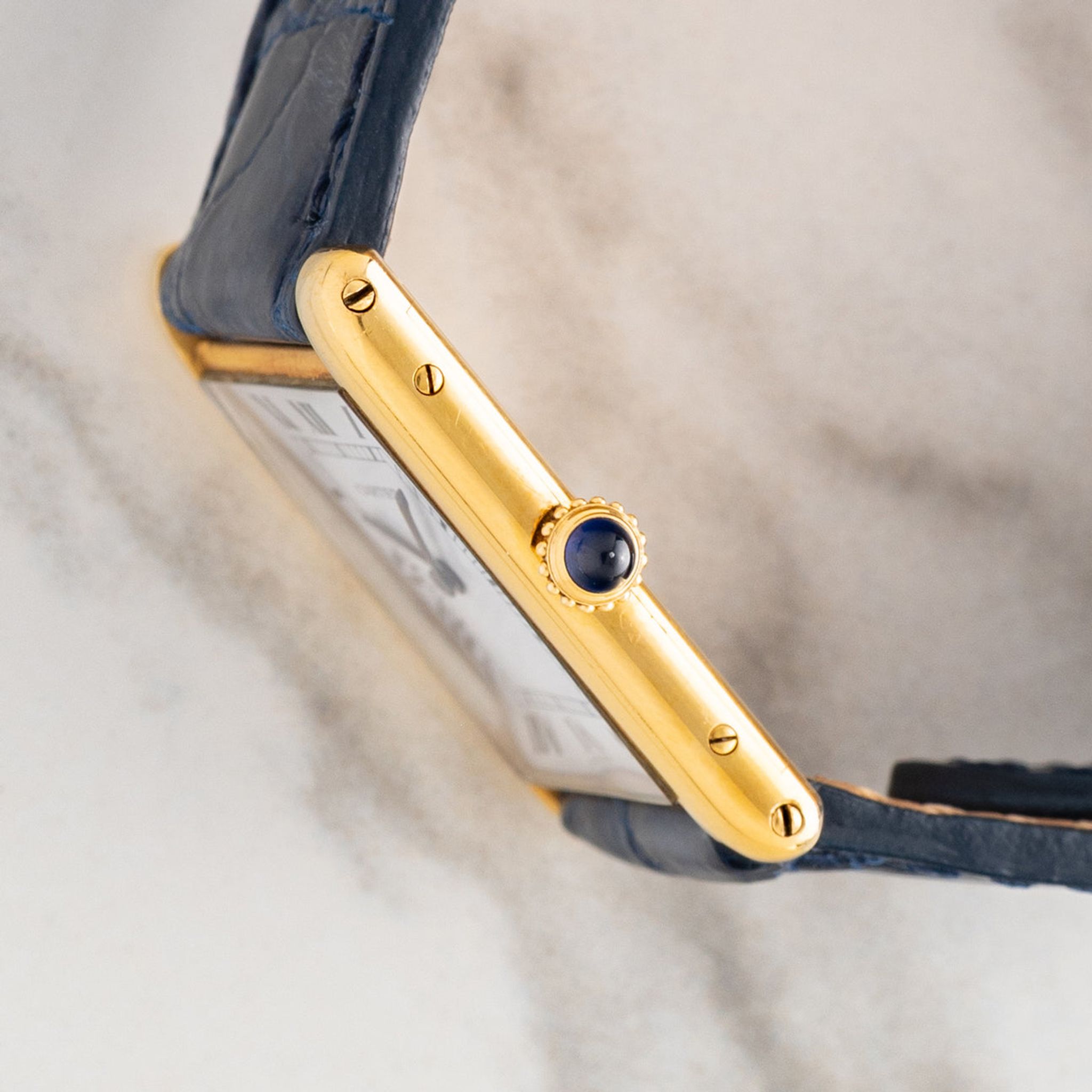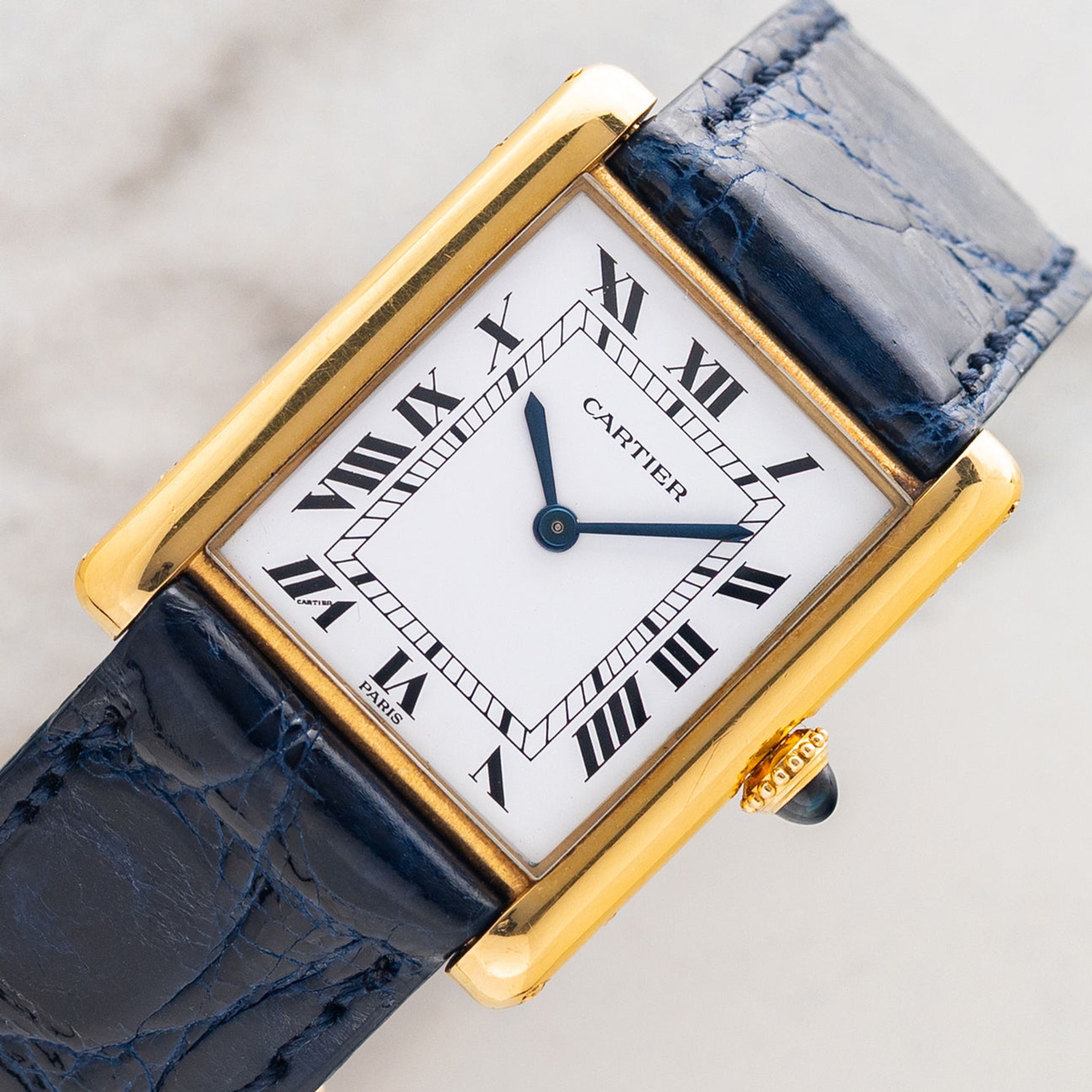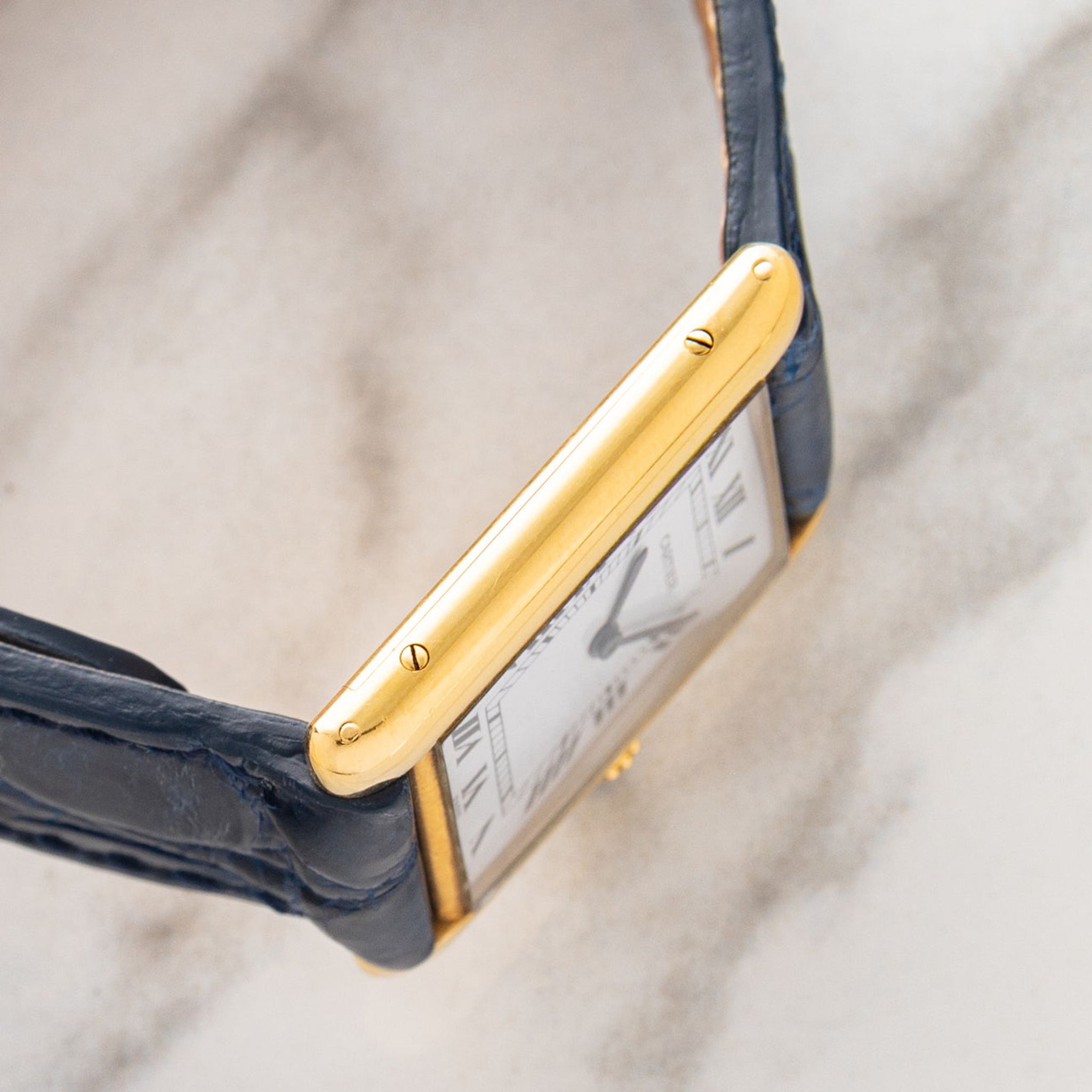 This particular Tank Louis "extra plate" circa late 80s is a Cartier collectors dream. The ultra-thin 5mm case wears more elegantly than the standard reference and houses the legendary Frederique Piguet caliber 21 which is higher grade compared to the more common ETA movements we see. Remaining in fantastic vintage condition, this piece appears to have remained in unpolished condition and houses very well-preserved dial with no crazing or distracting wear. Notably, this Tank also comes with its box, booklet, folder and warranty papers and deployant clasp.