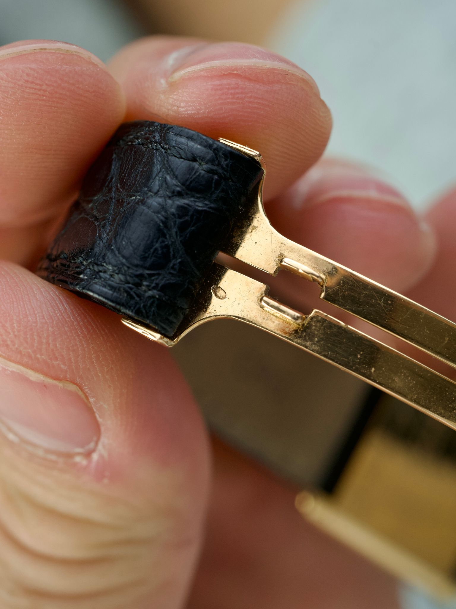 The vintage watch comes with the original Cartier leather strap (lightly worn) and is fitted with the original Cartier Paris 18k gold folding clasp, which is rare features rarely seen round edges and no Cartier sign on the clasp!