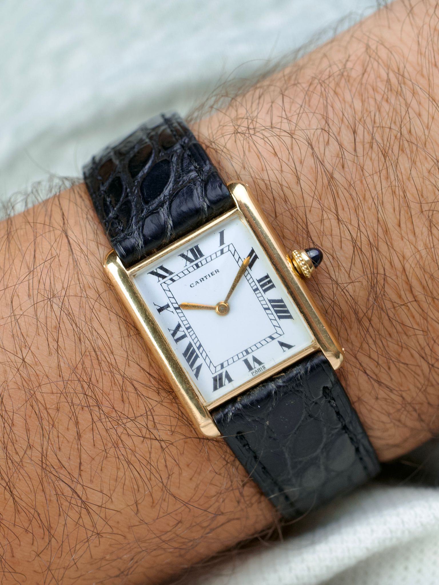 Iam delighted to offer this super rare Cartier Paris Tank Louis, dating to the 1970s. This beautiful watch houses the extra-slim Jaeger-LeCoultre manual wind movement and is known as the Tank Louis Extra-Plate.