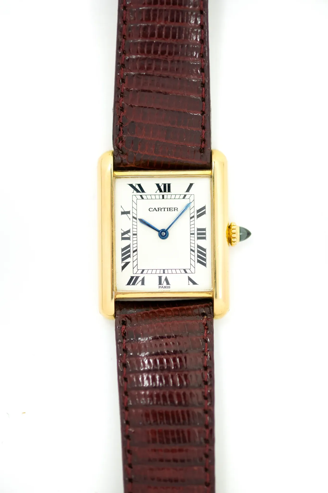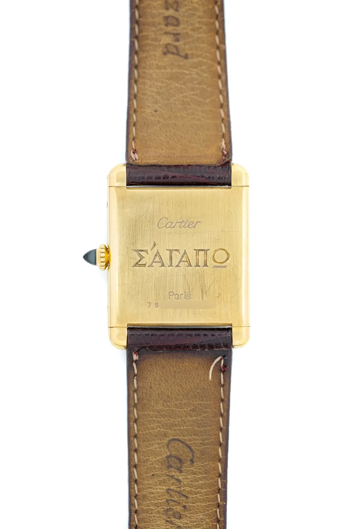 The uniqueness of this Cartier Tank is particularly found on the back of the case where we can read a touching declaration engraved in Greek: "Σ ΑΓΑΠΩ" meaning "I LOVE YOU" in English. A precious message that makes this watch unique.