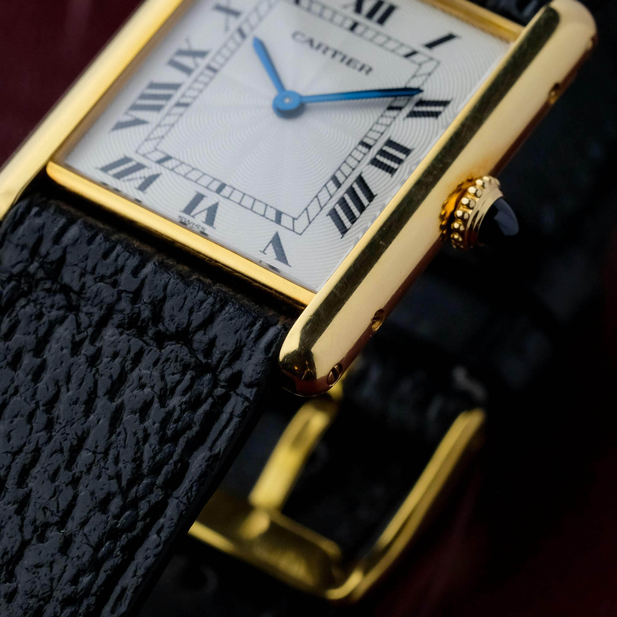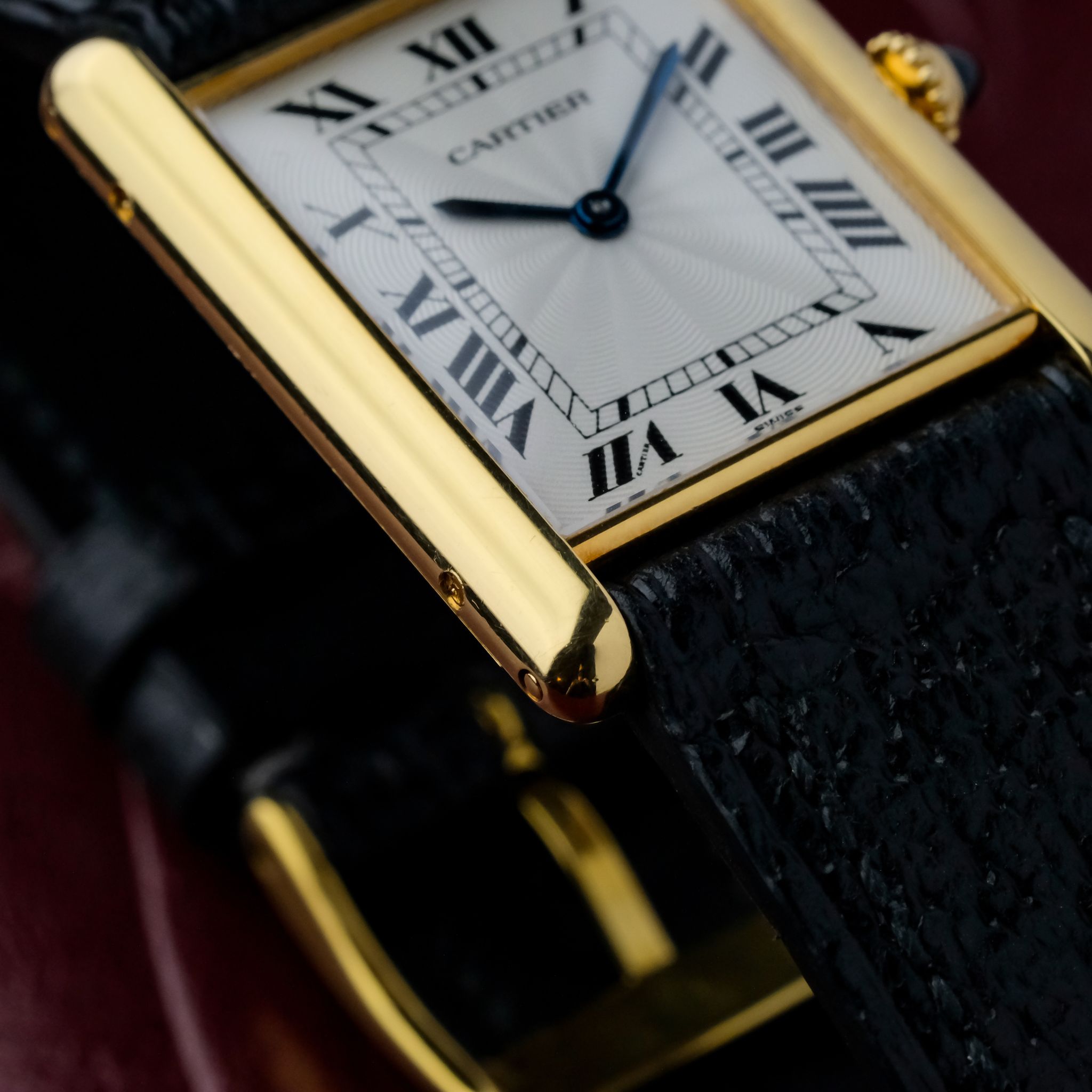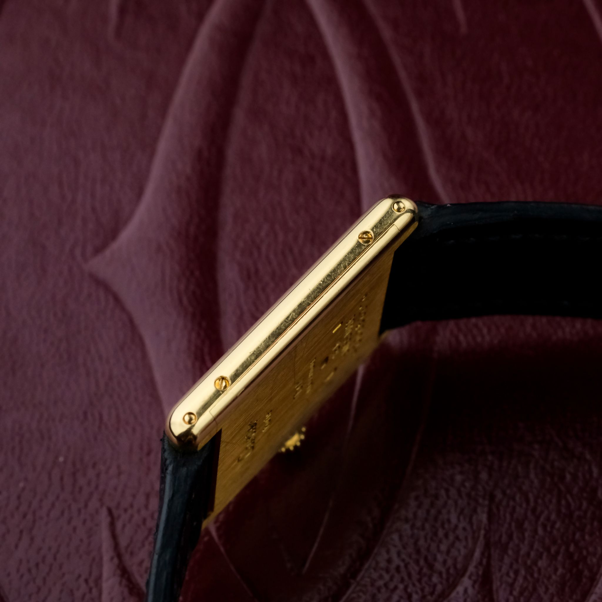 rare late version of the ref. 96065 Cartier Tank Louis “extra plate” featuring the legendary F. Piguet 21 caliber, with guilloche dial only to be found in the very last models of this very reference as most were equipped with white “Paris” signed dials. The case is in great and unpolished condition with only very light signs of wear and no deep dents or scratches to it. The guilloche finished dial is in impressive condition with no patina or dirt to it, it looks like a time capsule which has never been opened.