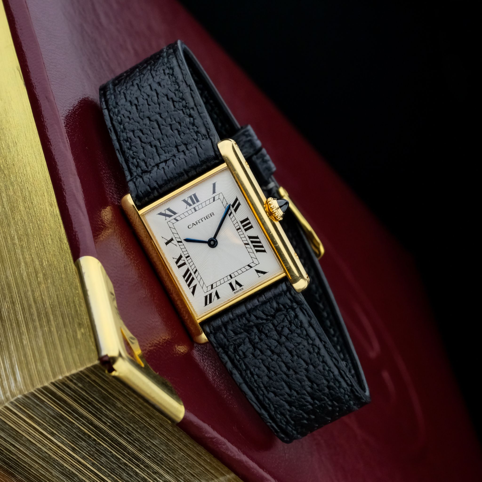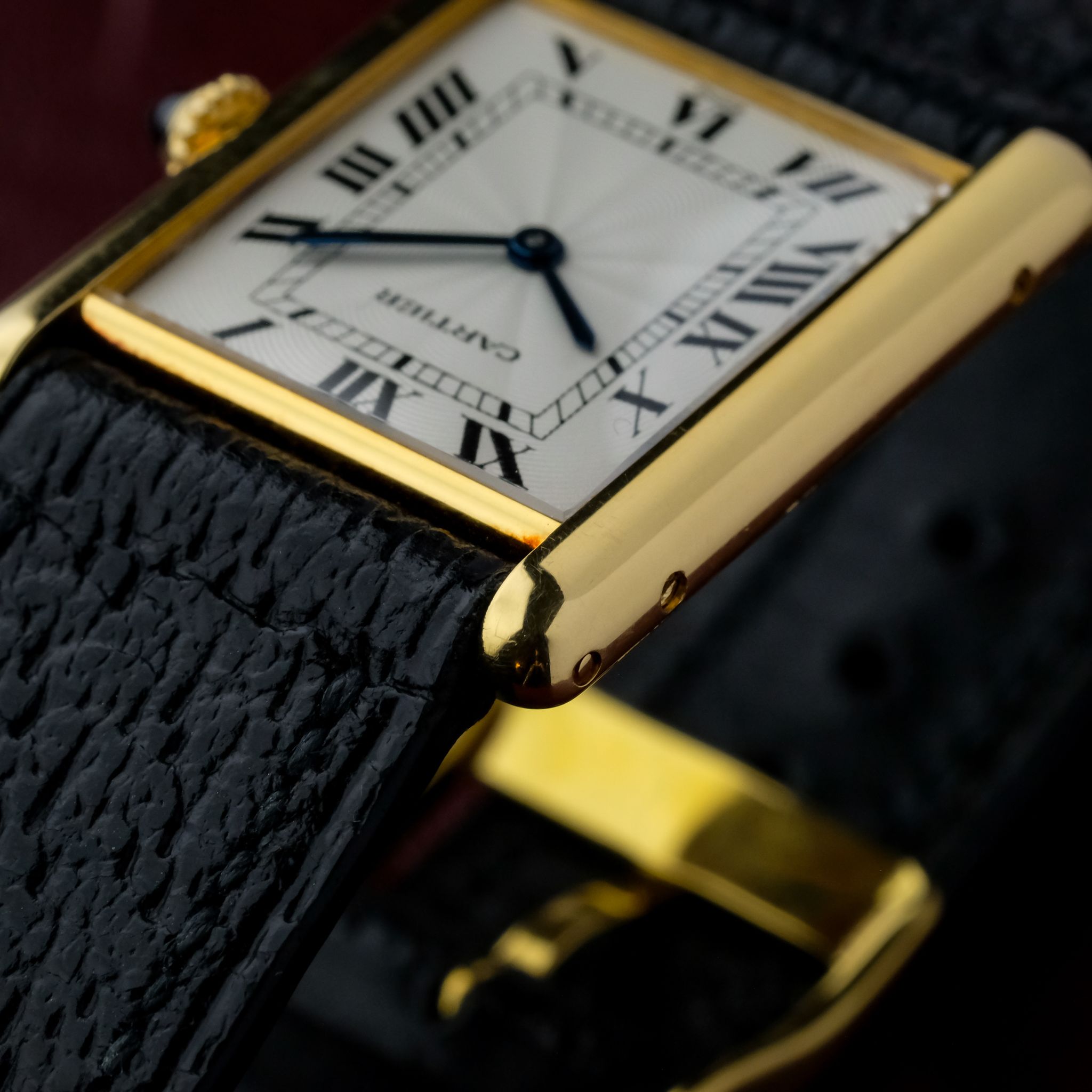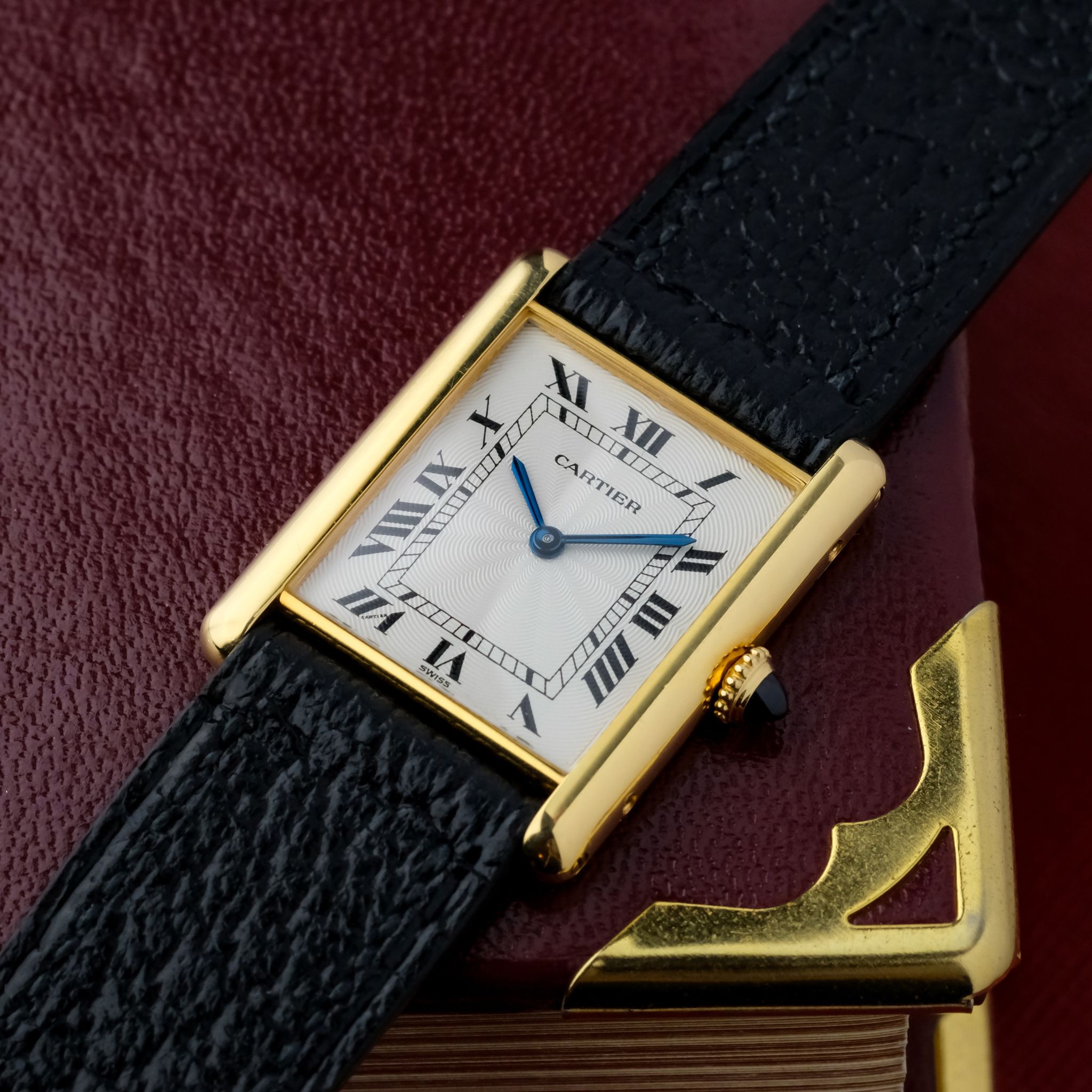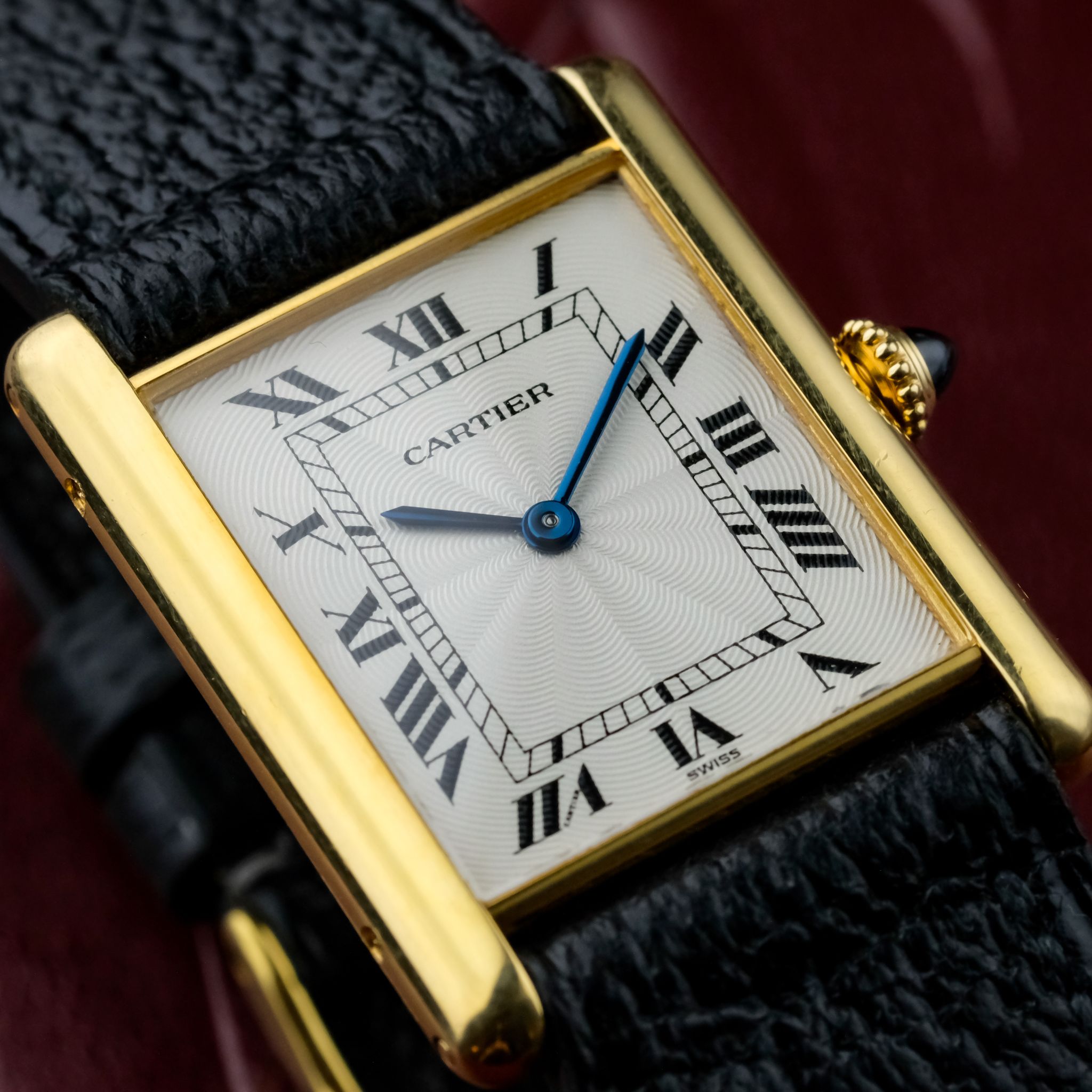 rare late version of the ref. 96065 Cartier Tank Louis “extra plate” featuring the legendary F. Piguet 21 caliber, with guilloche dial only to be found in the very last models of this very reference as most were equipped with white “Paris” signed dials. The case is in great and unpolished condition with only very light signs of wear and no deep dents or scratches to it. The guilloche finished dial is in impressive condition with no patina or dirt to it, it looks like a time capsule which has never been opened.