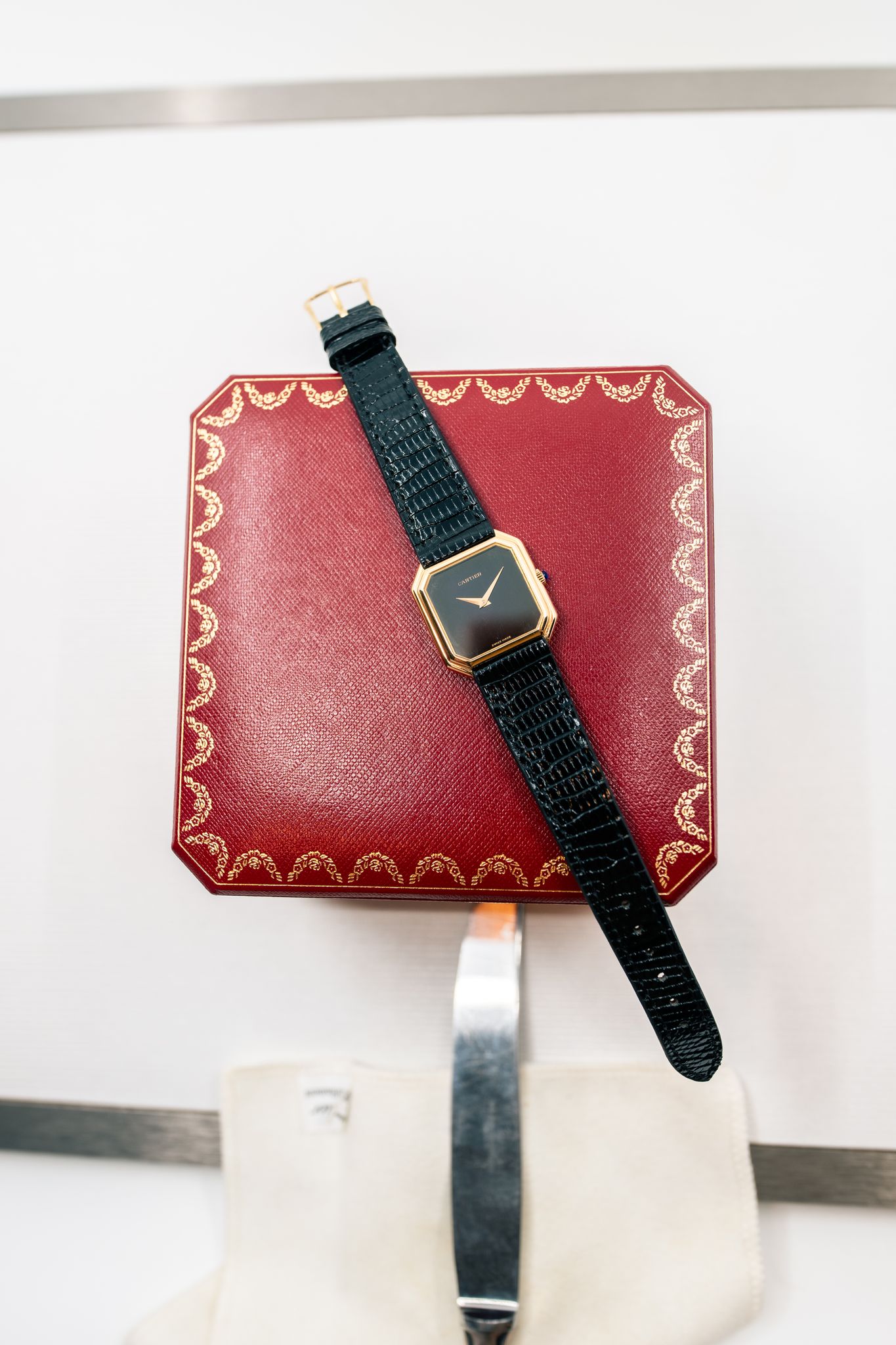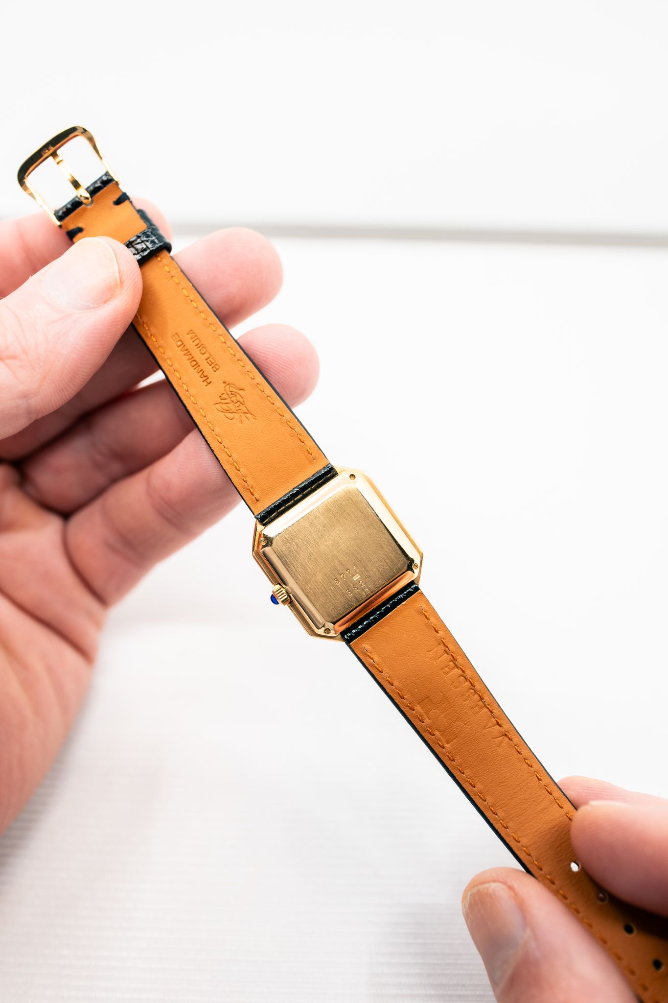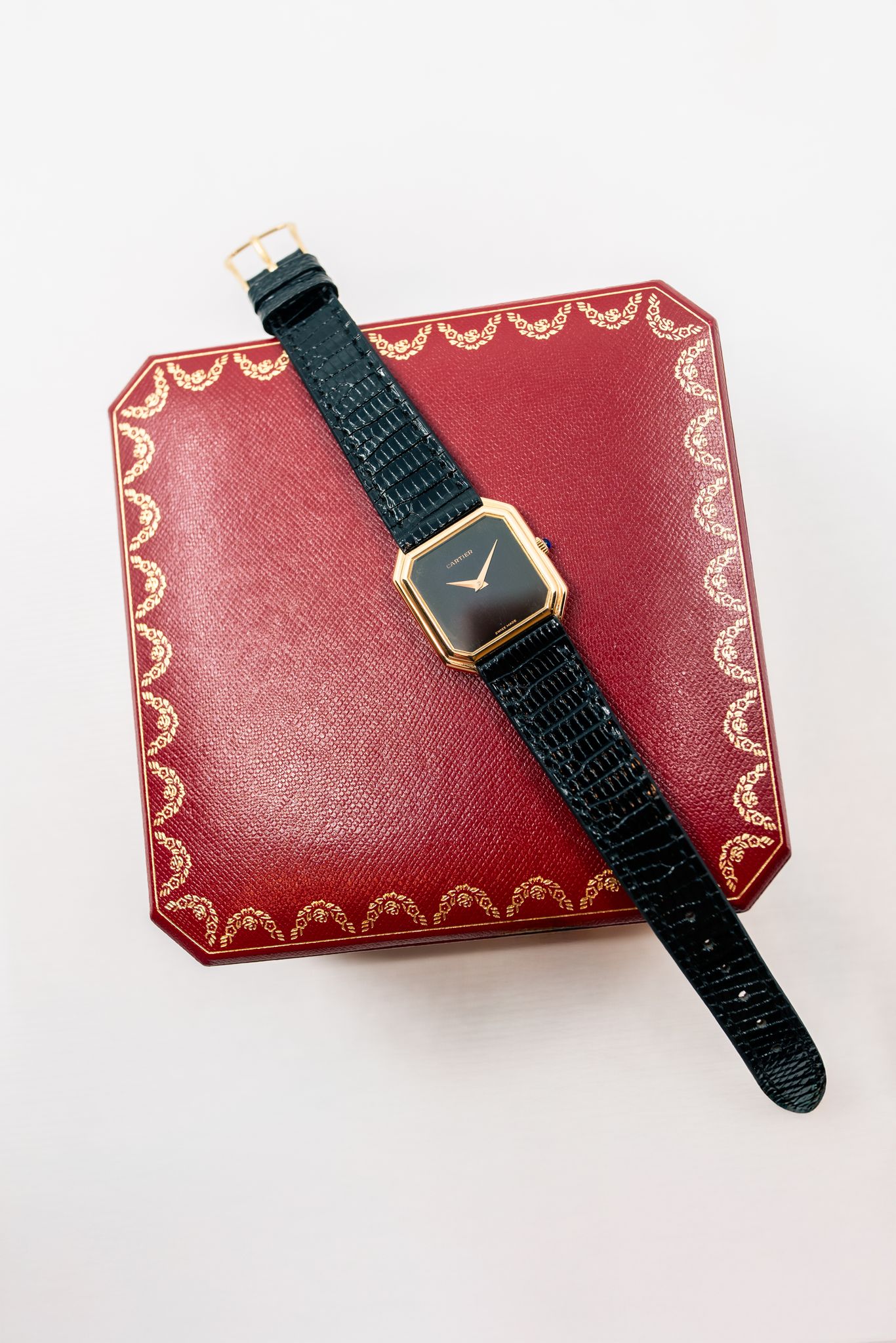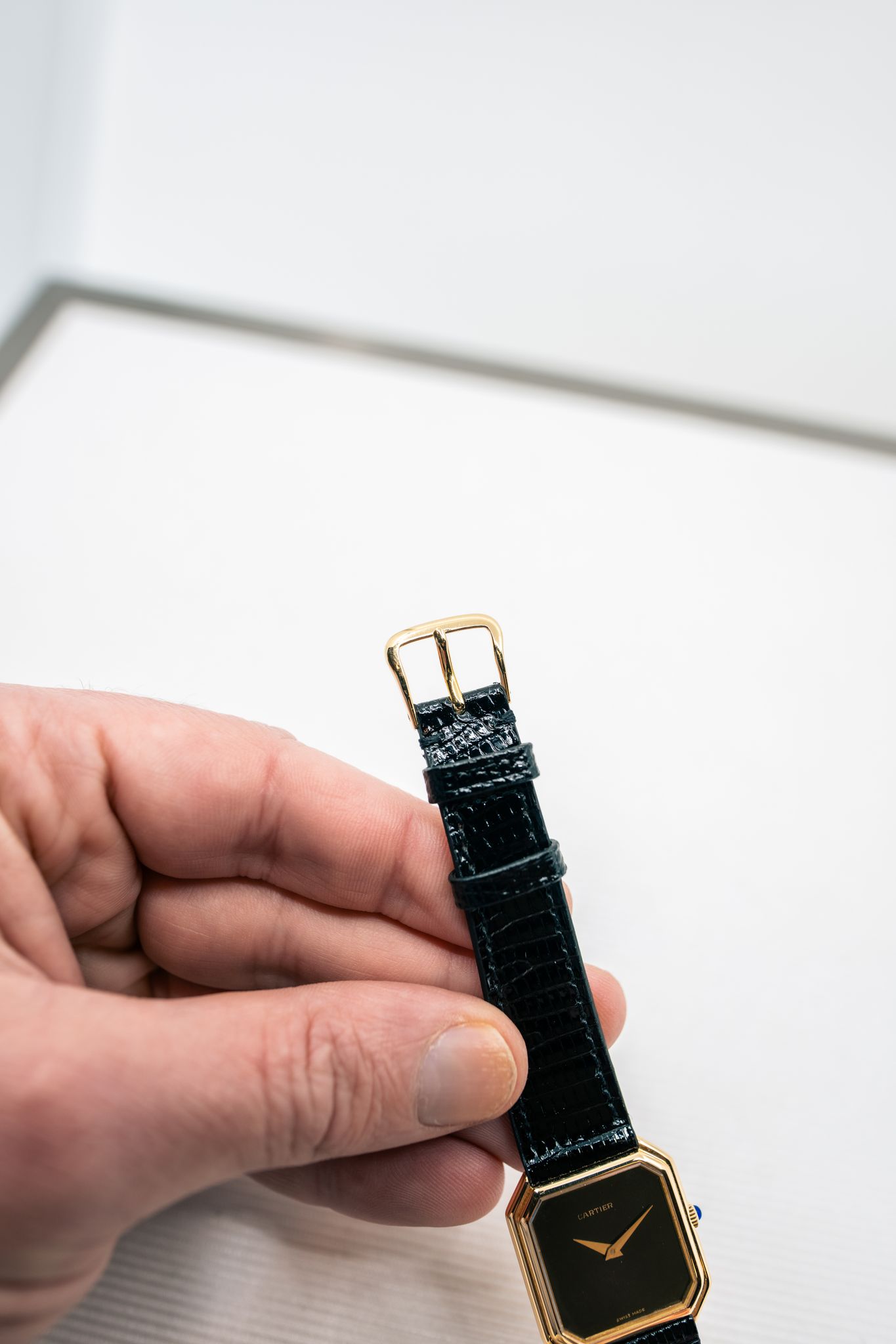 Very nice Cartier Ceinture Made by Baume en Mercier in the 1980ies. The dial is laque and it has the beautiful B&M 775 handwounded movement. 18 kt yellowgold buckle.