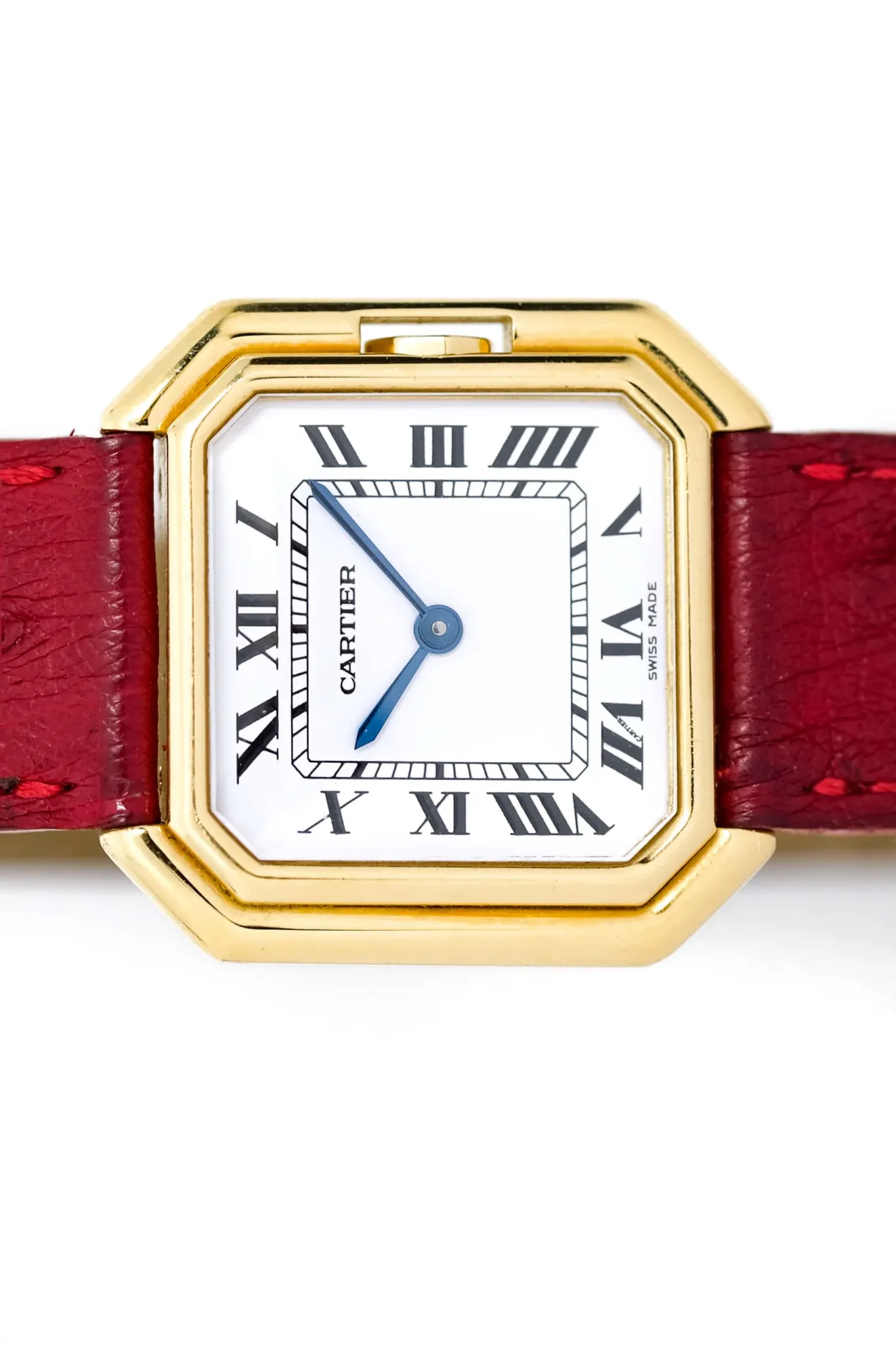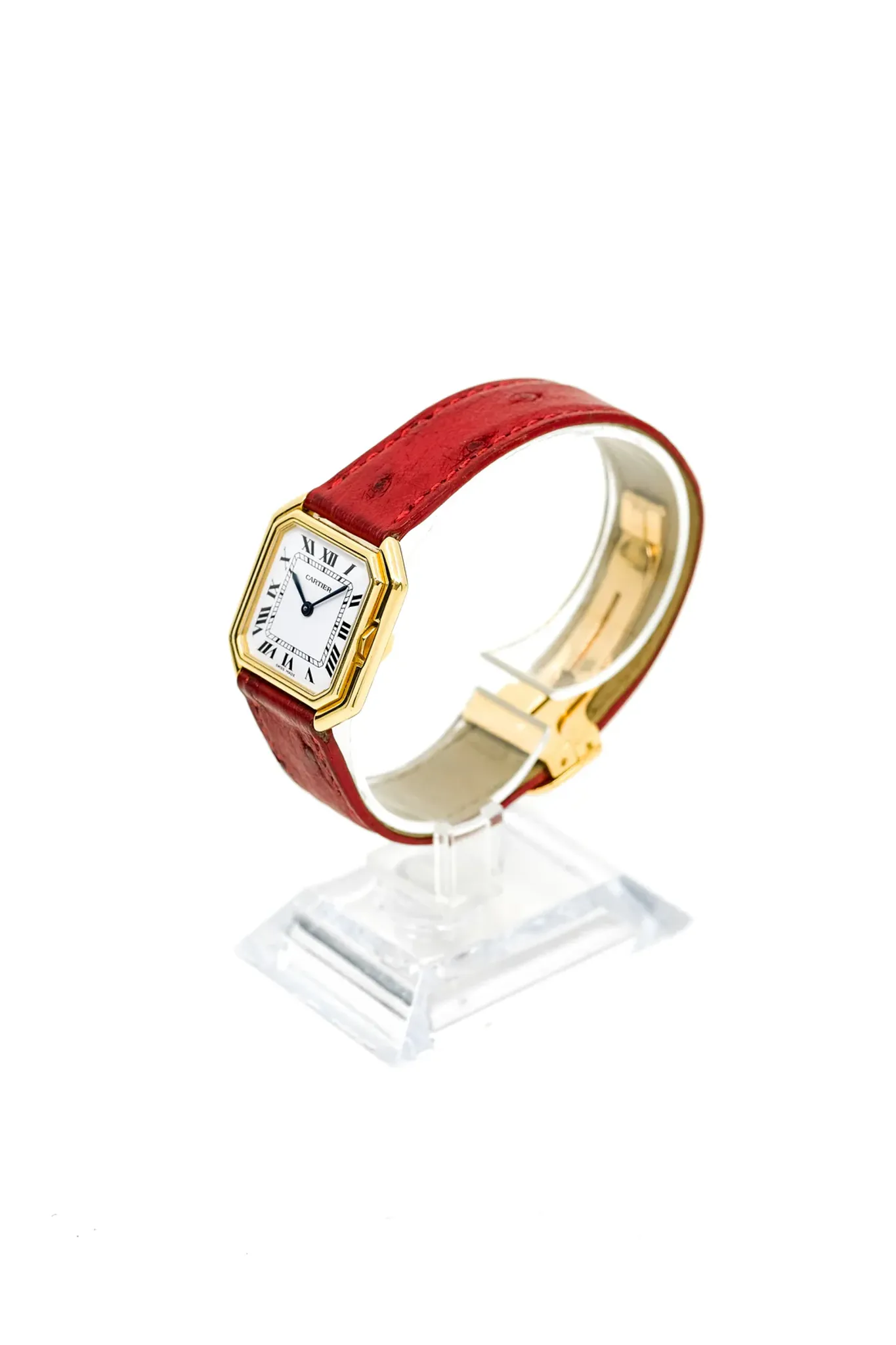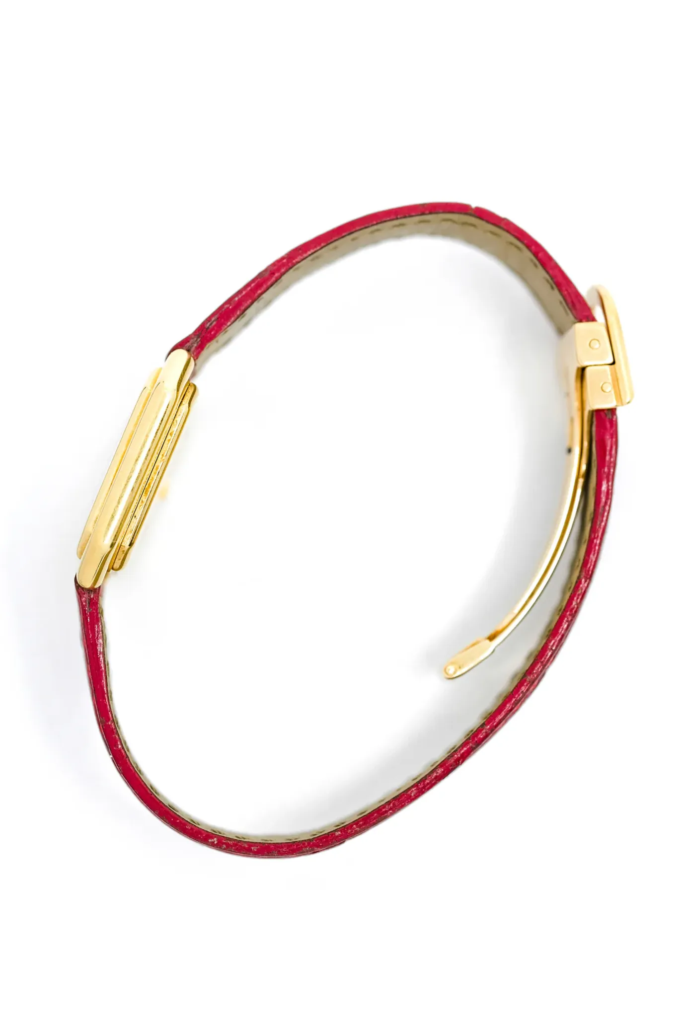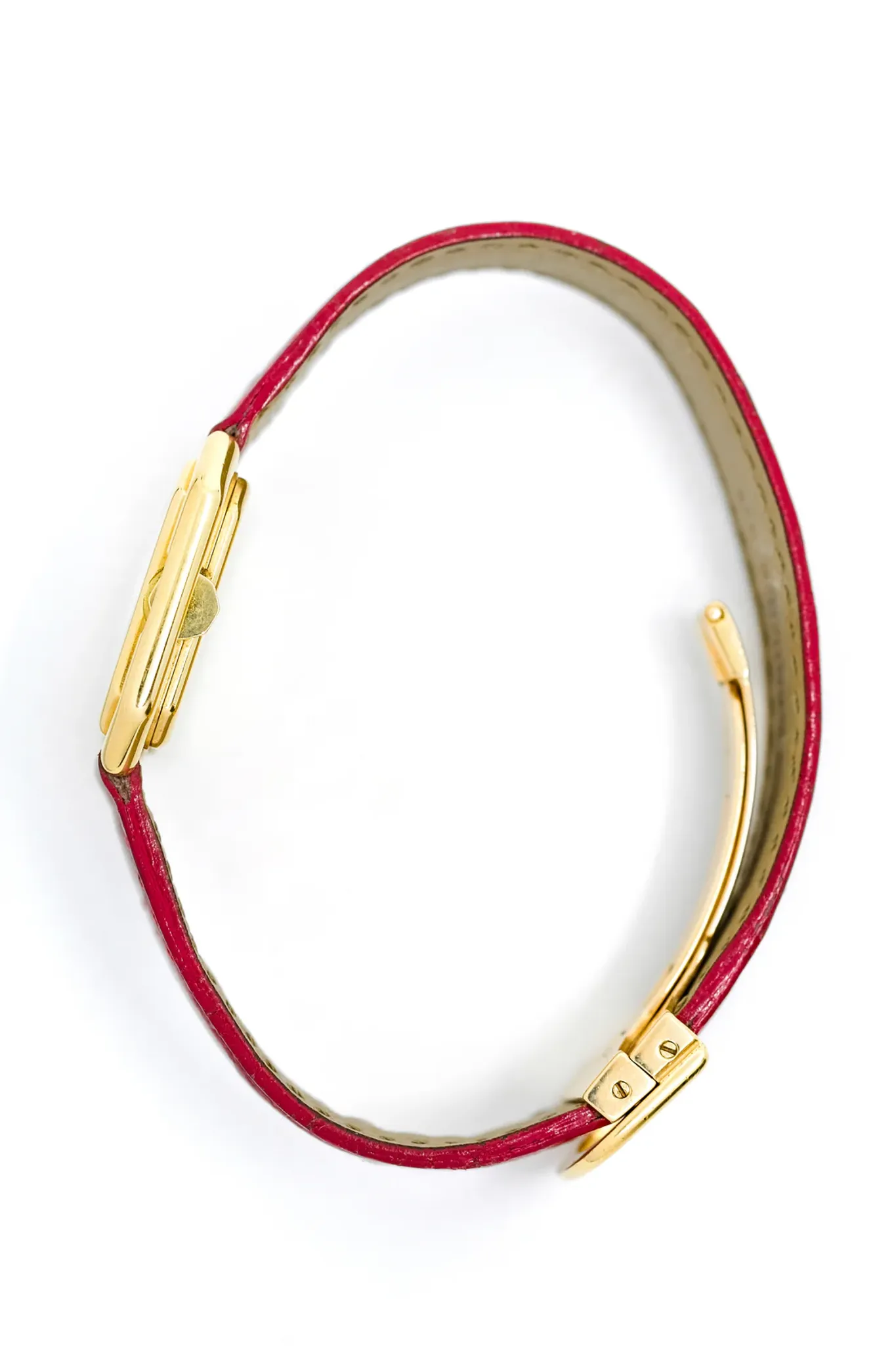 Comfort is further enhanced by the 18-carat yellow gold folding clasp, the qualities of which no longer need to be praised! The custom-made Cartier leather strap in a bright red contrasts perfectly with the yellow gold.
